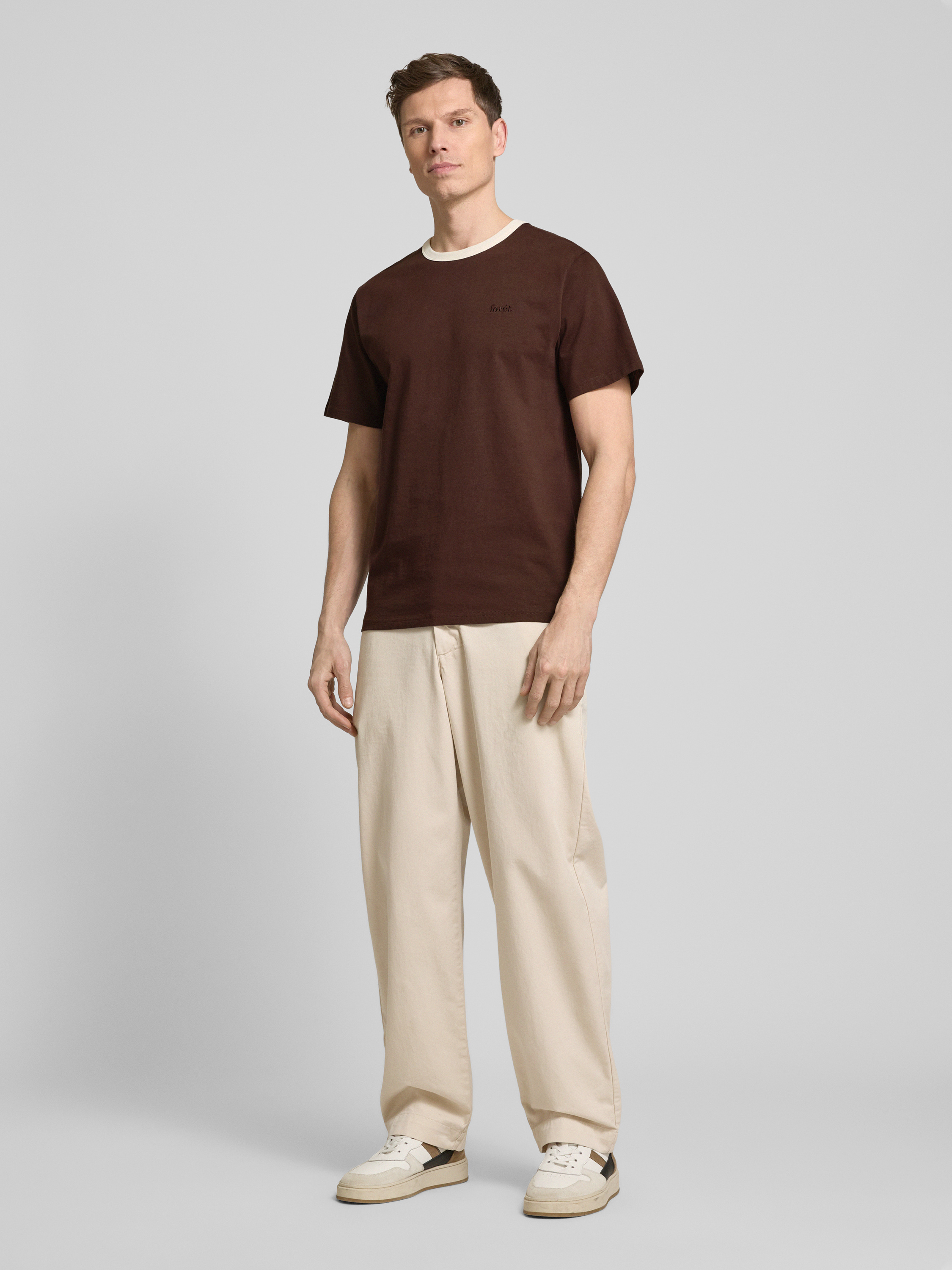 T-shirt met labelstitching, model 'HONEY' in middenbruin