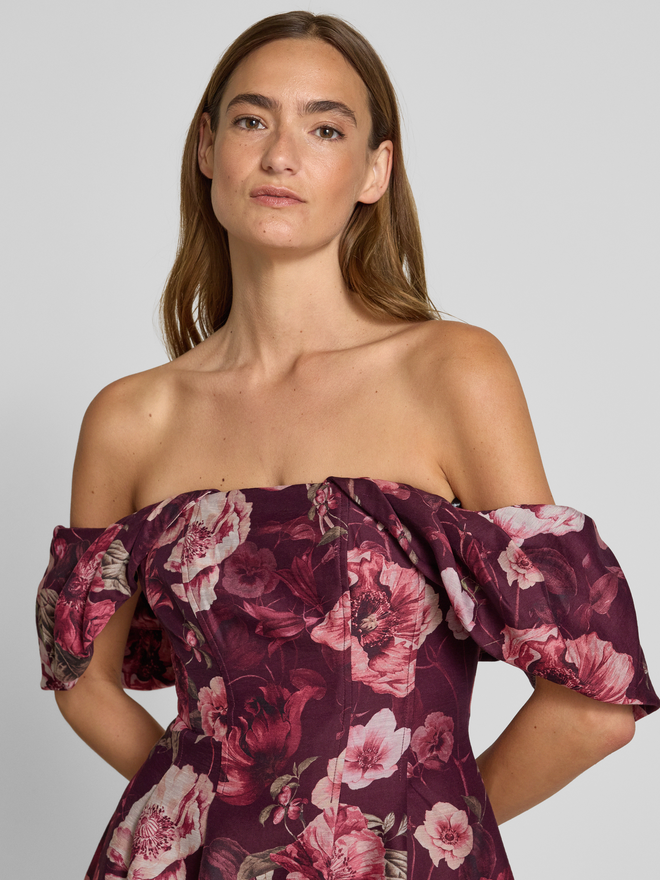 Cocktailjurk in off shoulder-look, model 'Jacquie' in bordeaux