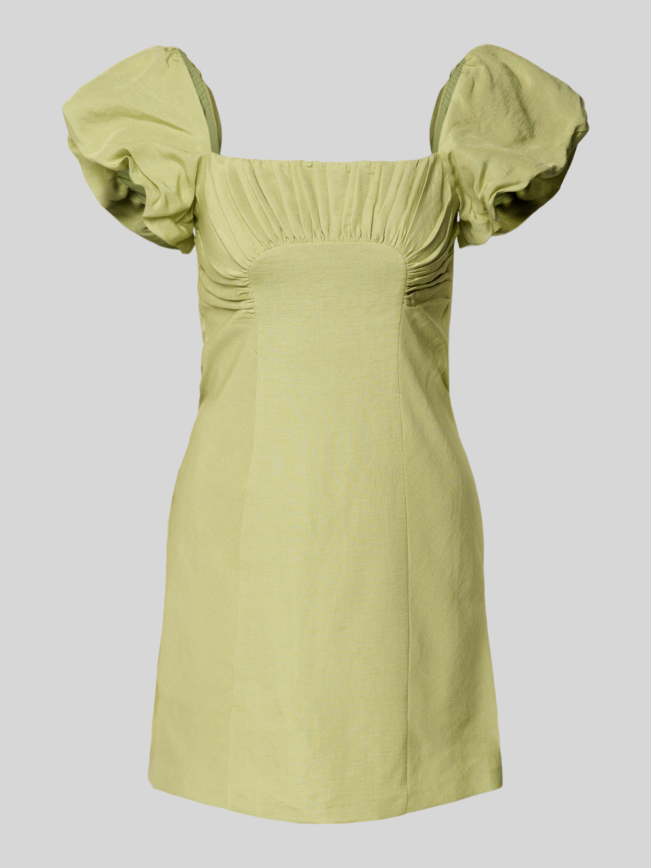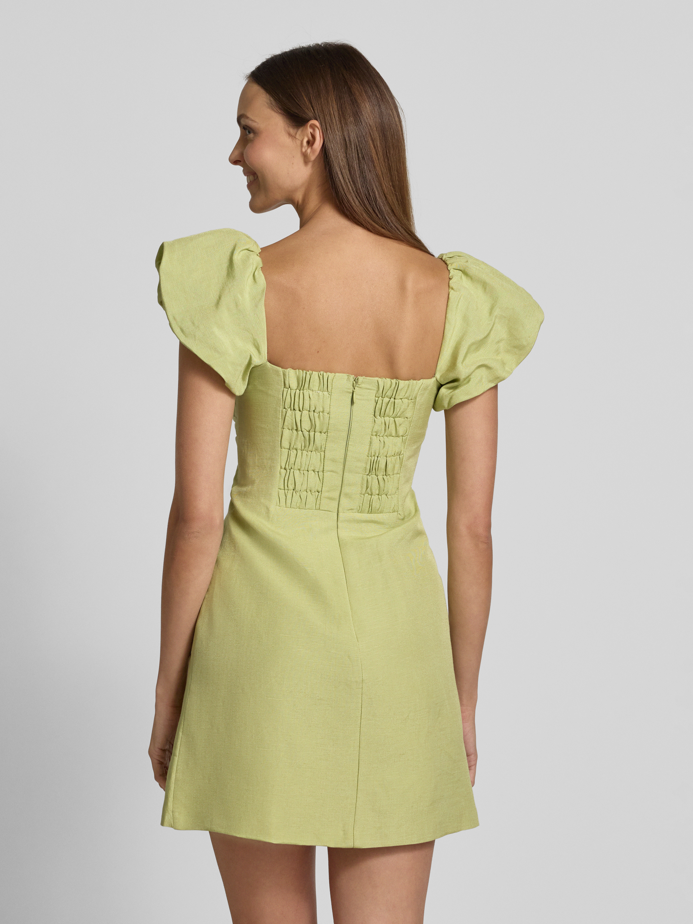 Cocktailjurk van linnenmix met pofmouwen, model 'Aspen Ruched' in lichtgroen