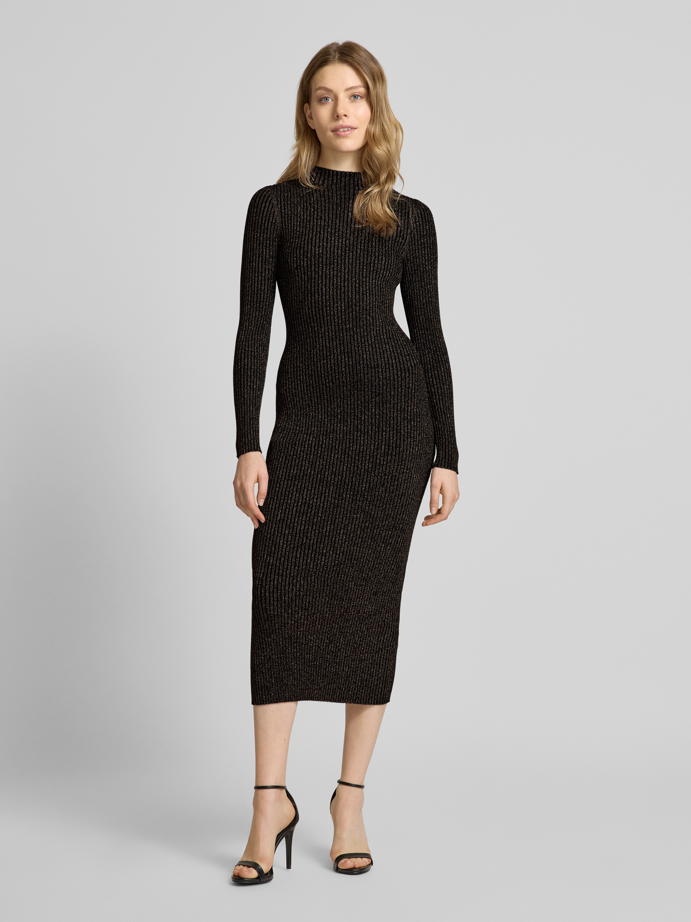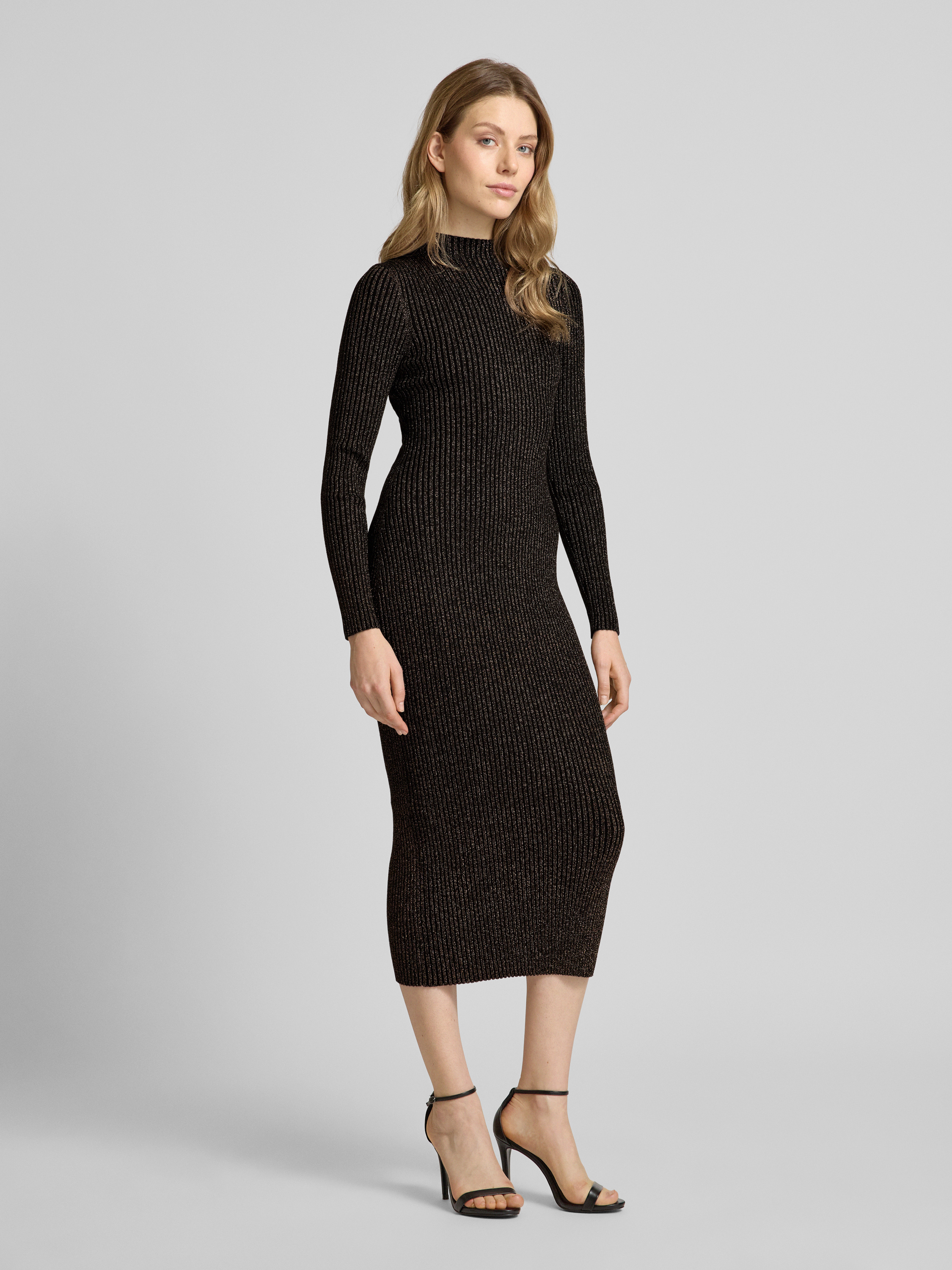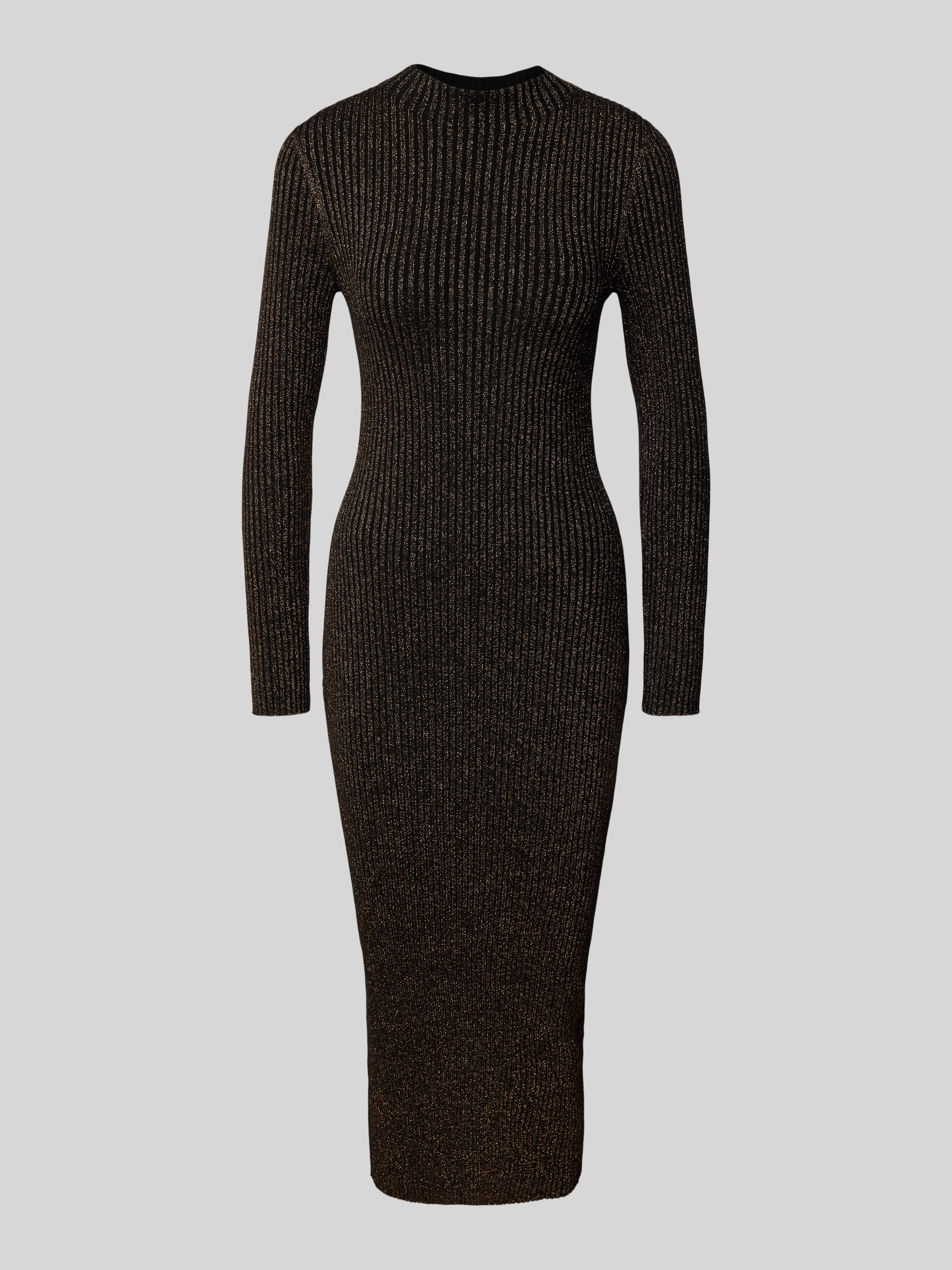 Midi-jurk van viscosemix in riblook in metallic bruin