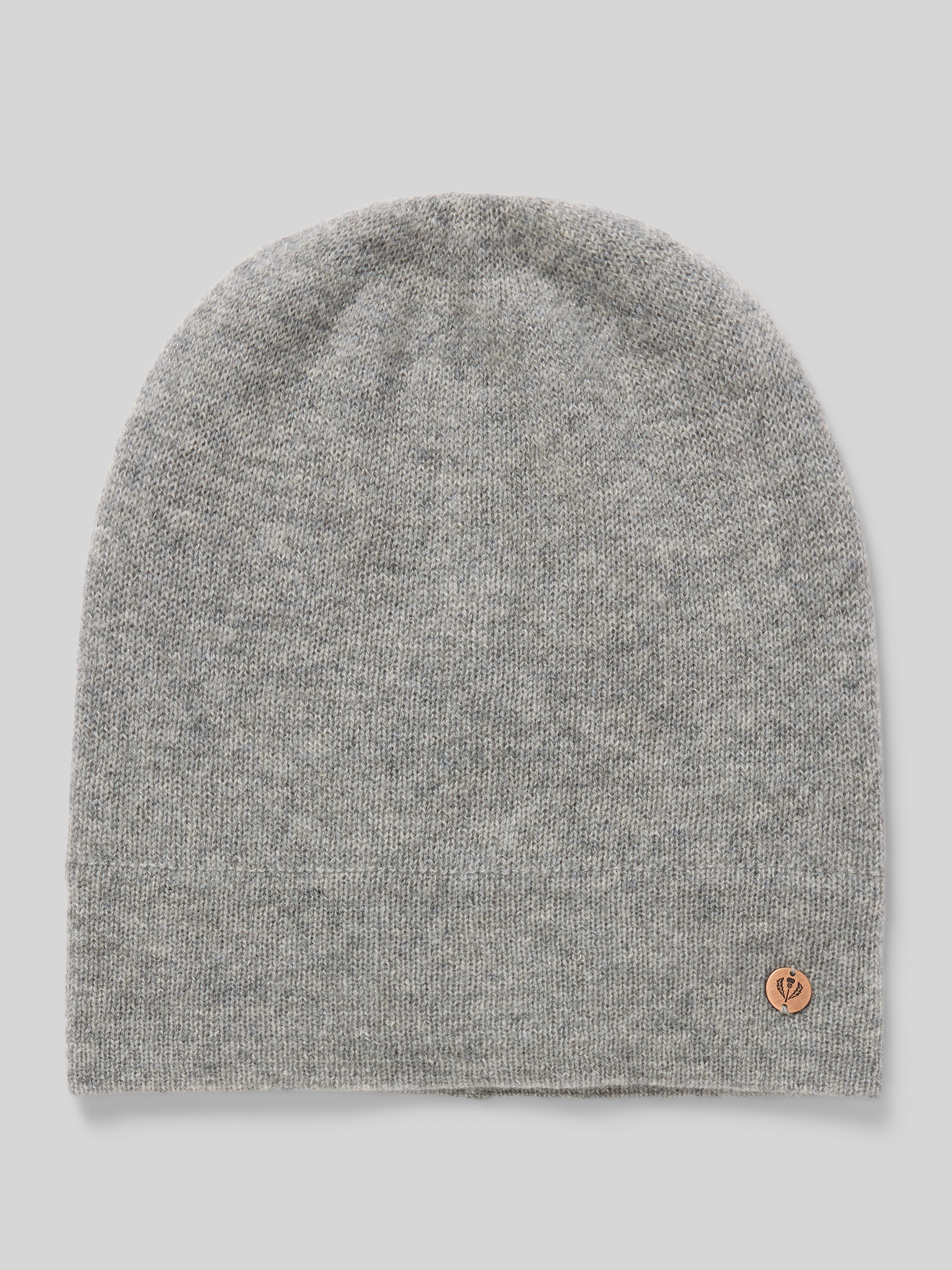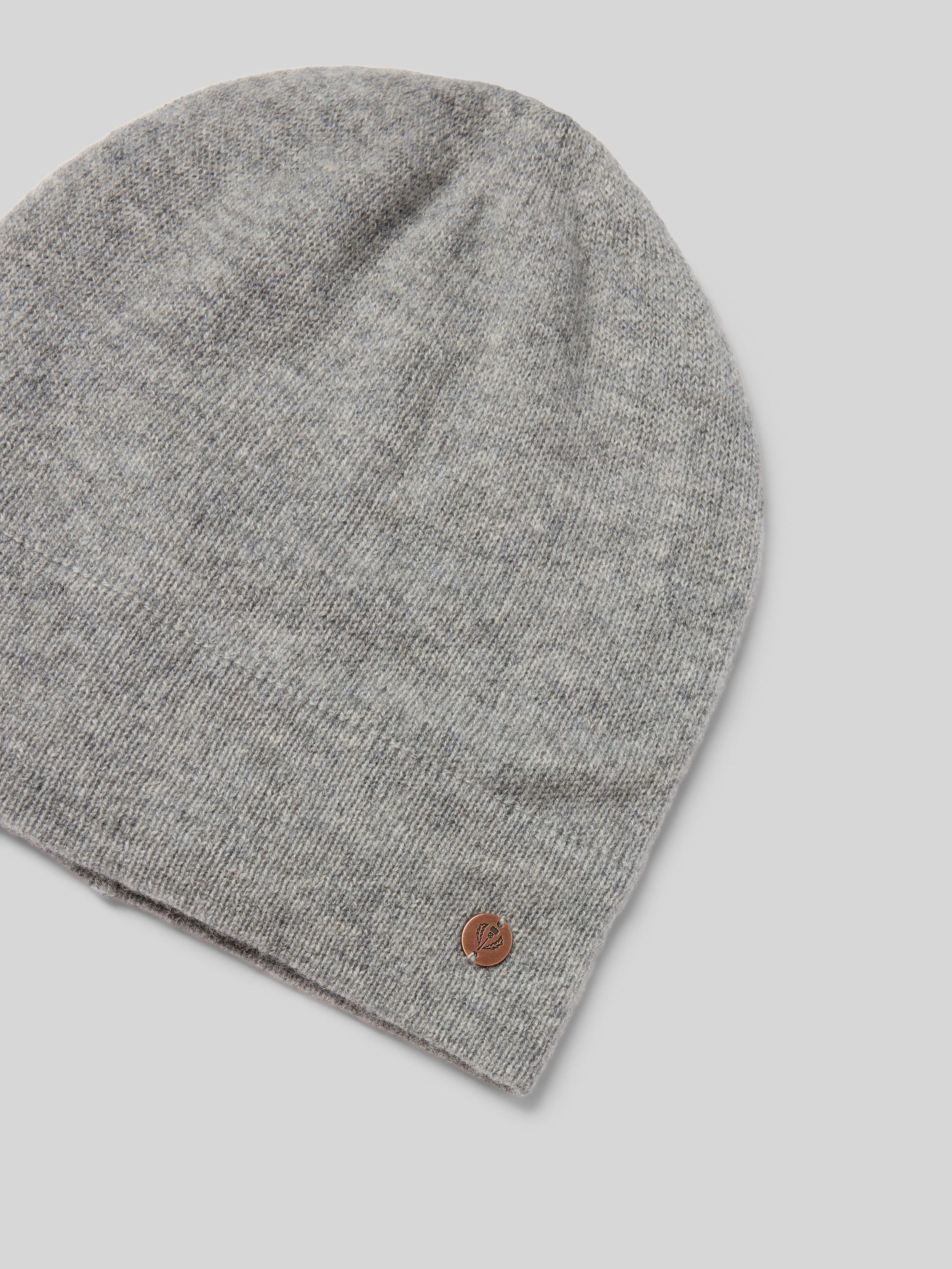Kasjmier muts met labelapplicatie in middengrijs