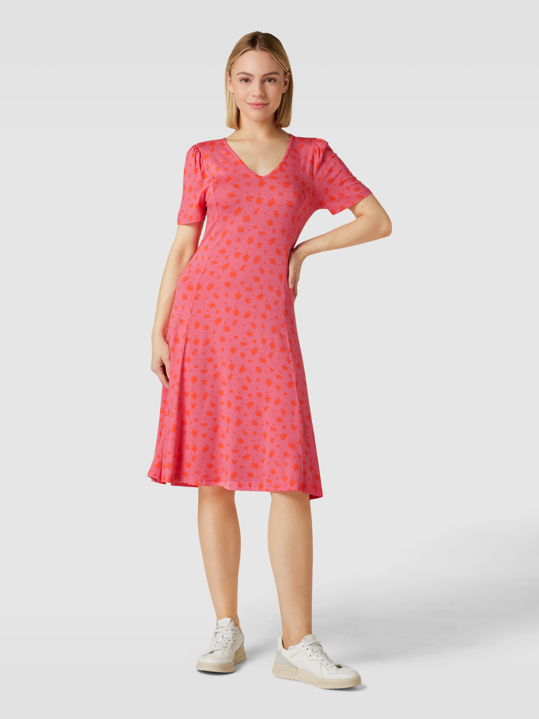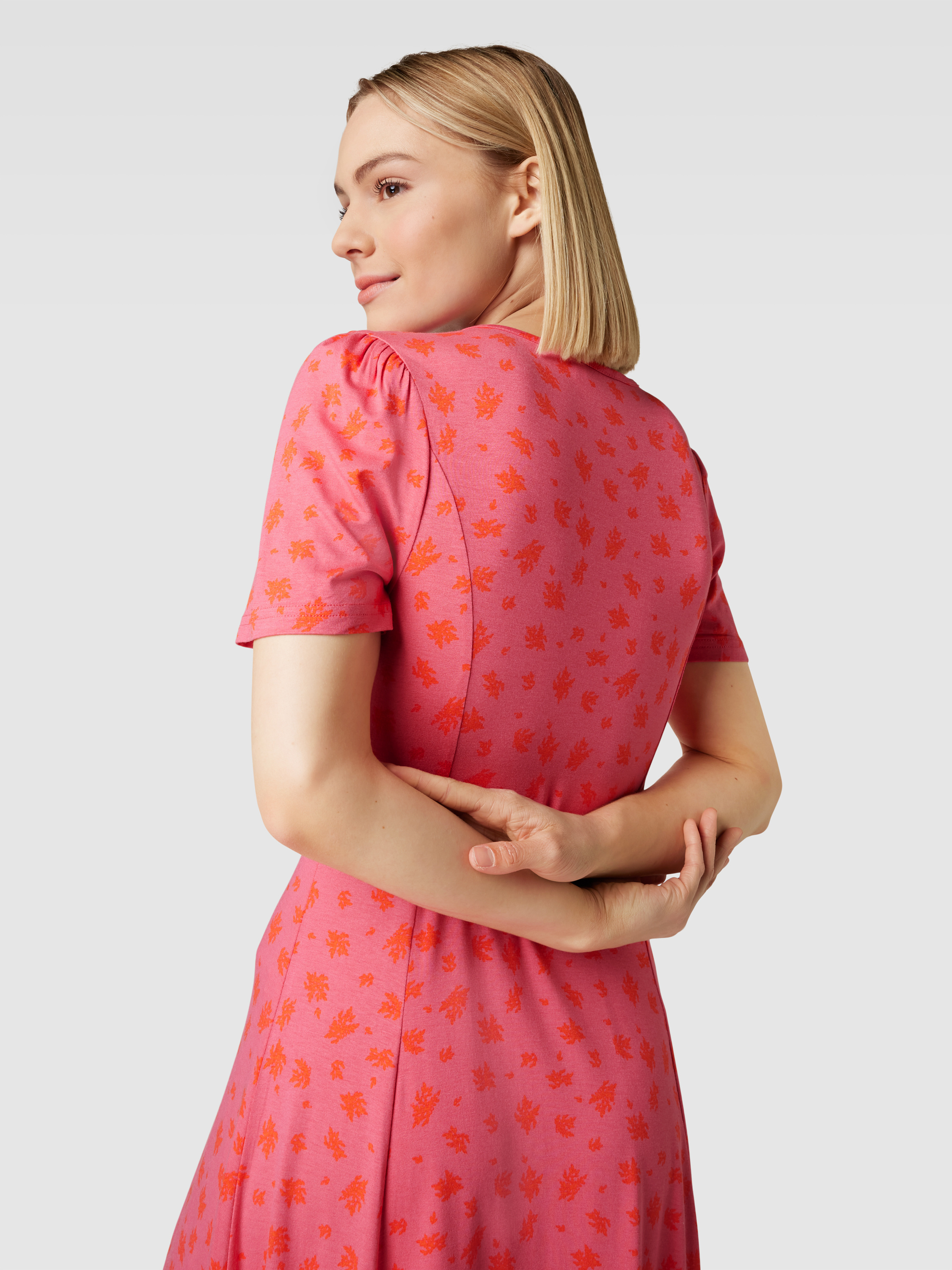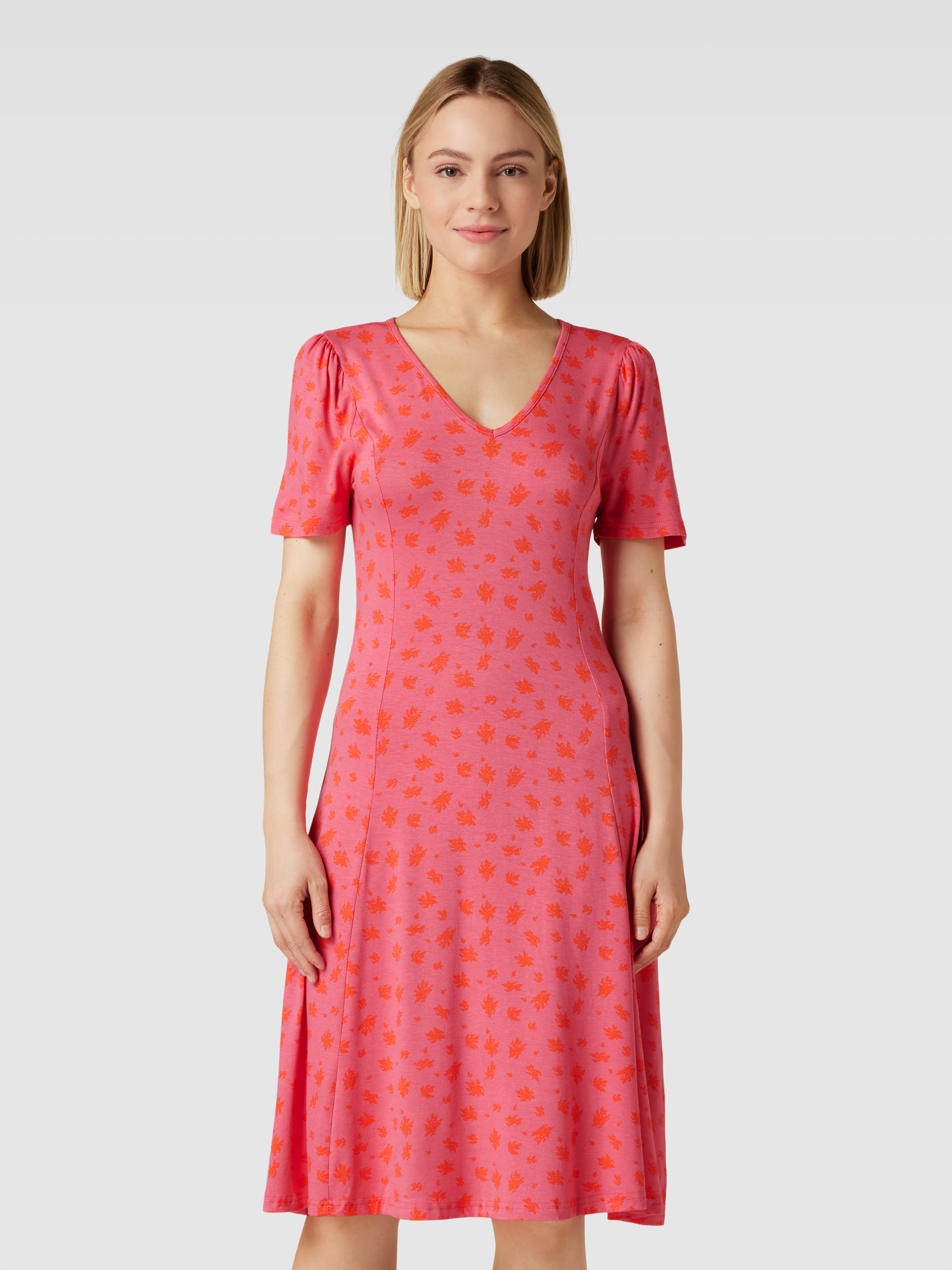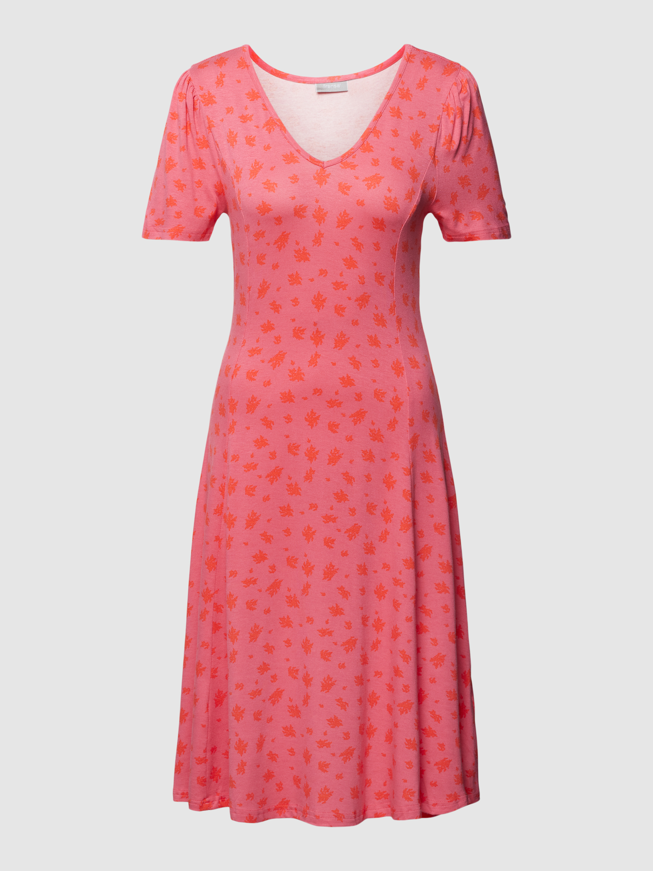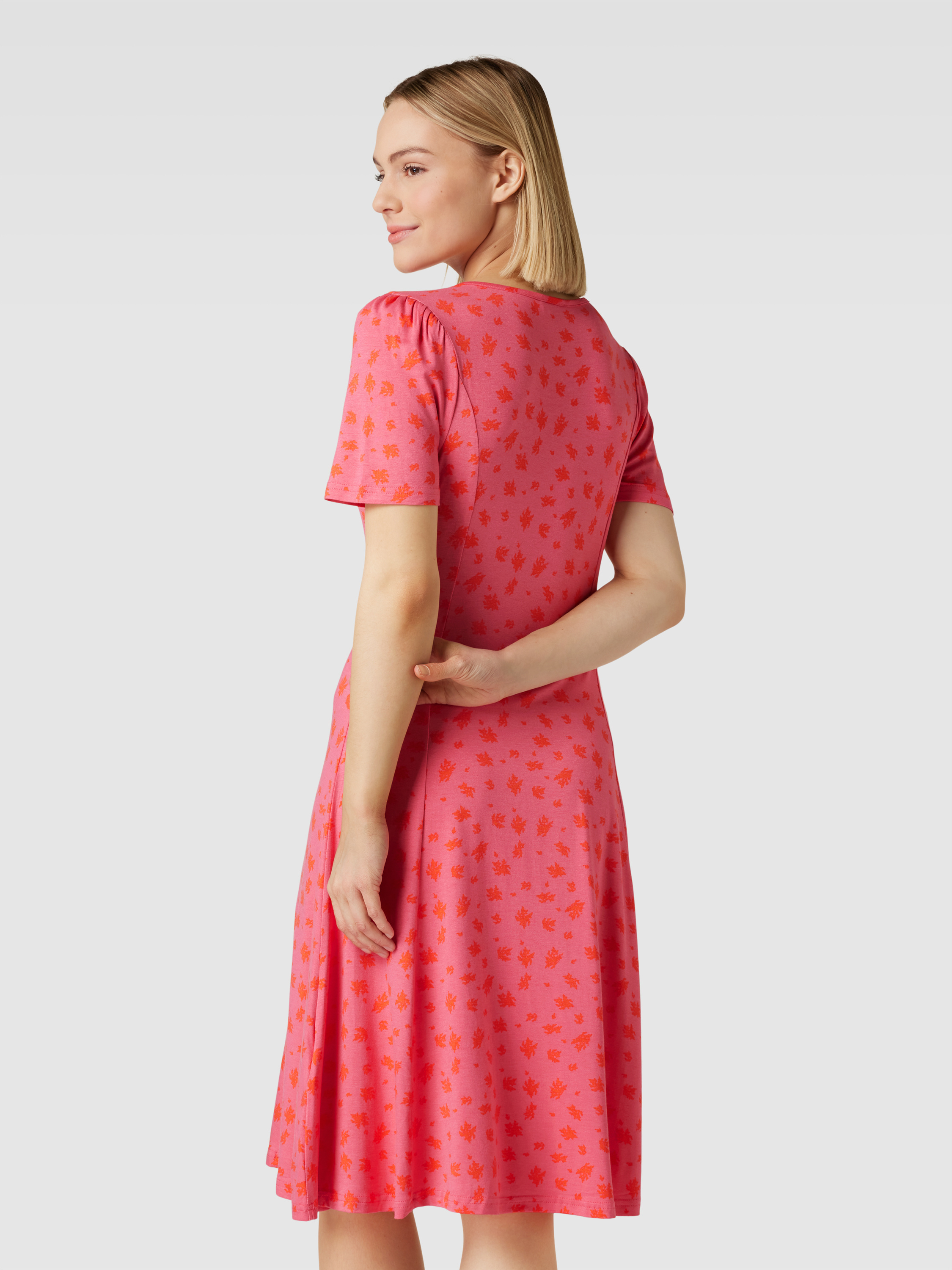 Midi-jurk met all-over motief, model 'FEDOT' in felroze