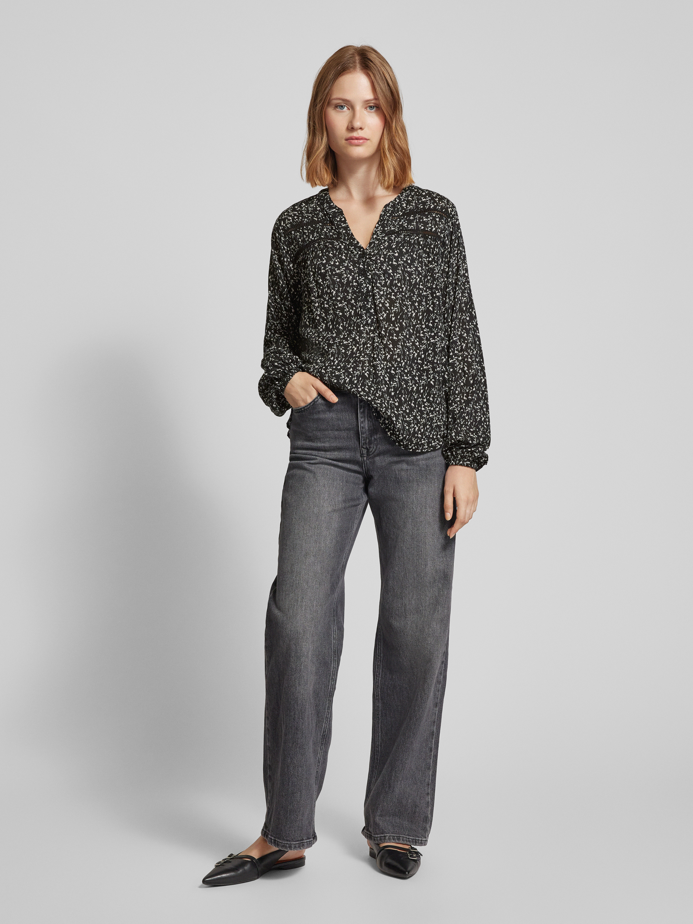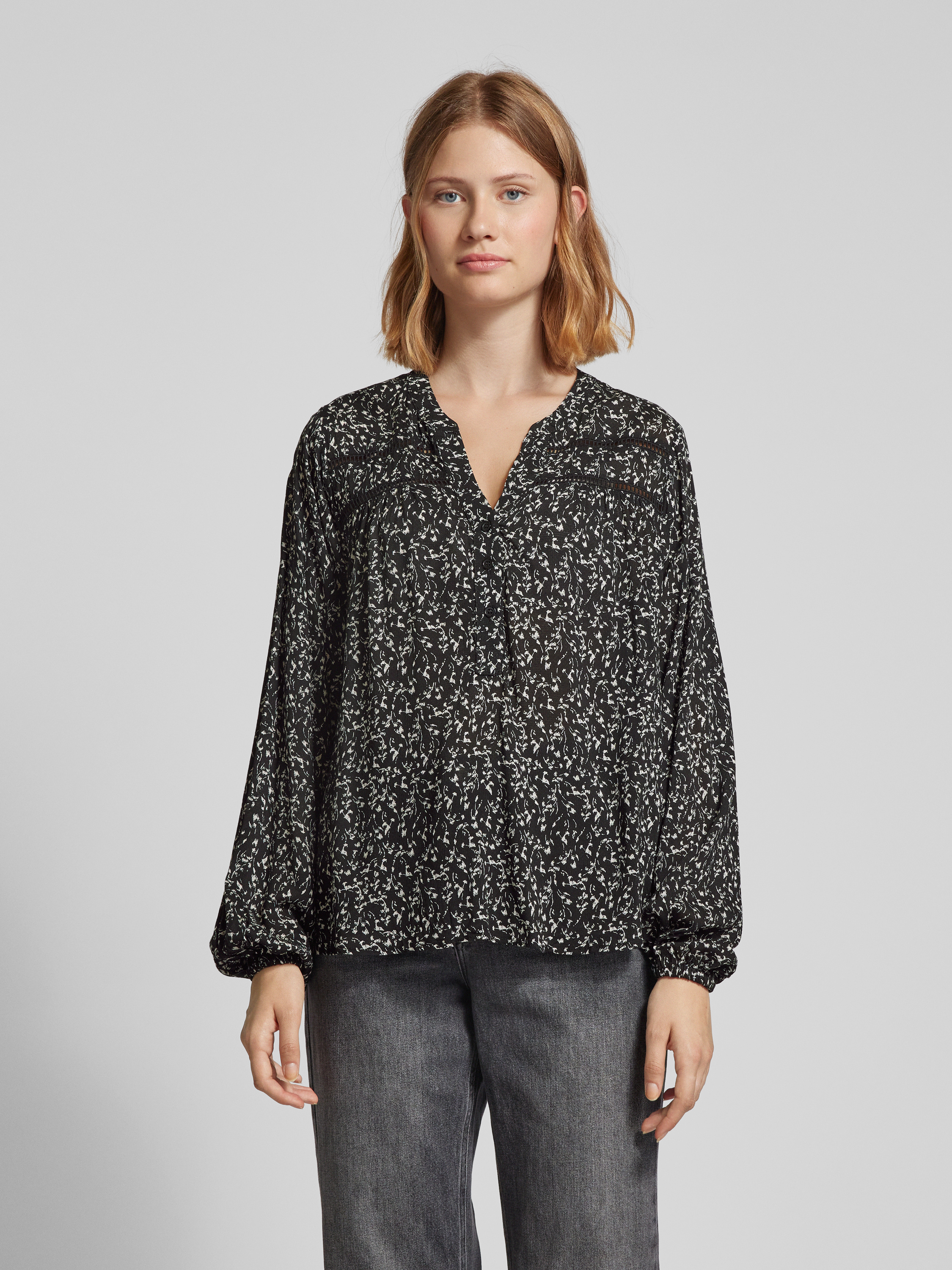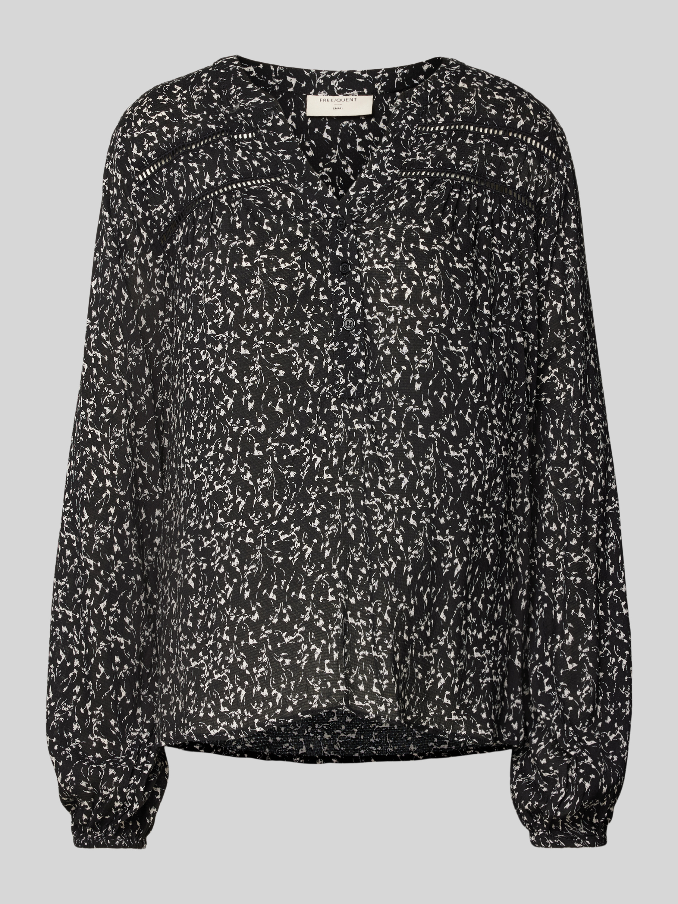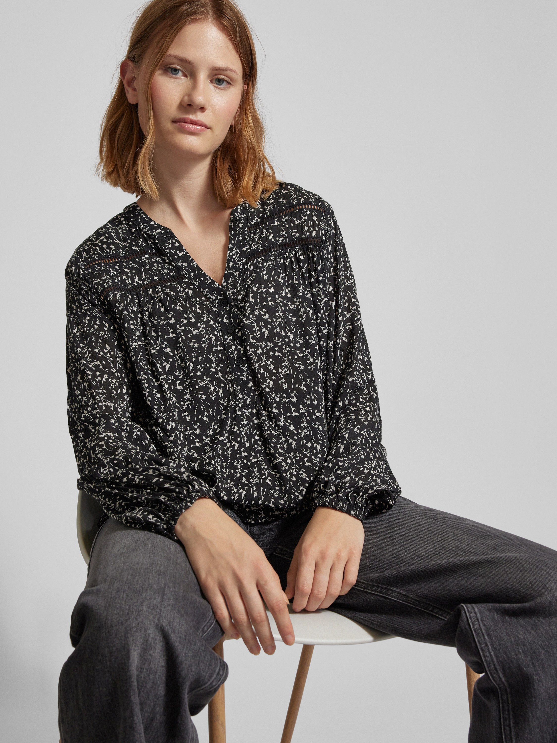 FREE/QUENTBlouse van pure viscose met V-hals, model 'Adney' in zwart