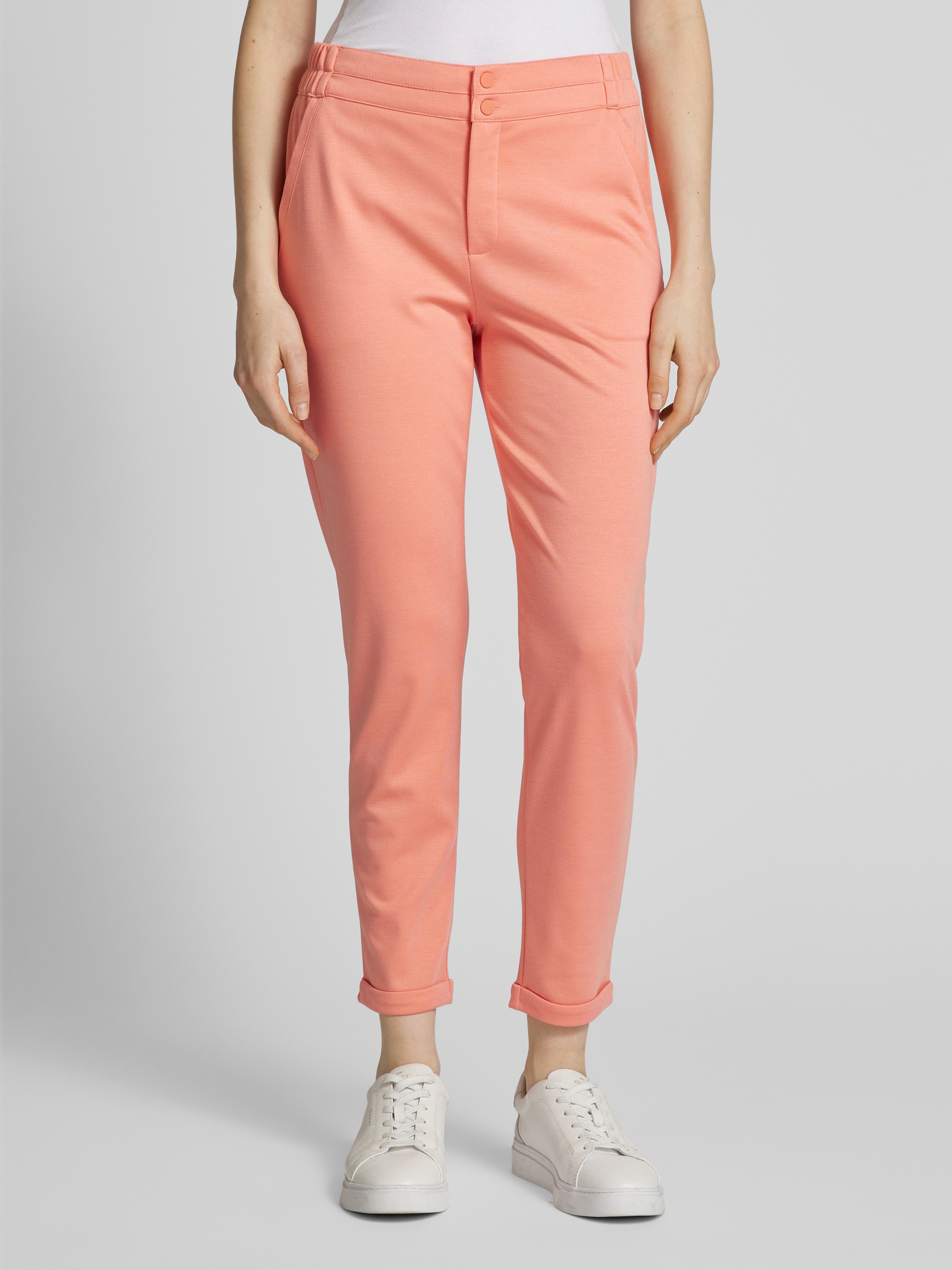 Broek van viscose met steekzakken opzij, model 'NANNI' in koraal