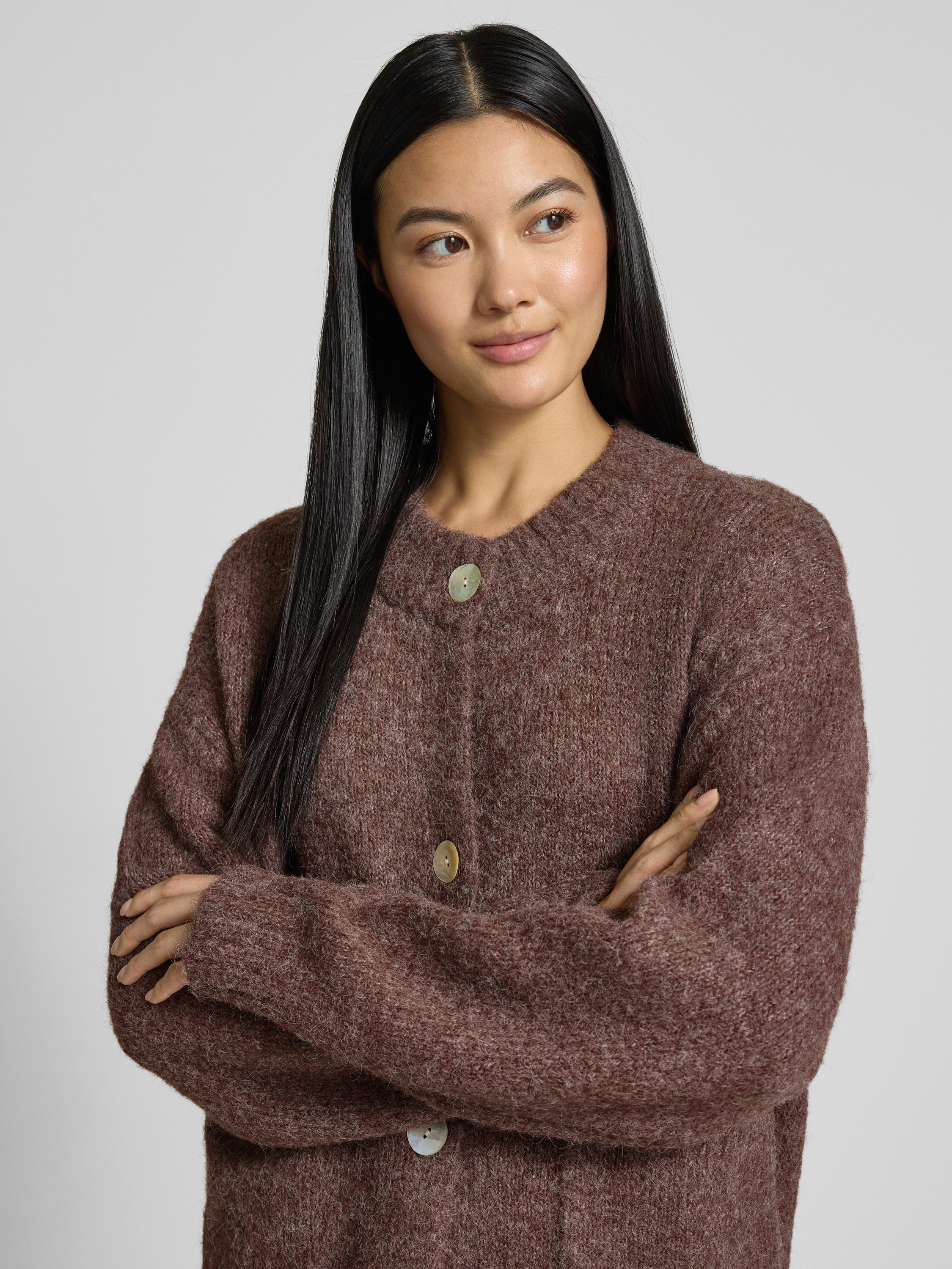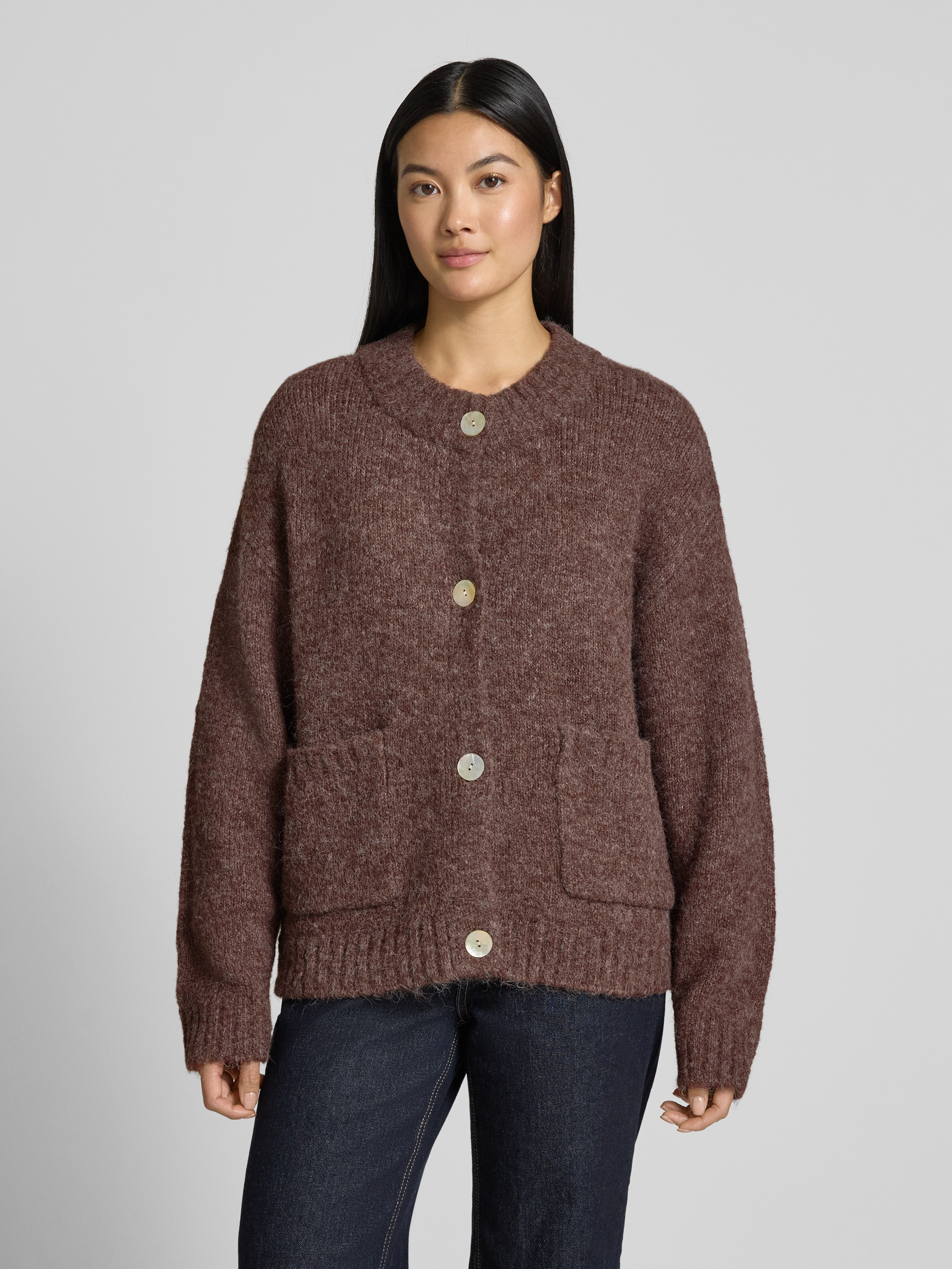 Gebreid jack met knoopsluiting, model 'Lulu' in donkerbruin