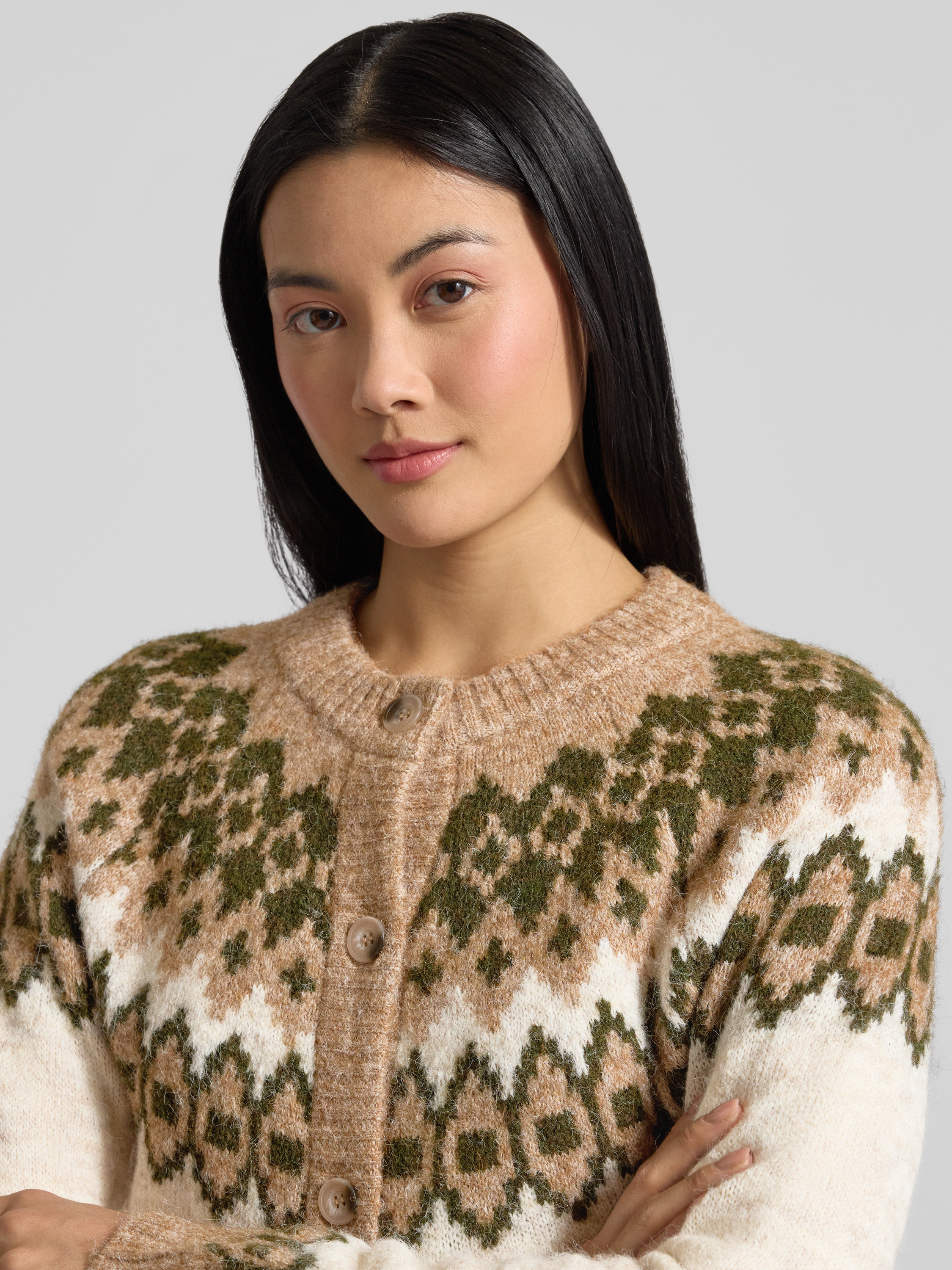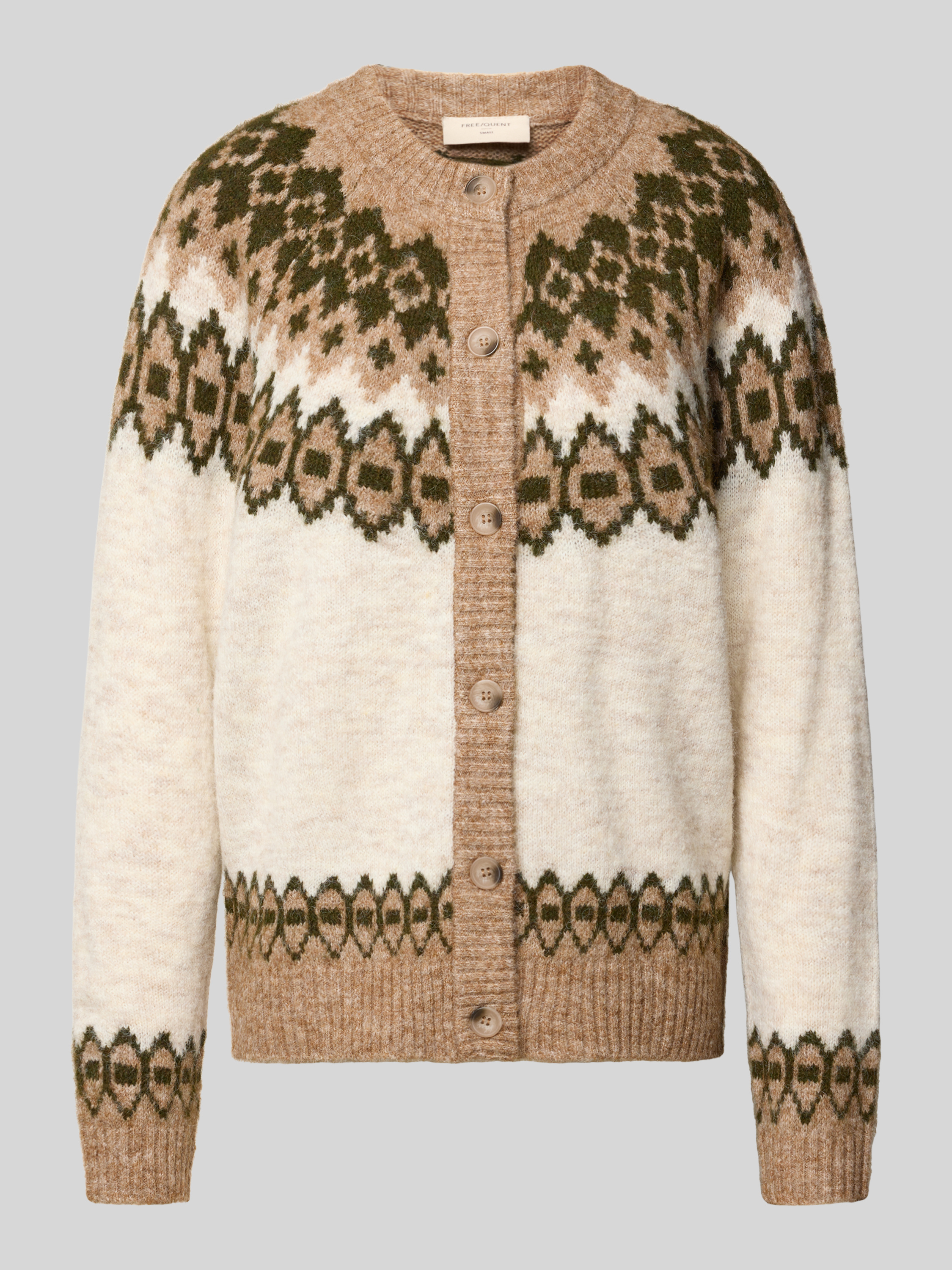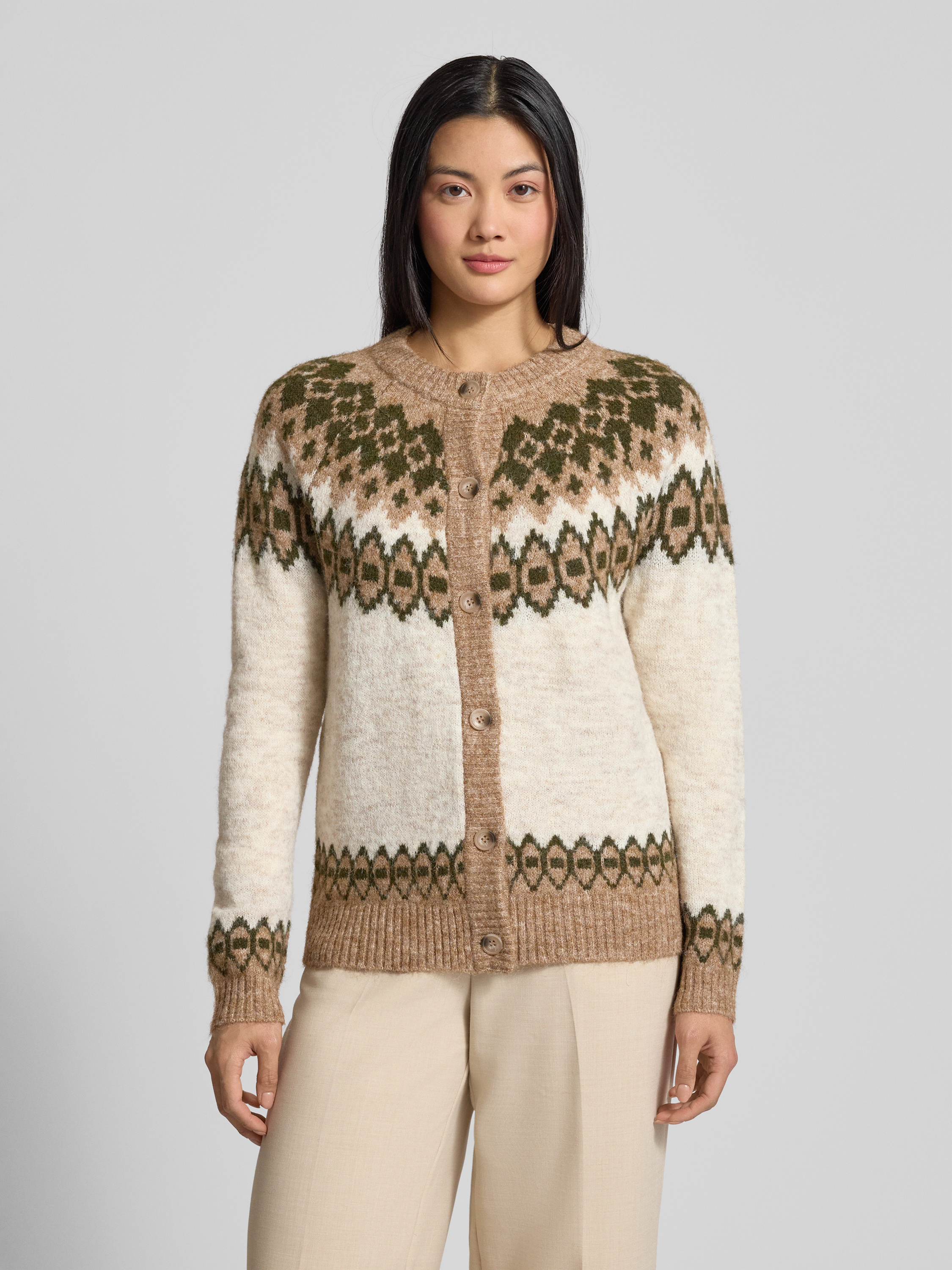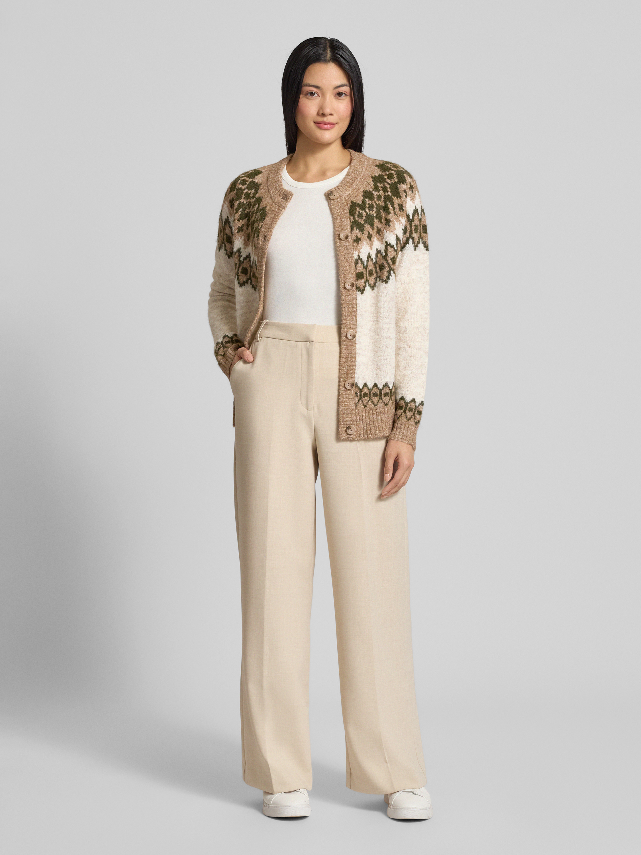 Gebreid jack met ronde hals, model 'Novala' in beige