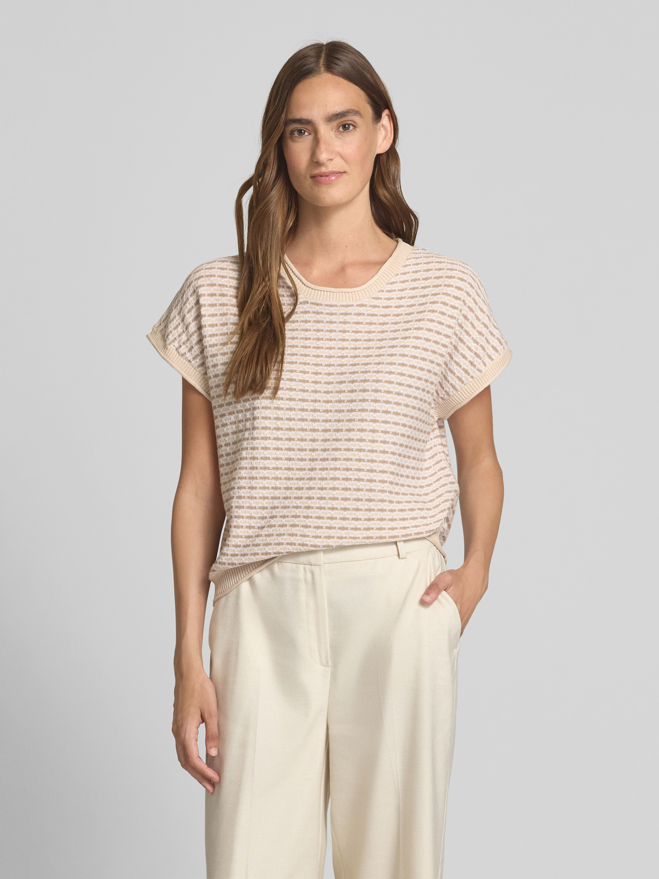 Gebreid shirt met ronde hals, model 'DODO' in taupe