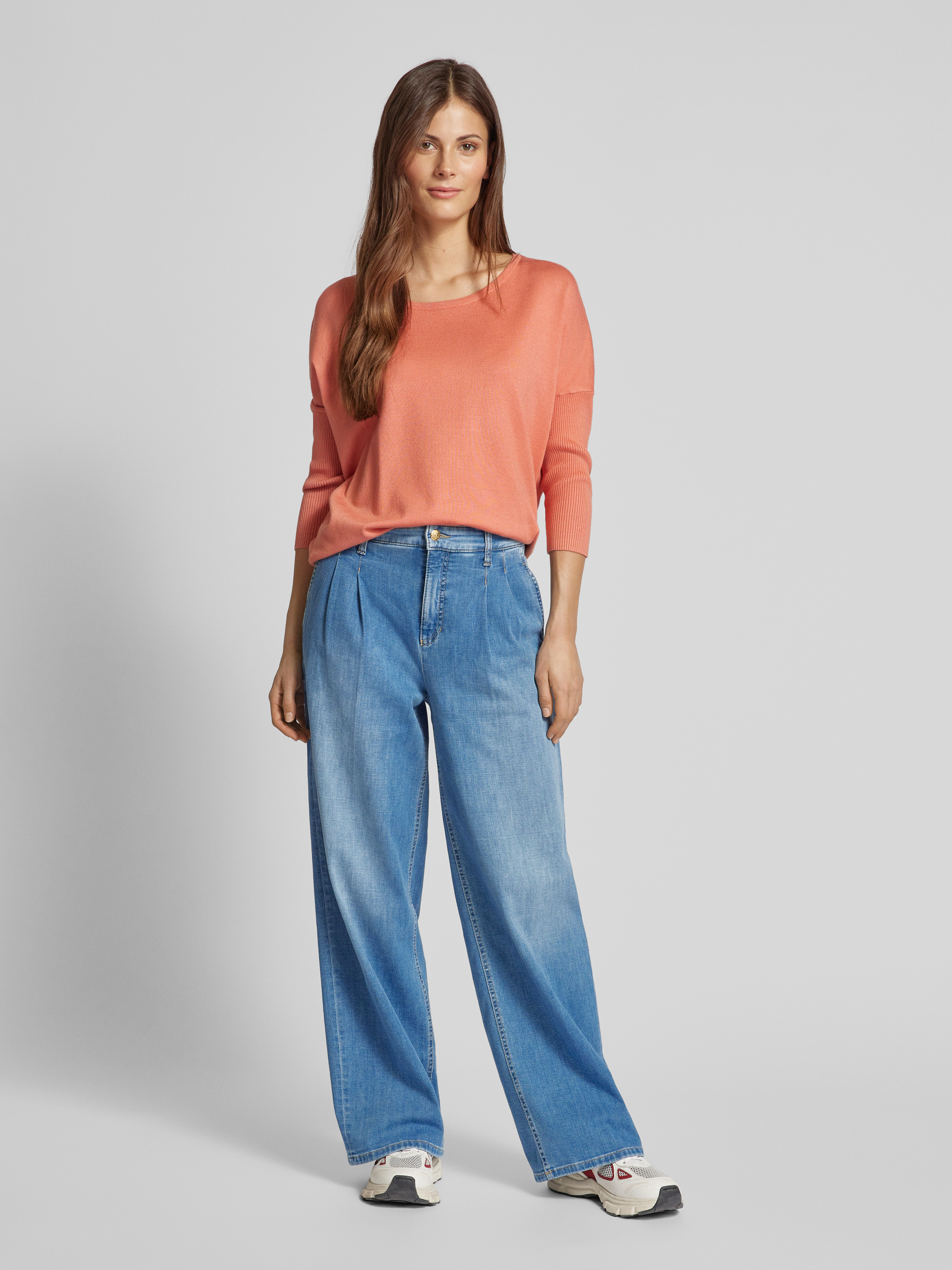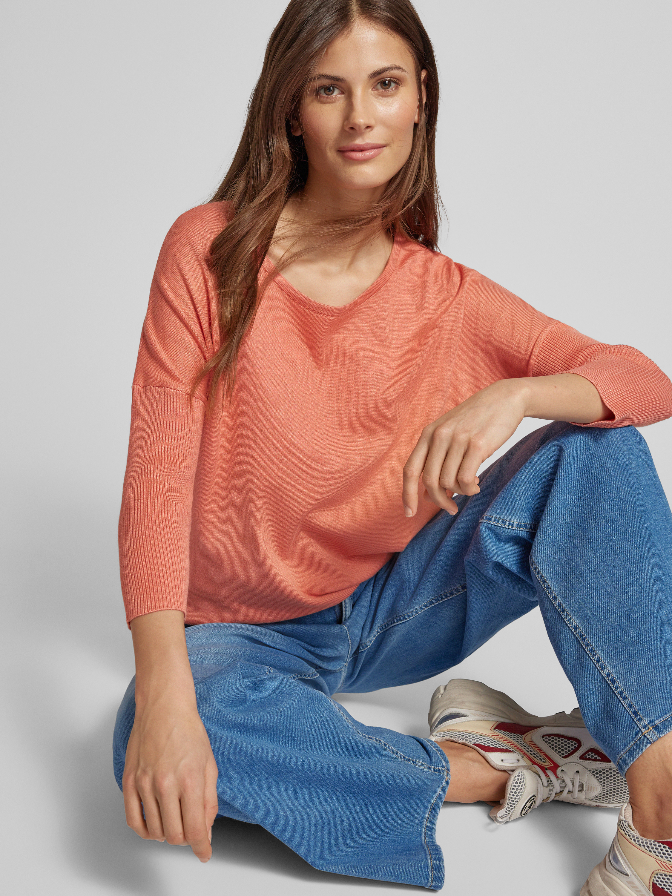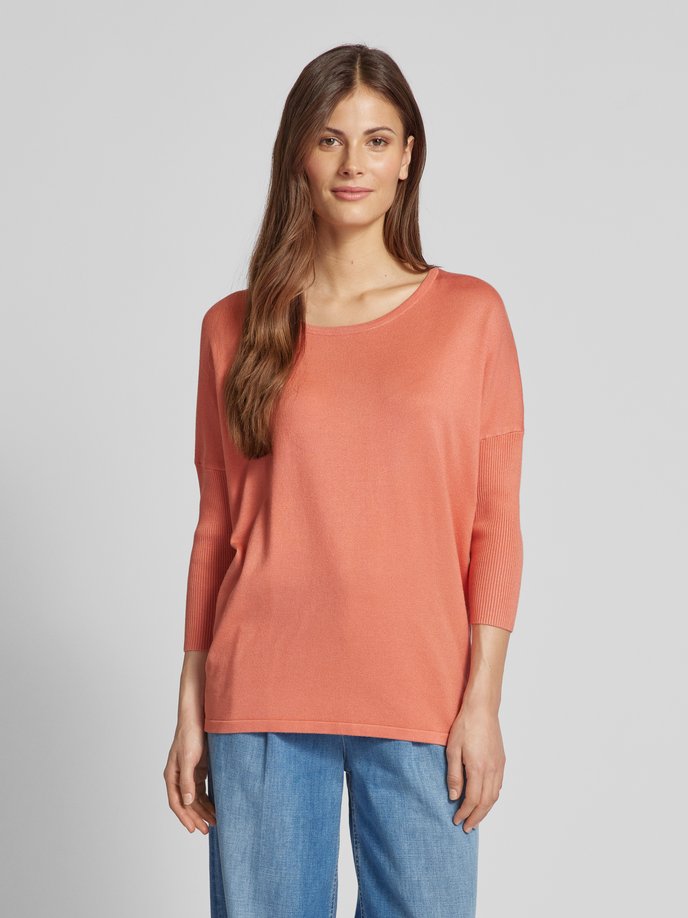 Gebreide pullover met 3/4-mouwen, model 'JONE' in koraal