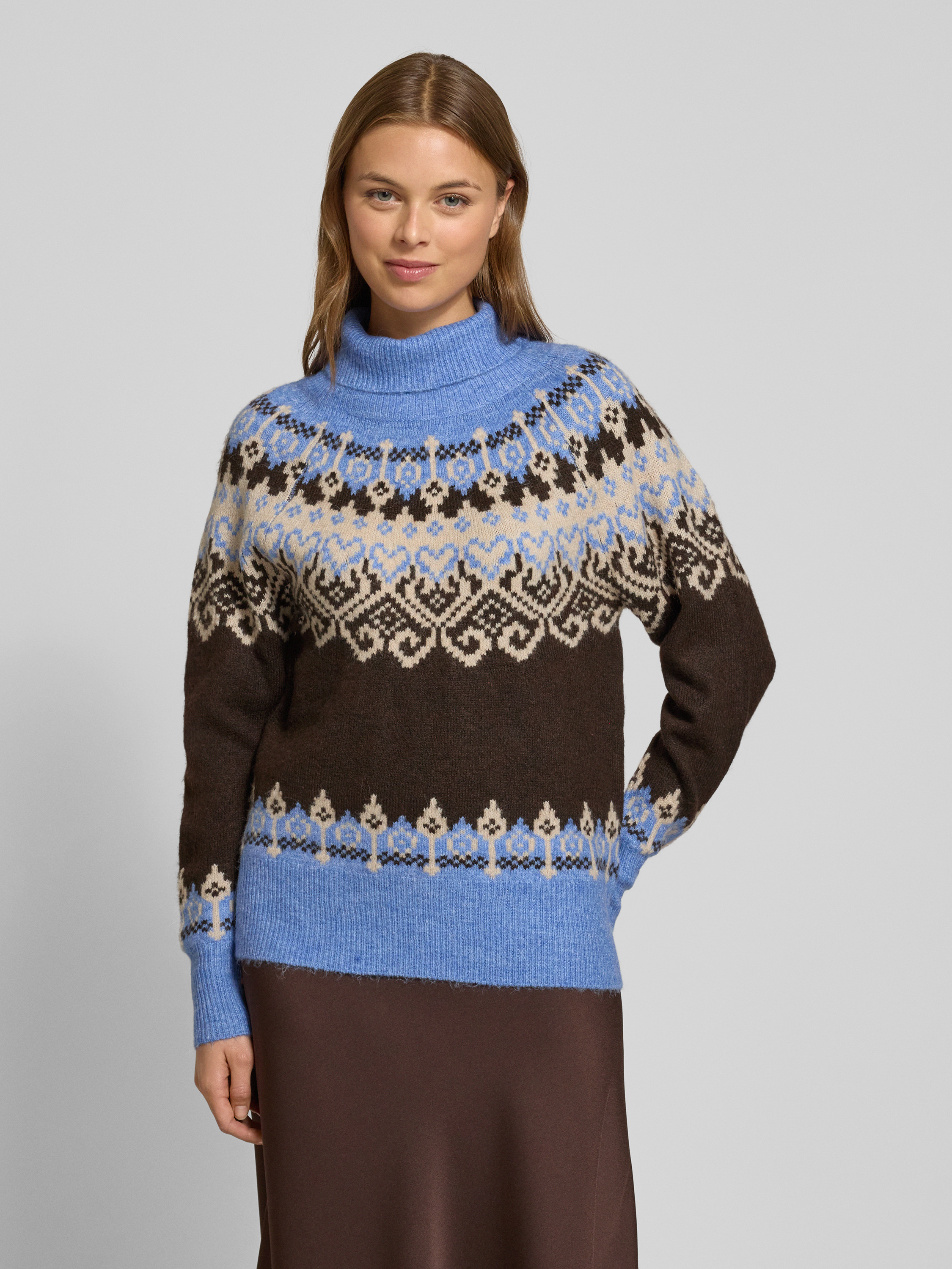 Gebreide pullover met ribboorden, model 'Merla' in lichtblauw