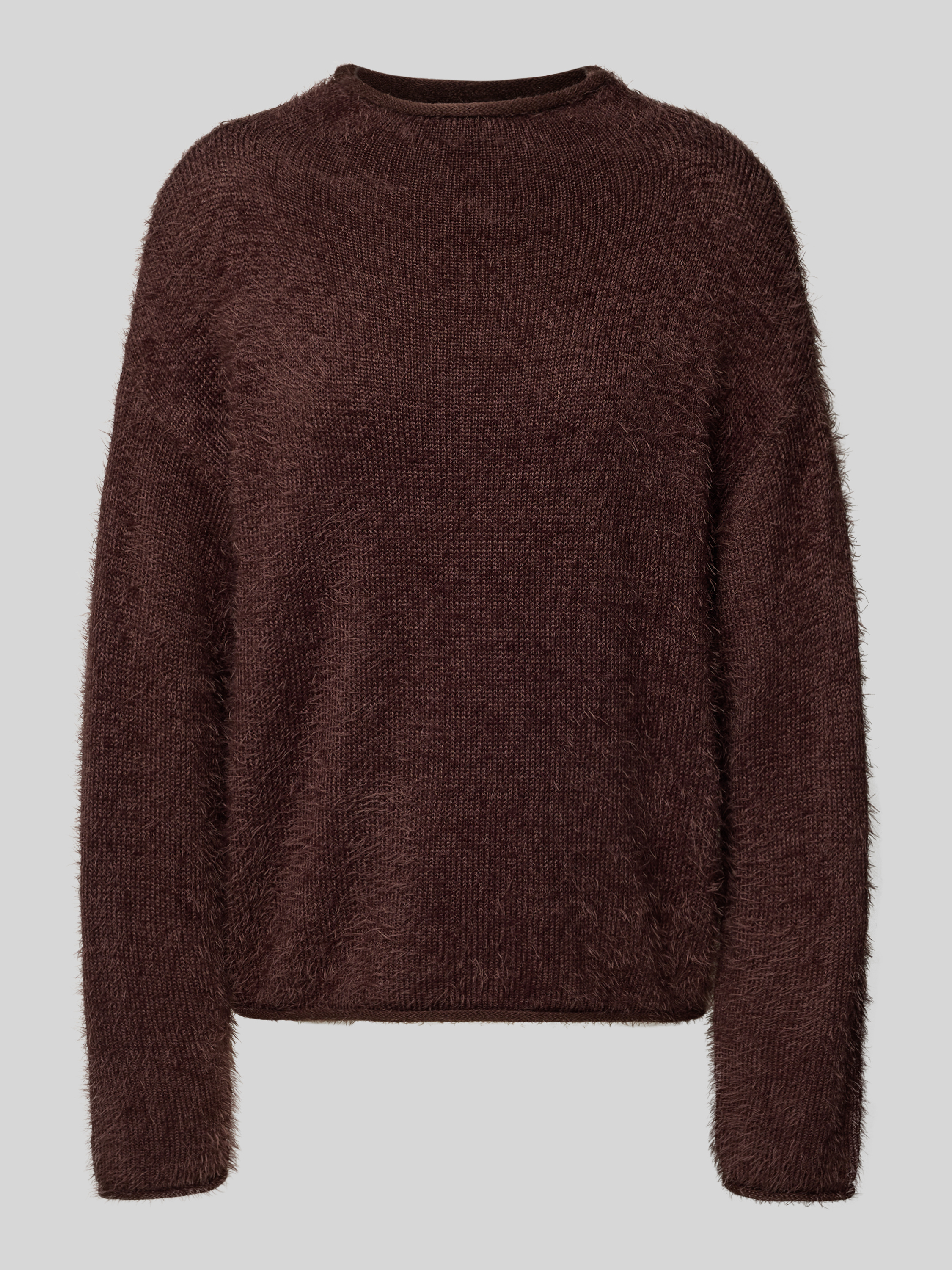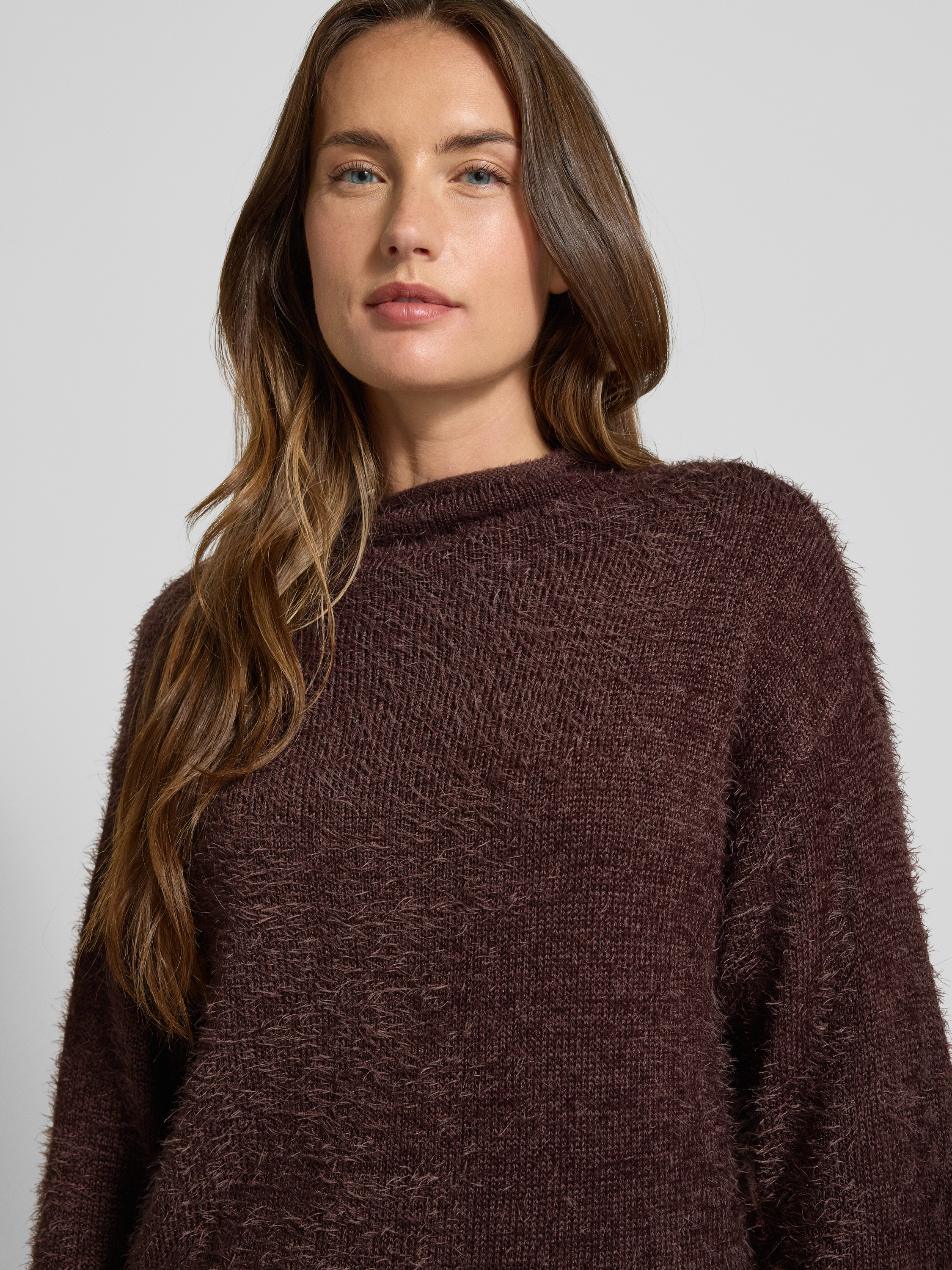 Gebreide pullover met ronde hals, model 'Cat' in donkerbruin