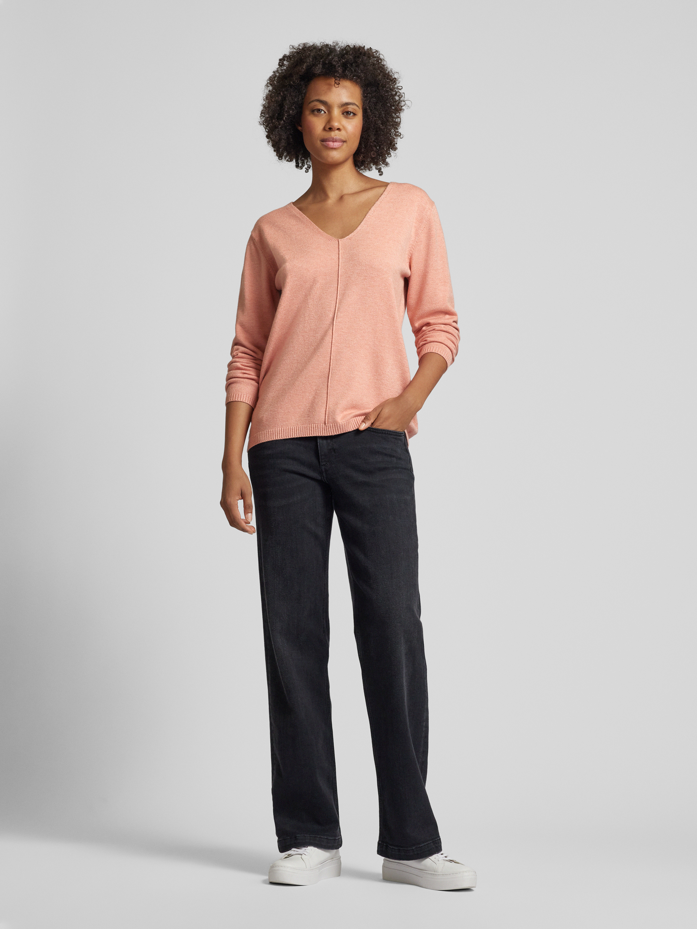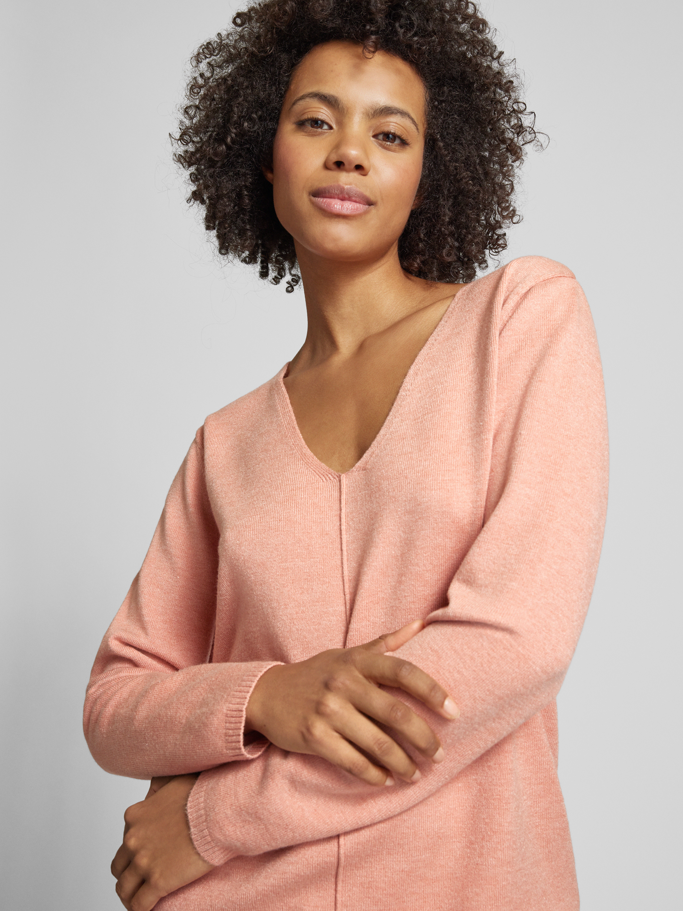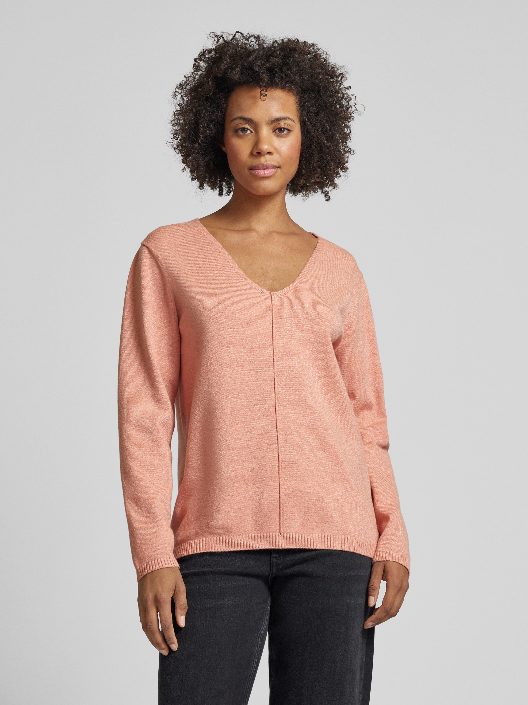 Gebreide pullover met V-hals, model 'Claura' in oudroze gemêleerd