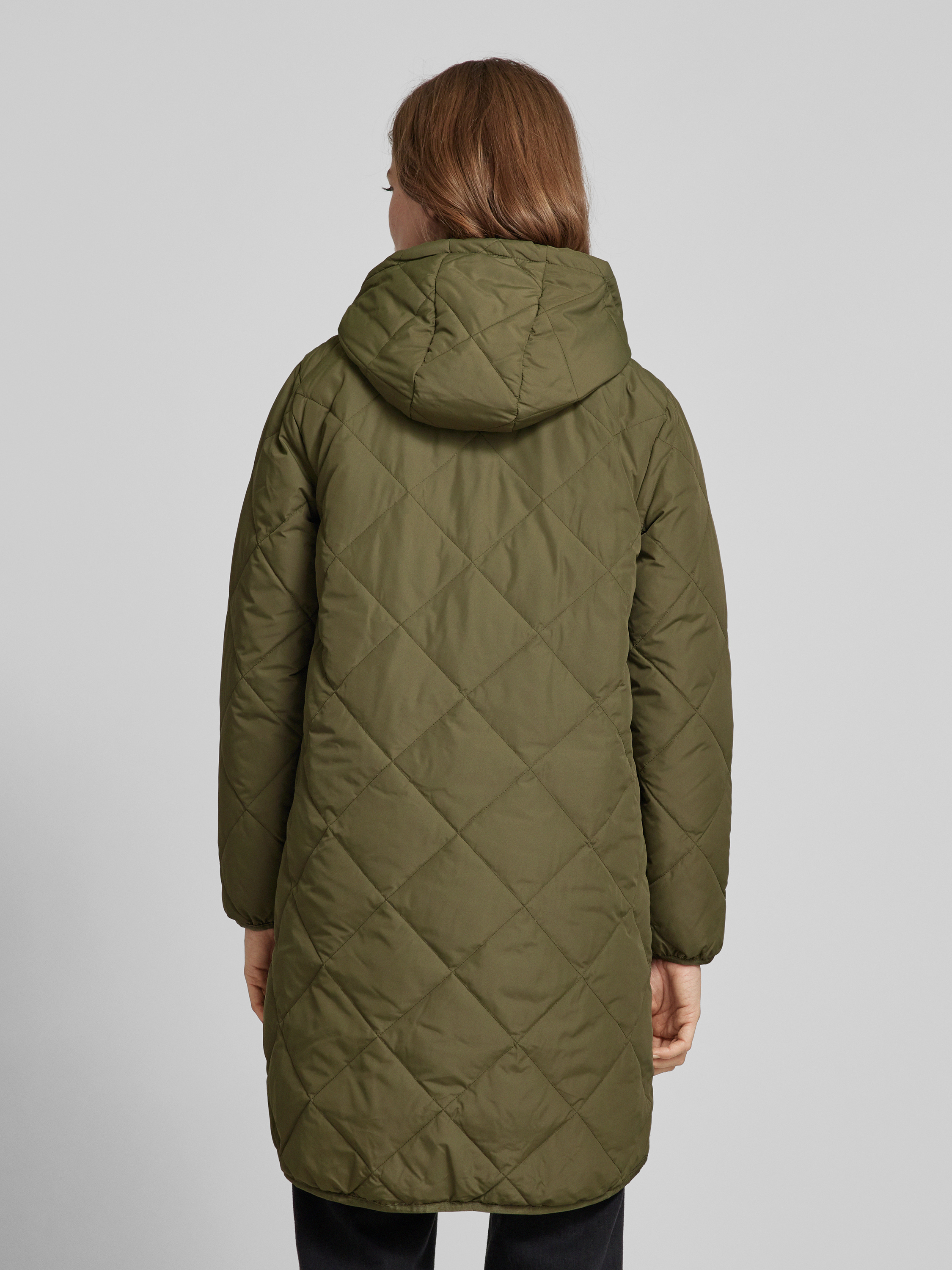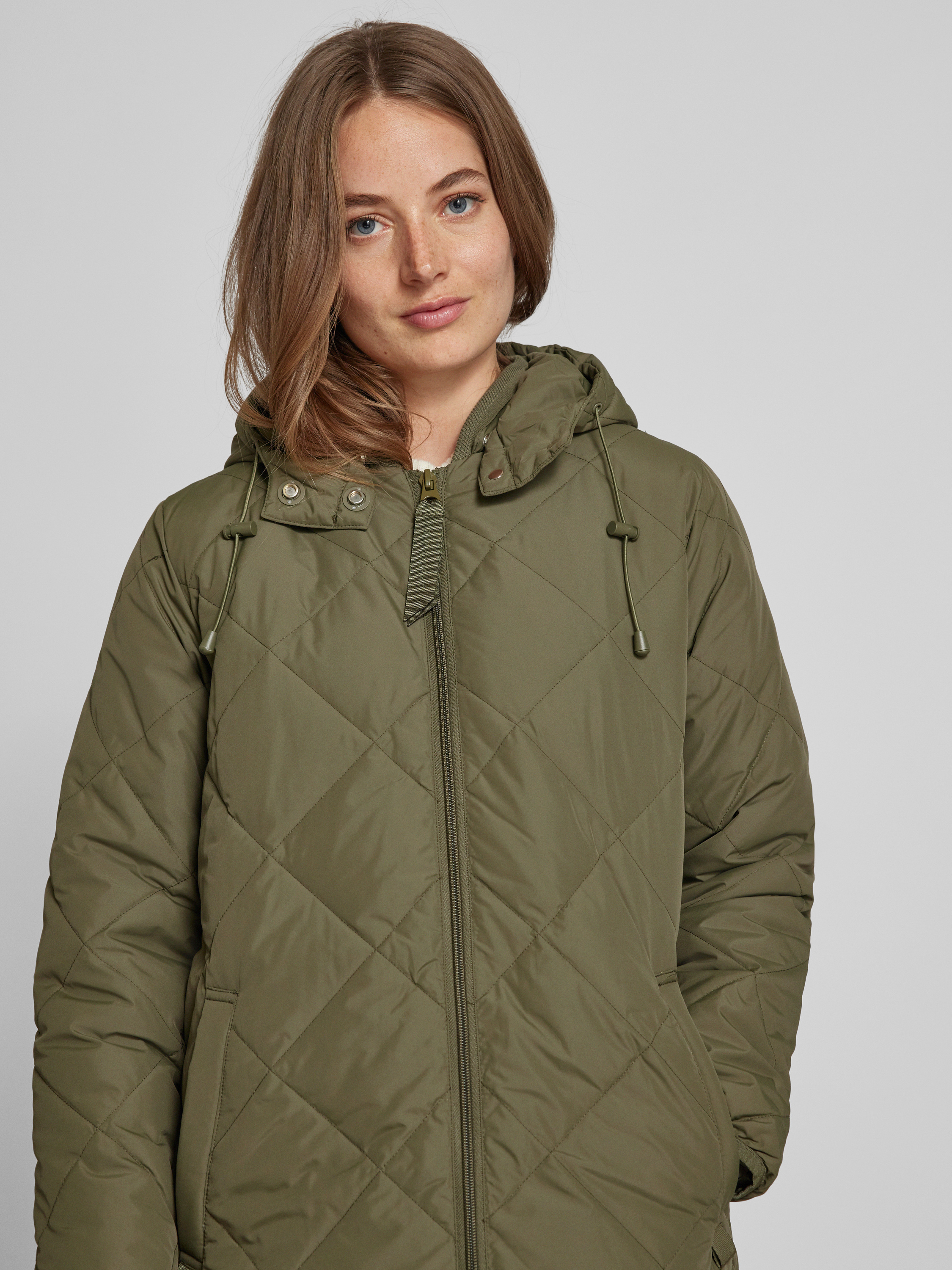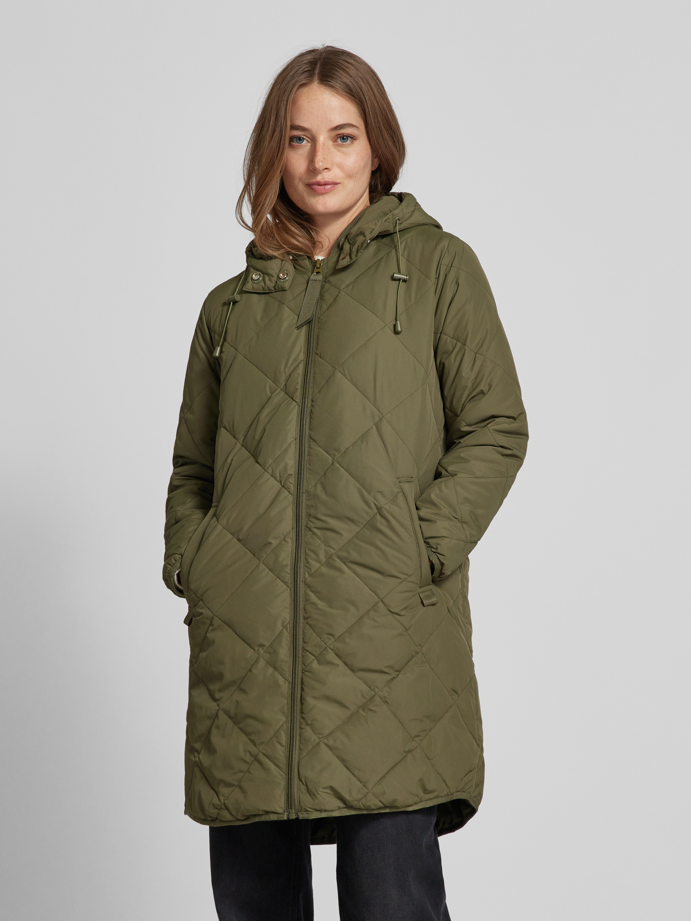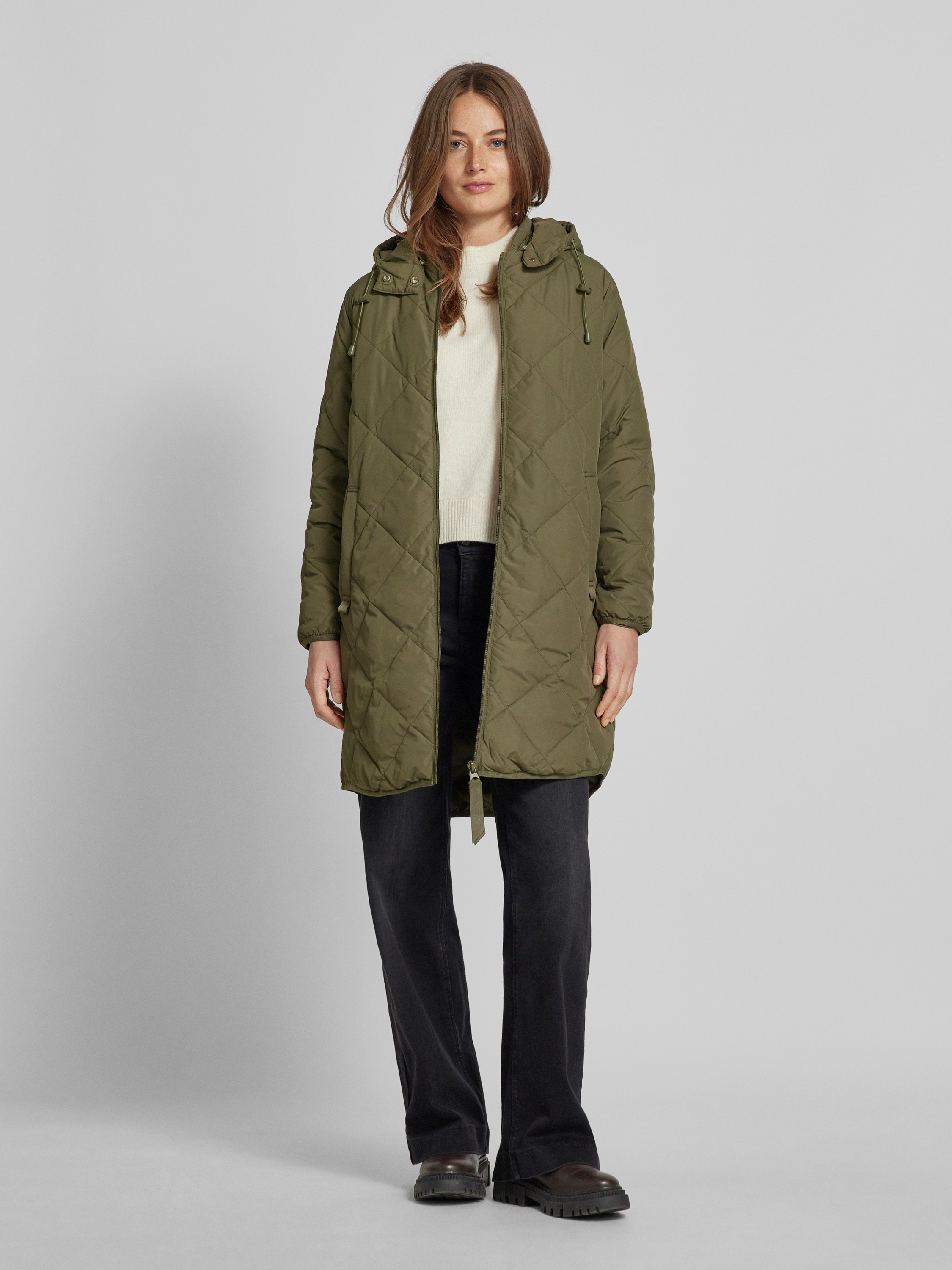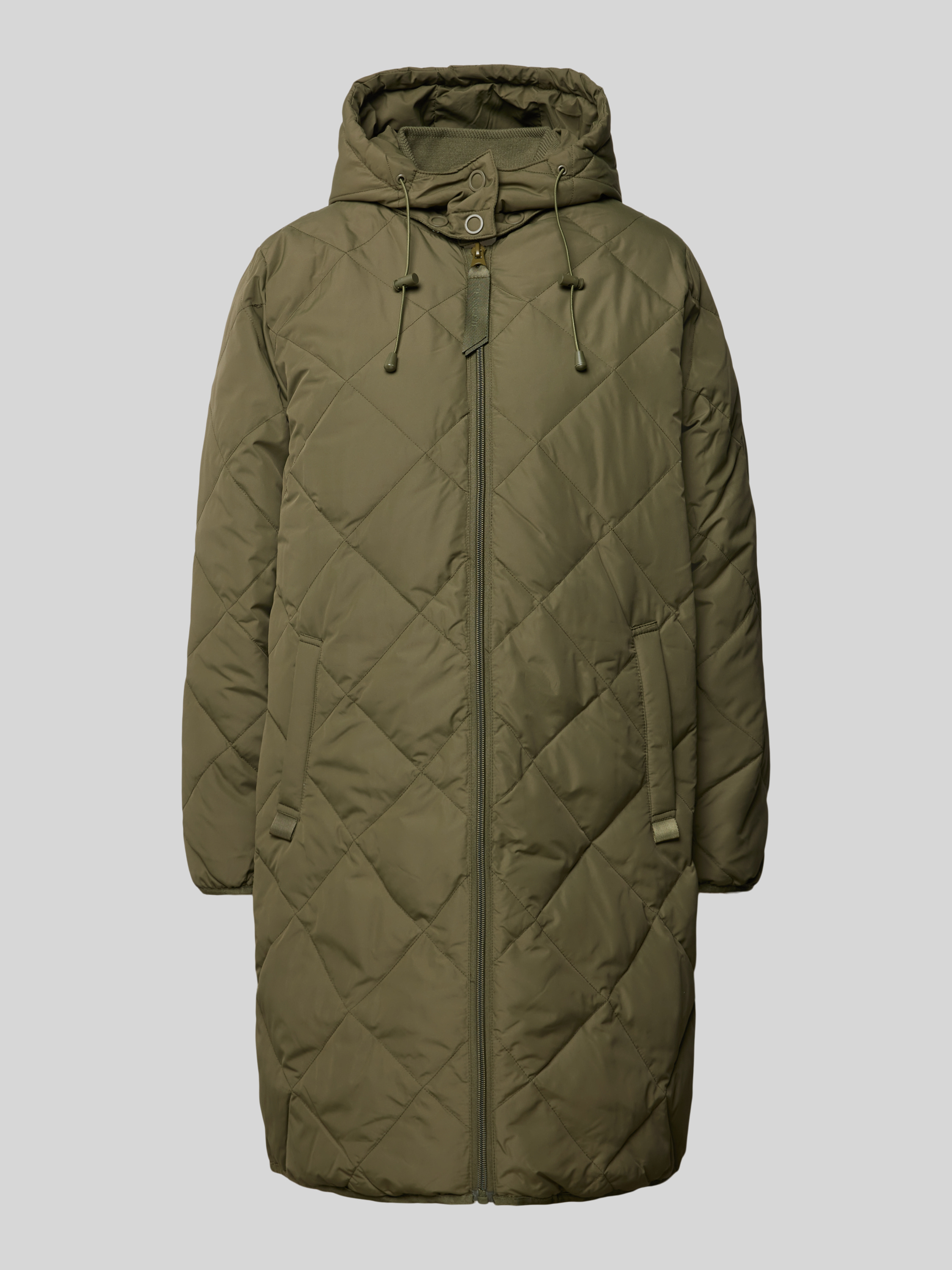 Gewatteerde lange jas met capuchon, model 'Signa' in kaki