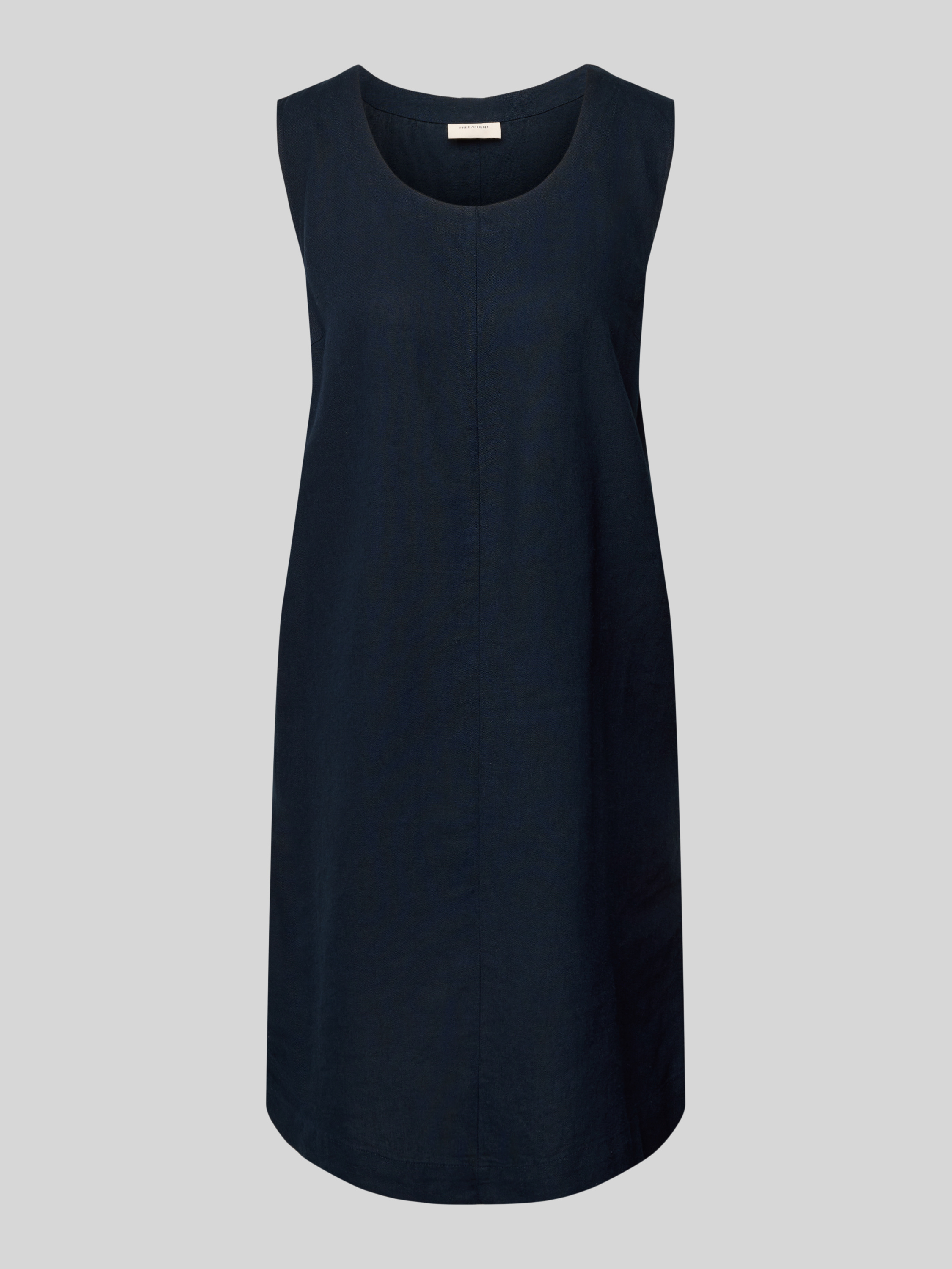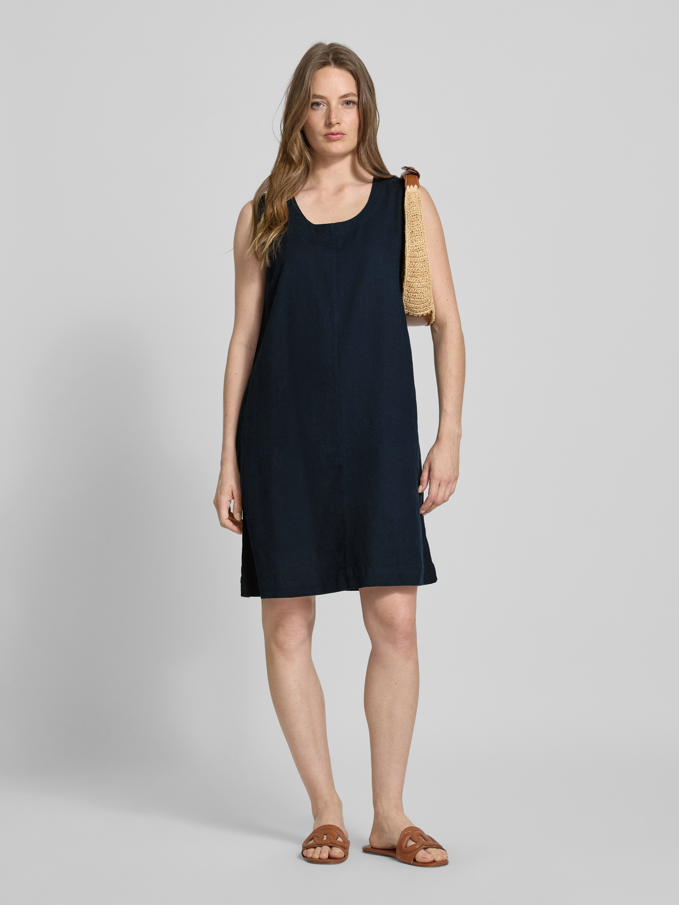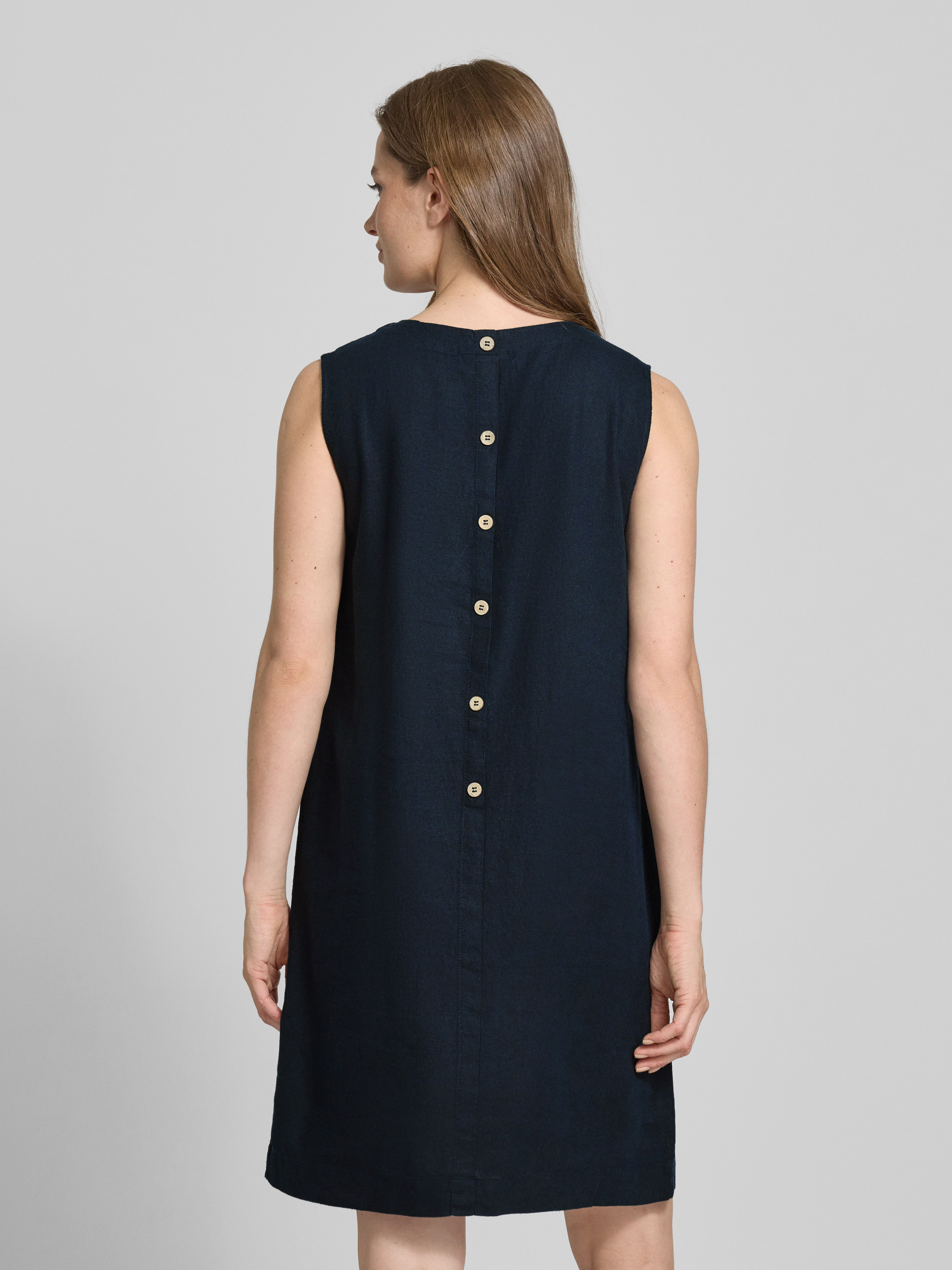 Knielange linnen jurk met ronde hals, model 'LAVA' in marineblauw