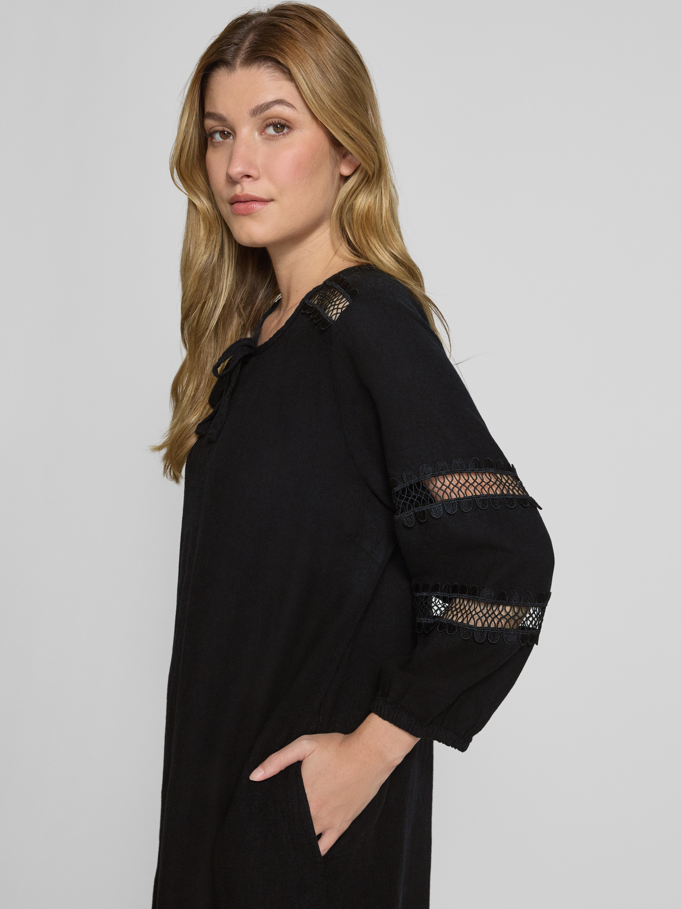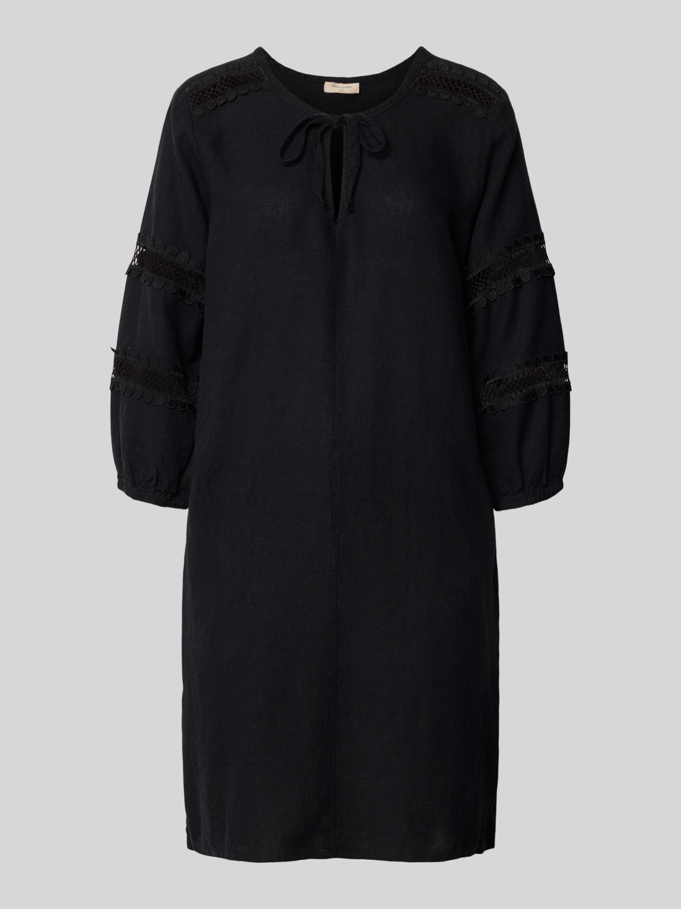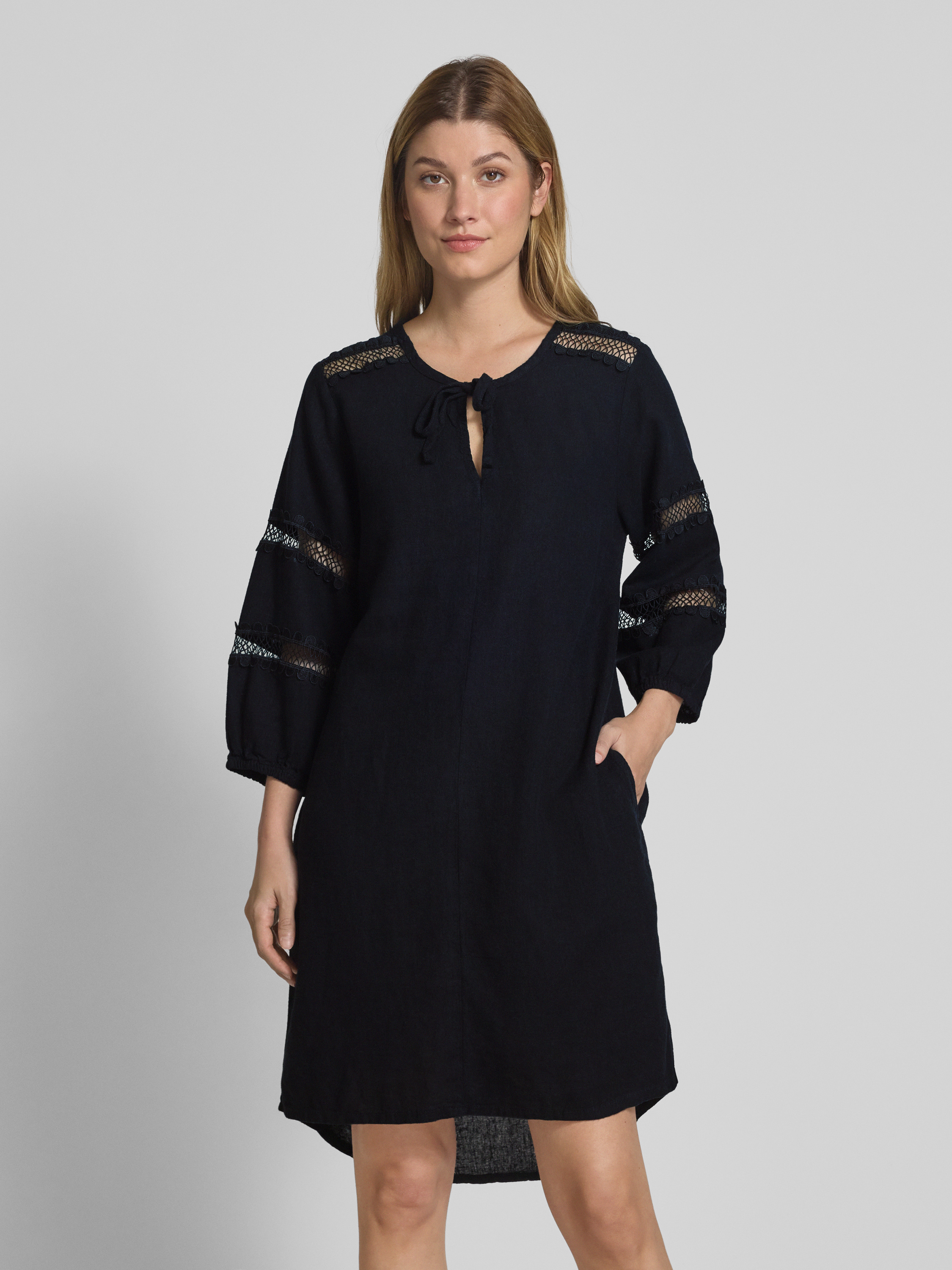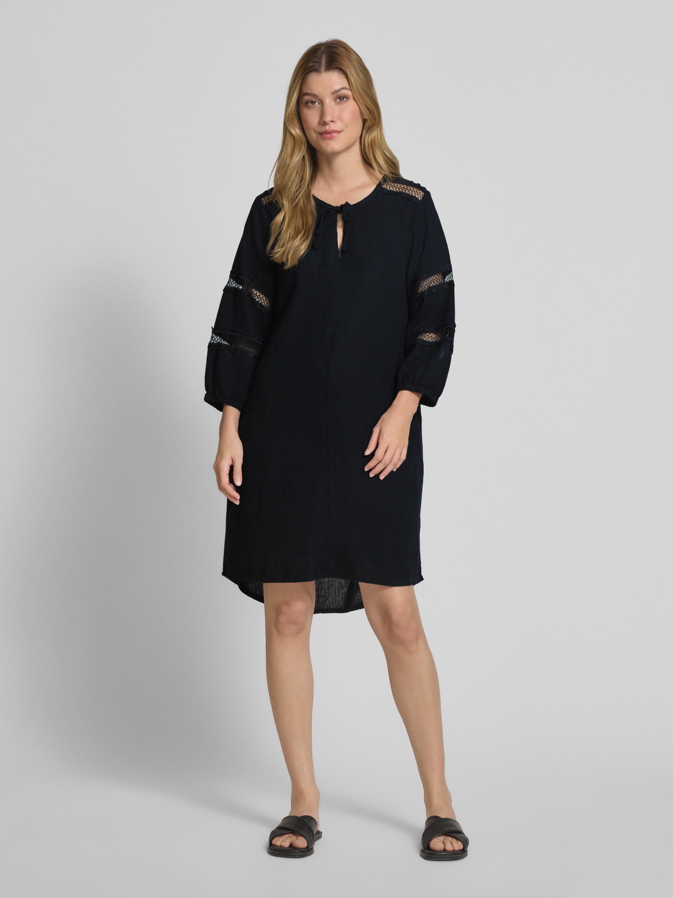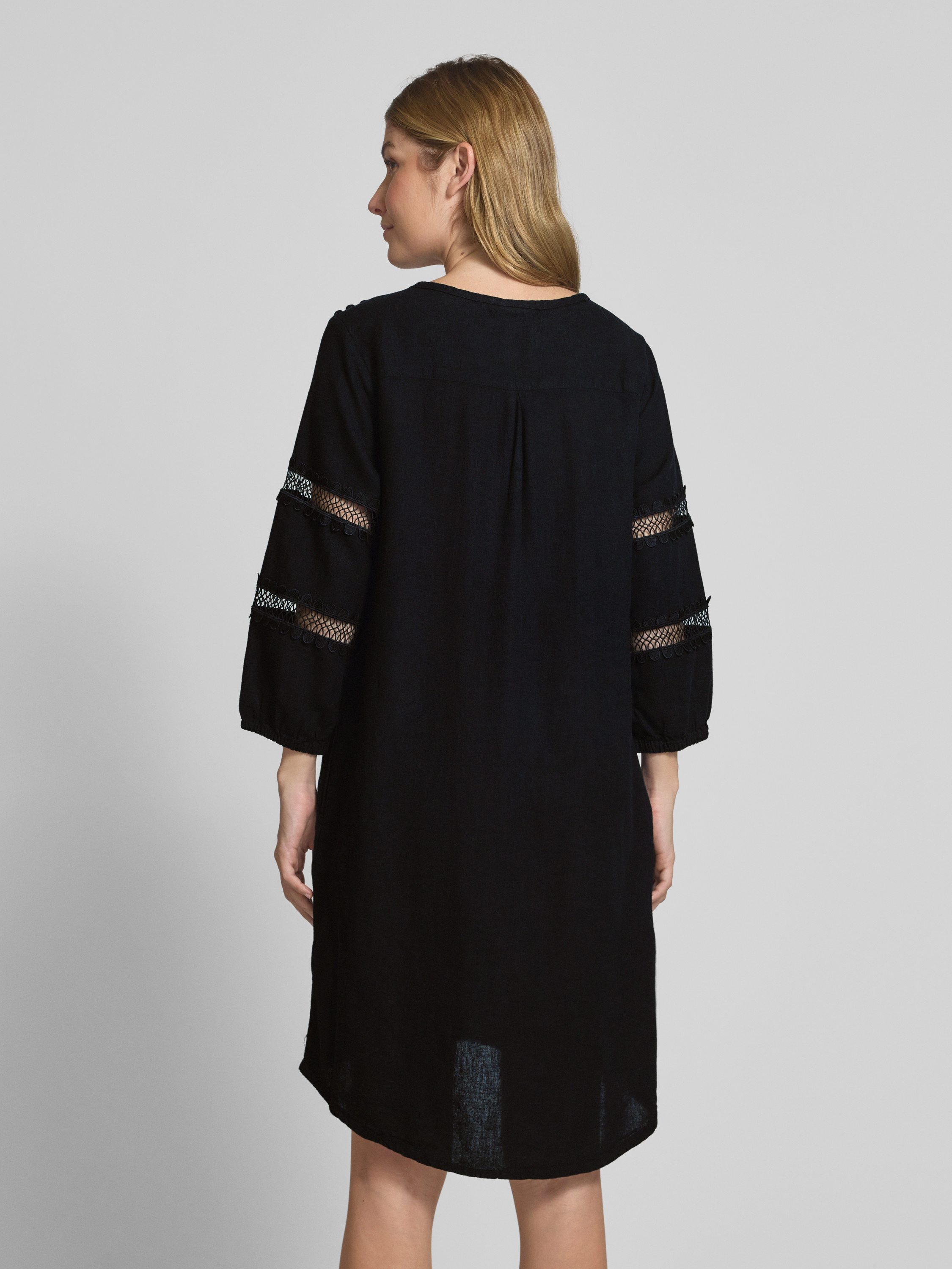 Knielange linnen jurk van een mix van linnen en viscose, model 'Laluna' in zwart