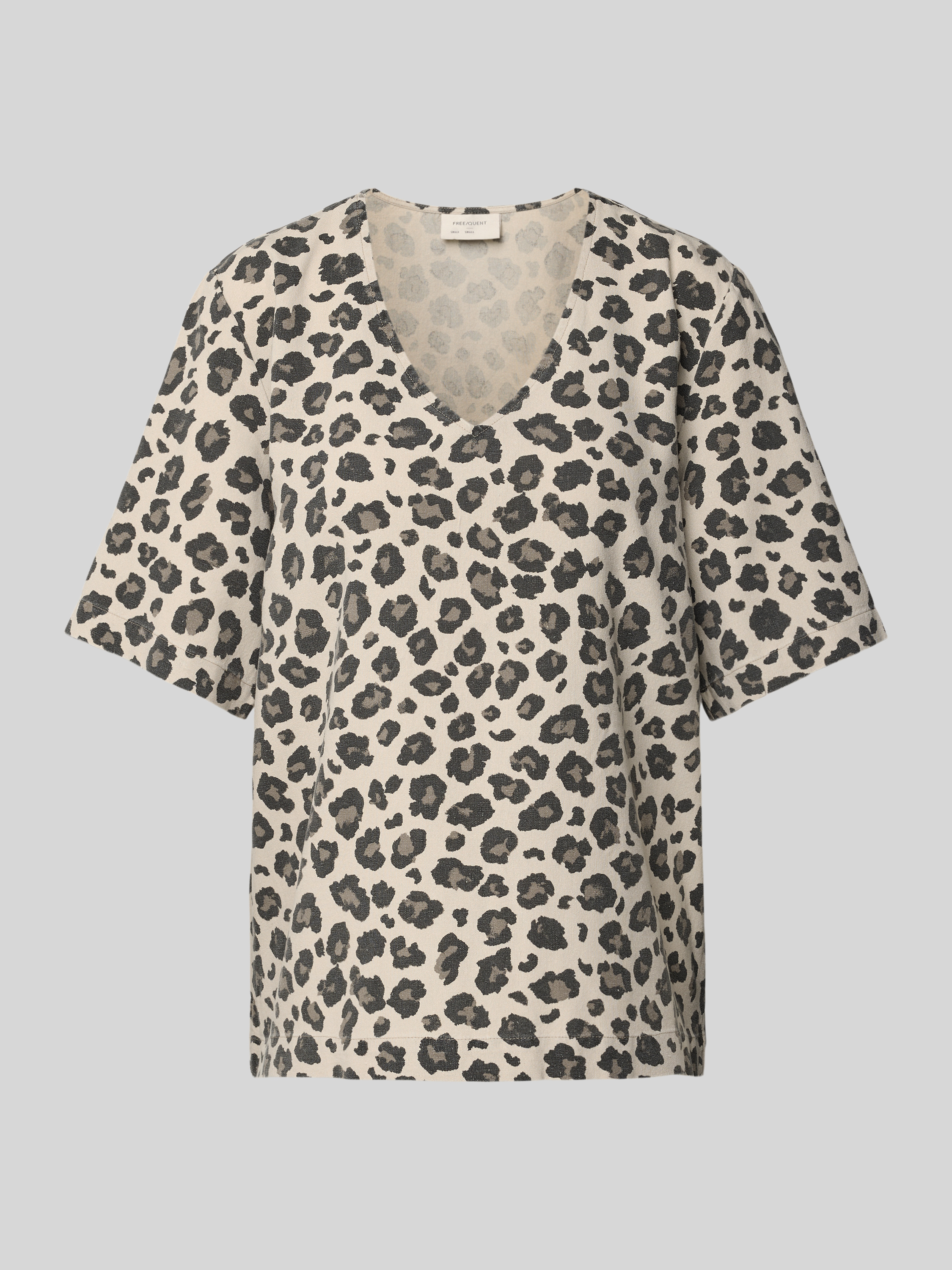 Regular fit blouseshirt met V-hals, model 'Lavisco' in beige
