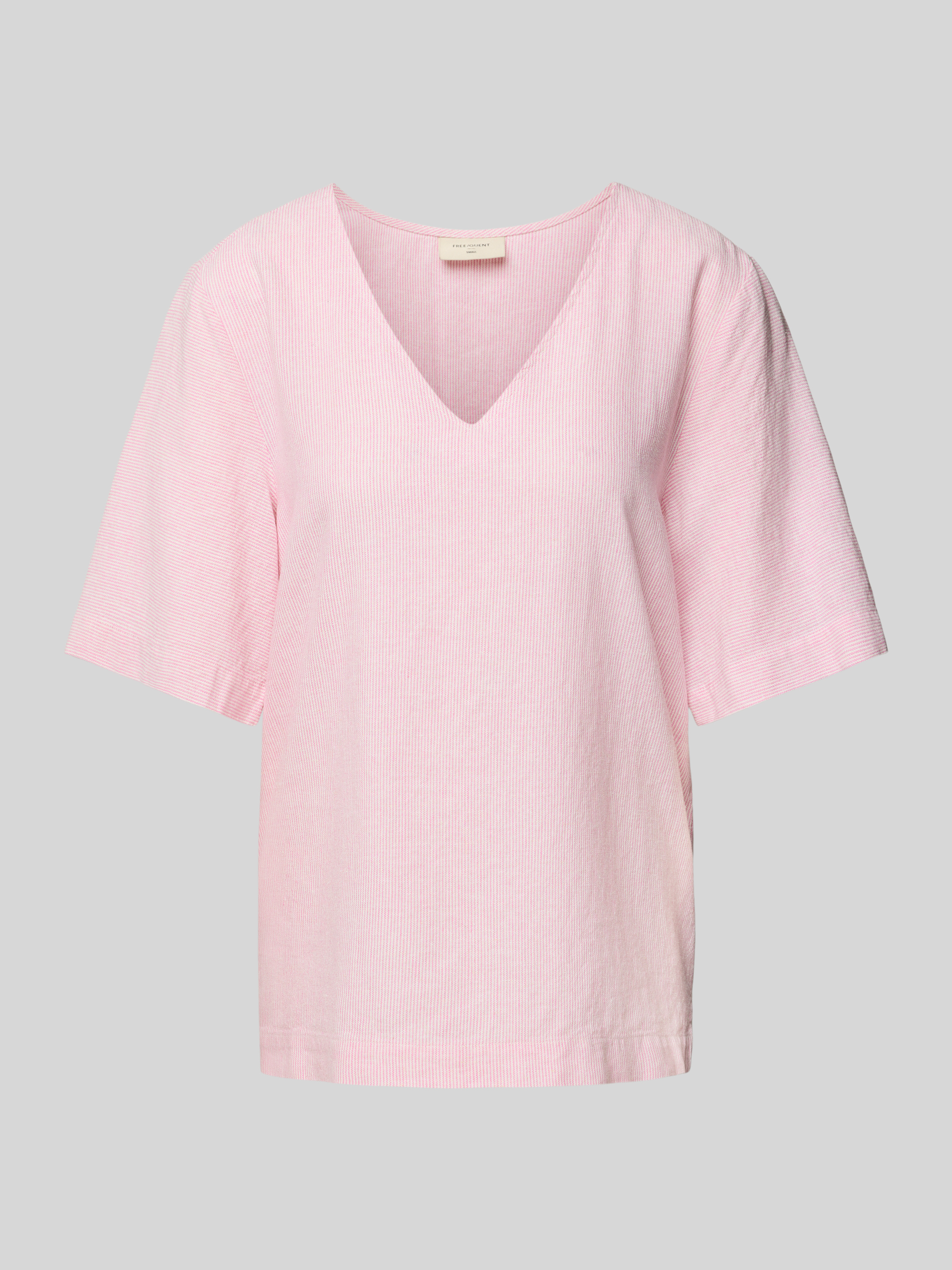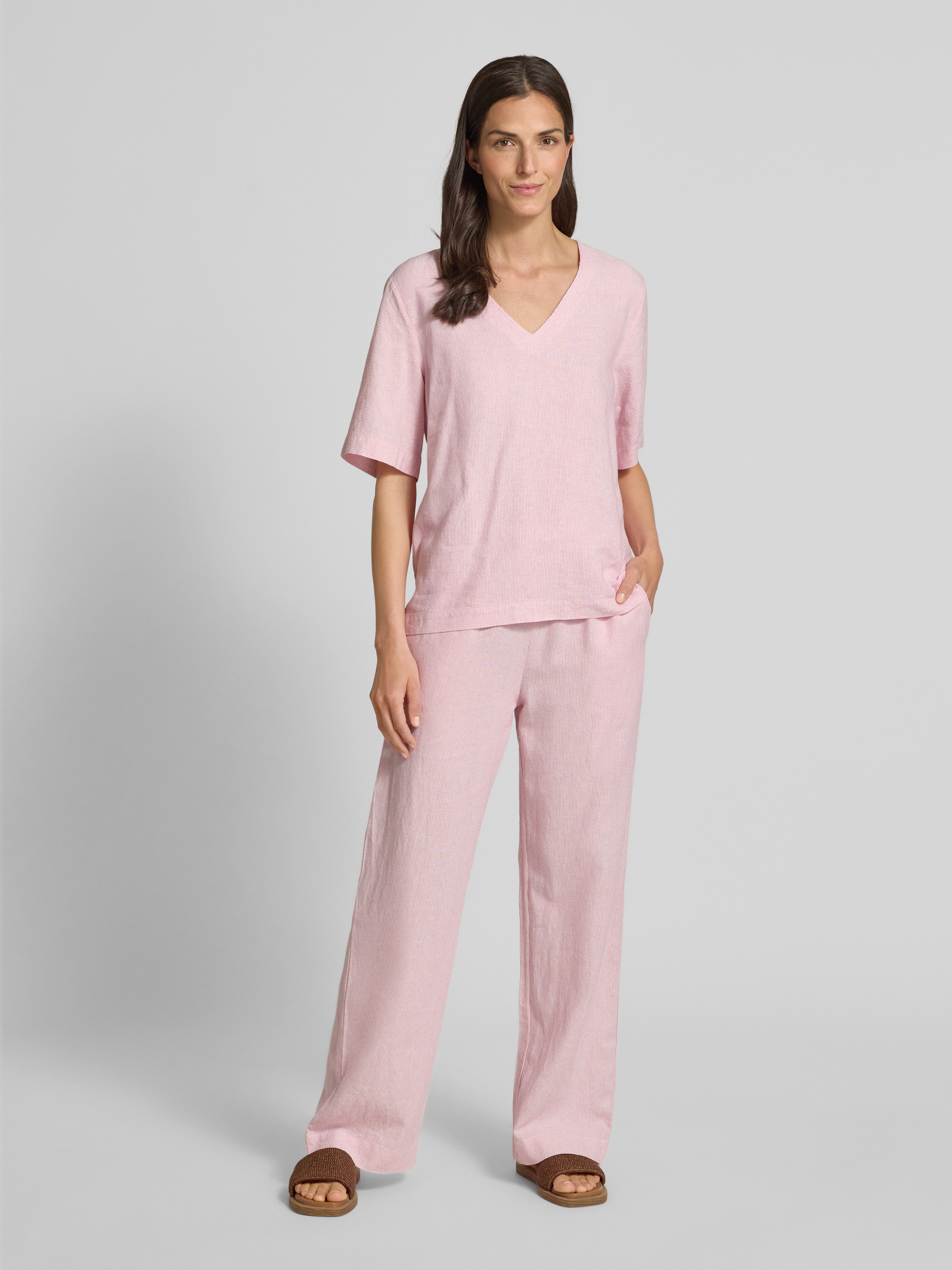 Regular fit linnen blouse met V-hals, model 'Lava' in felroze