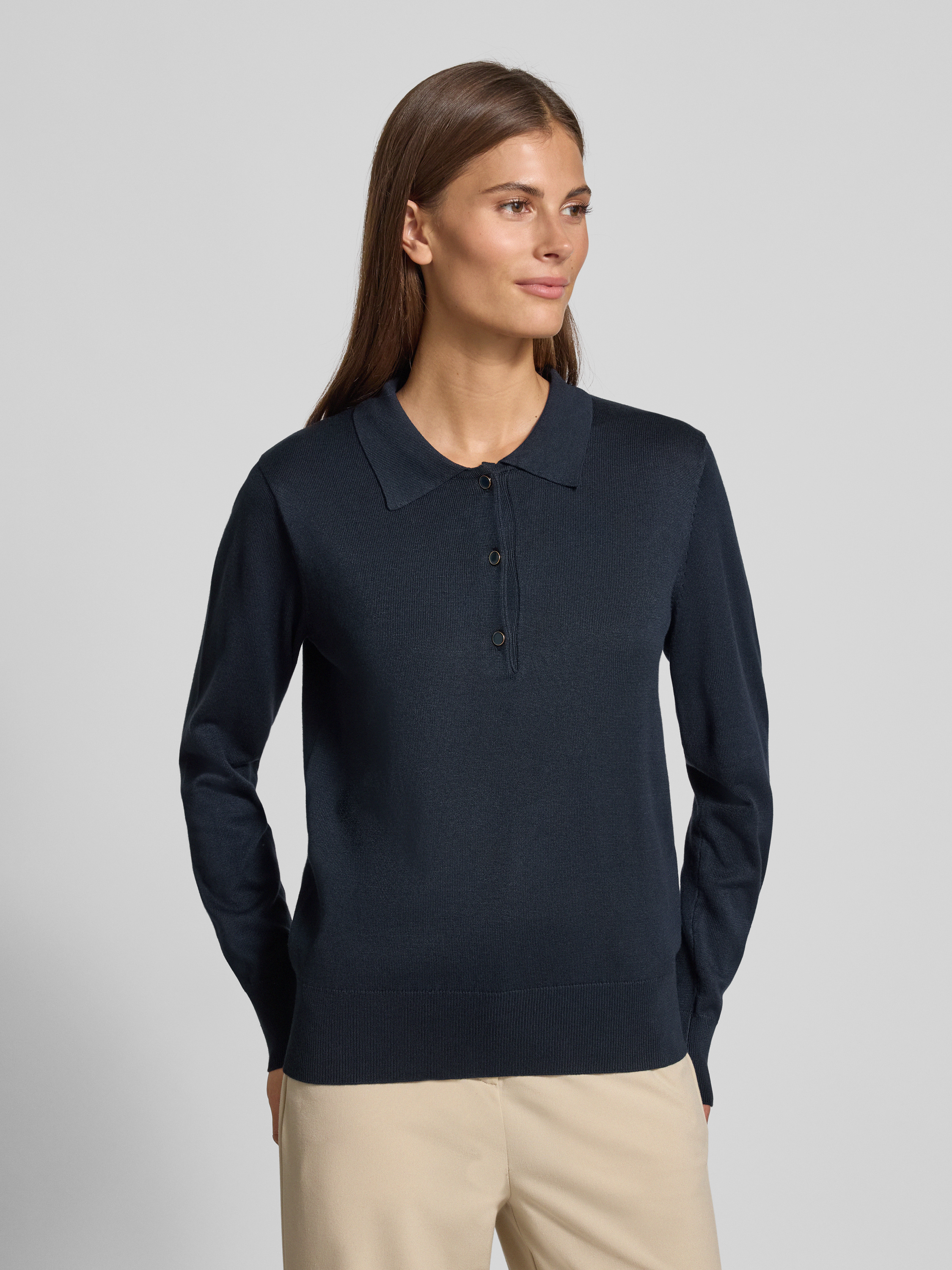 Regular fit shirt met lange mouwen van viscosemix, model 'Katie' in marineblauw