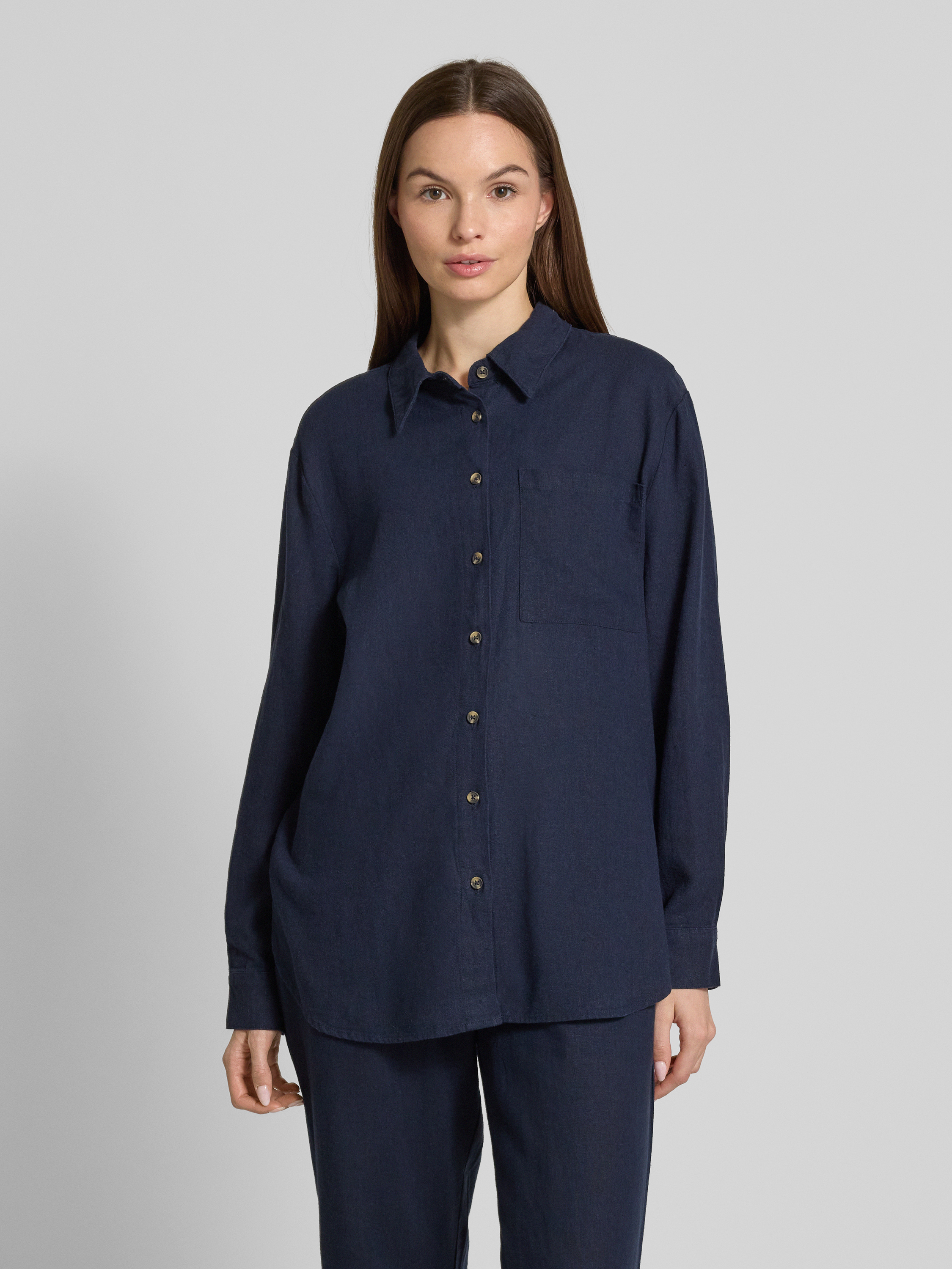 Relaxed fit linnen blouse met borstzak, model 'Lava' in marineblauw