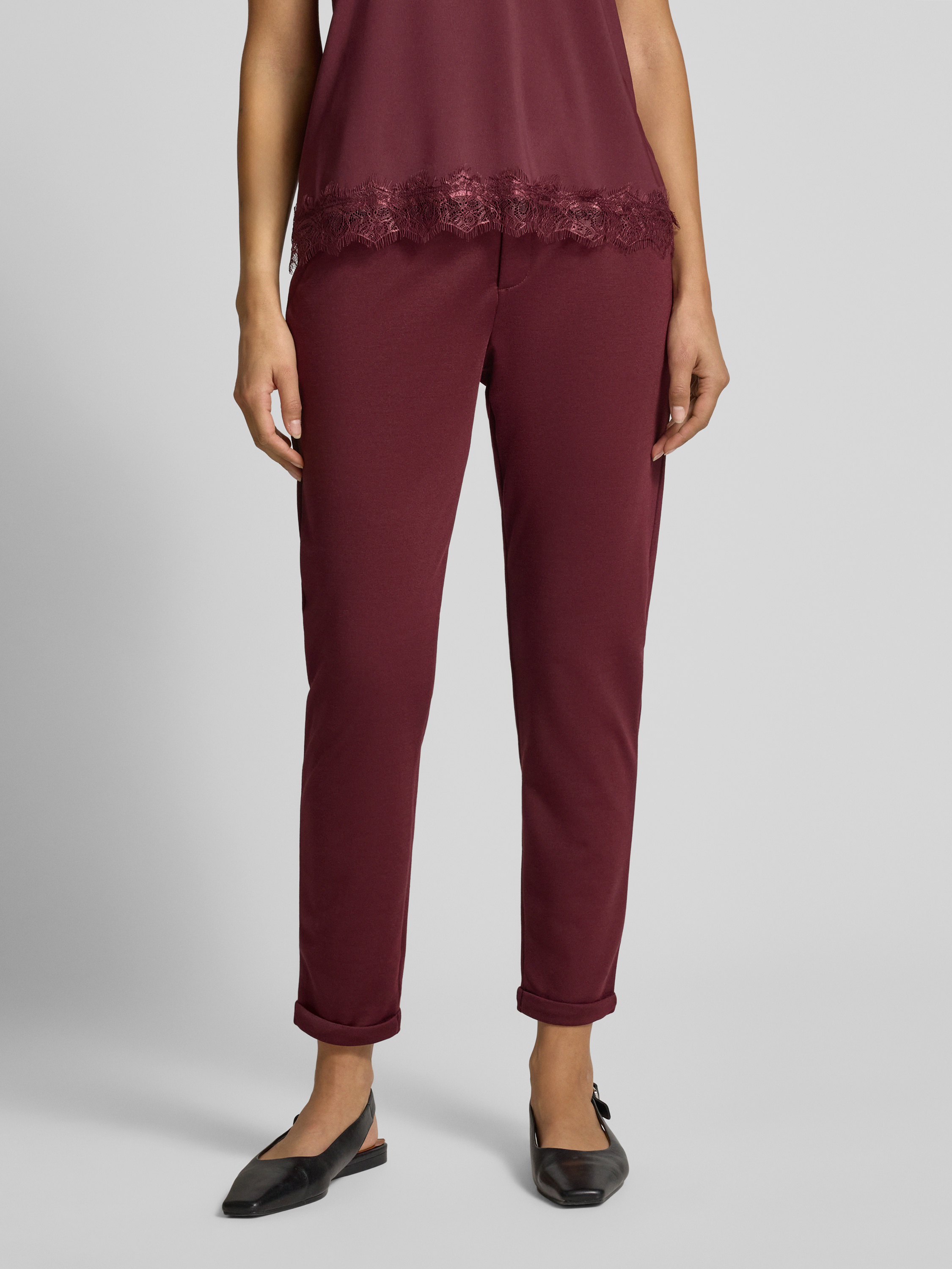 Slim fit stoffen broek met vaste boorden, model 'Nanni' in bordeaux