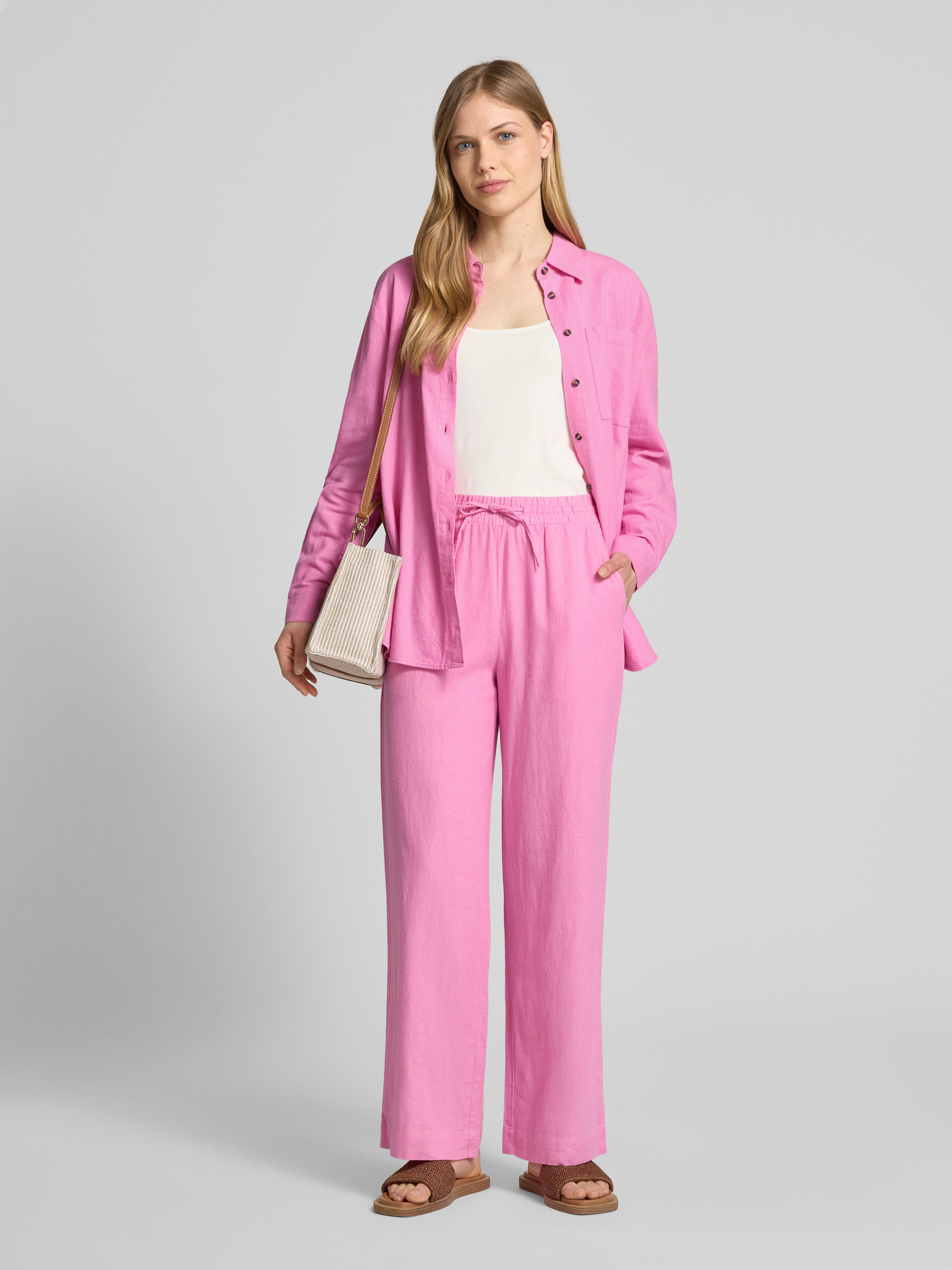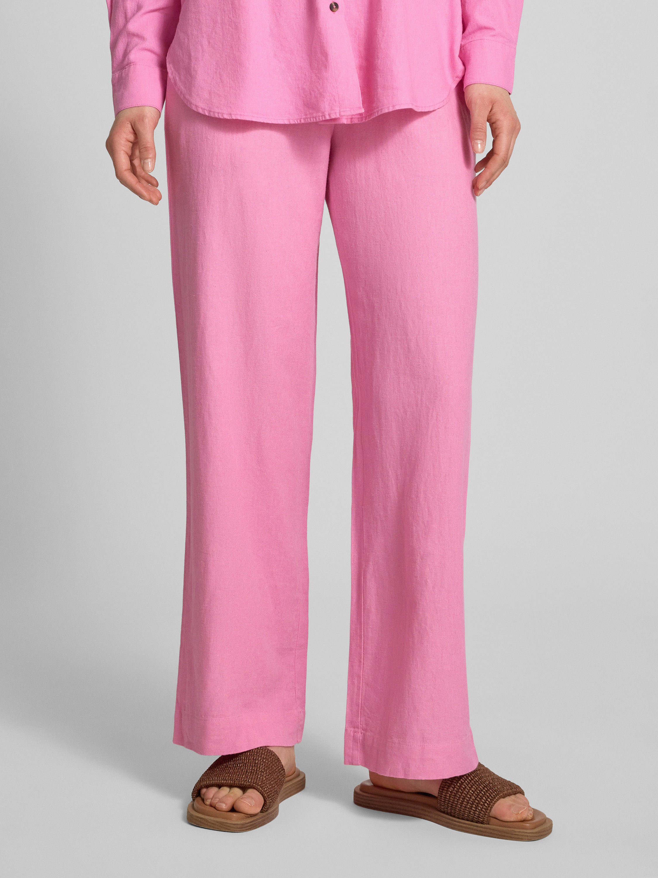 Straight leg linnen broek met steekzakken, model 'Lavea' in felroze