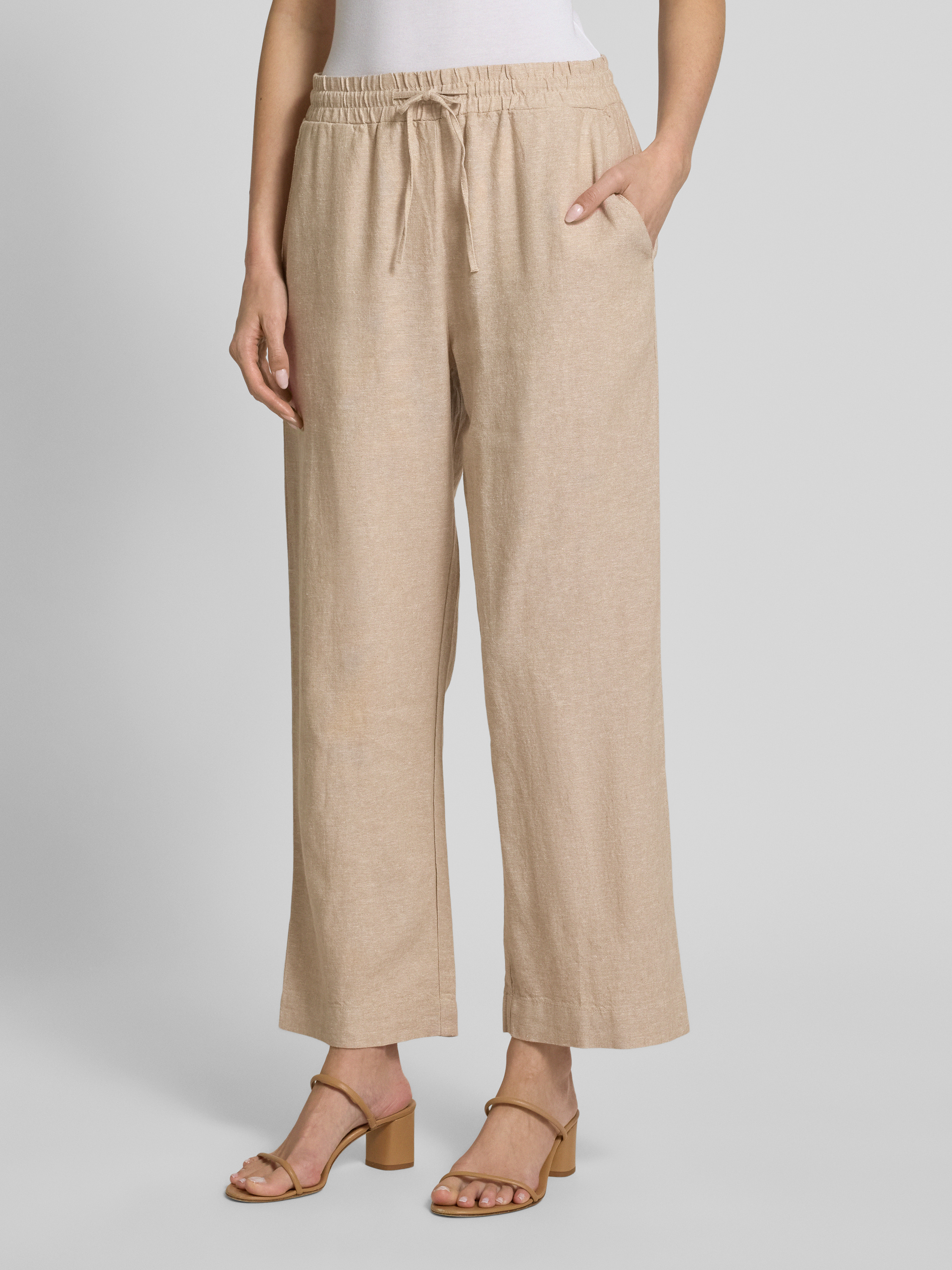 Straight leg linnen broek met steekzakken, model 'Lavea' in zand gemêleerd