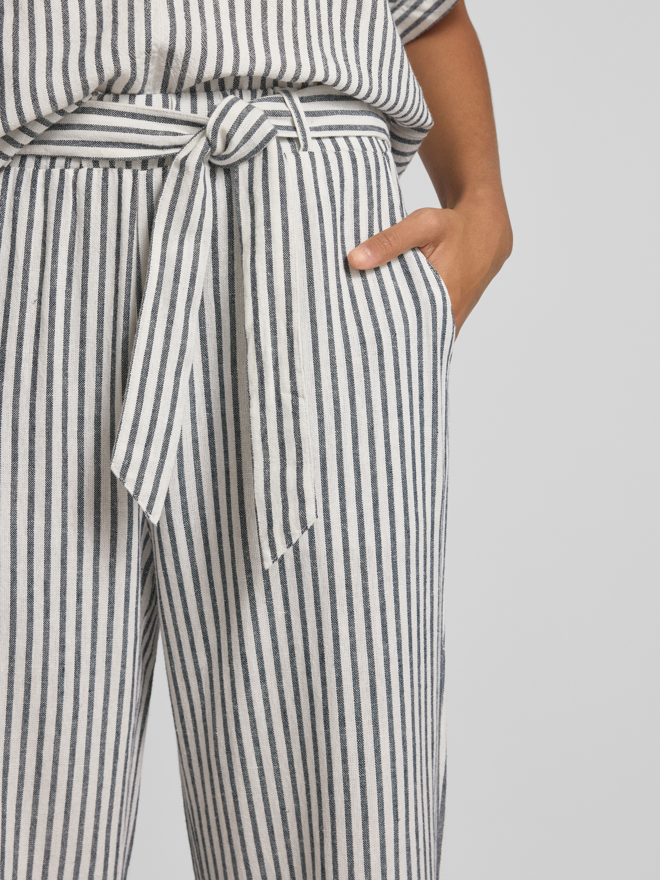 Straight leg stoffen broek met strikceintuur, model 'Lavisco' in donkerblauw