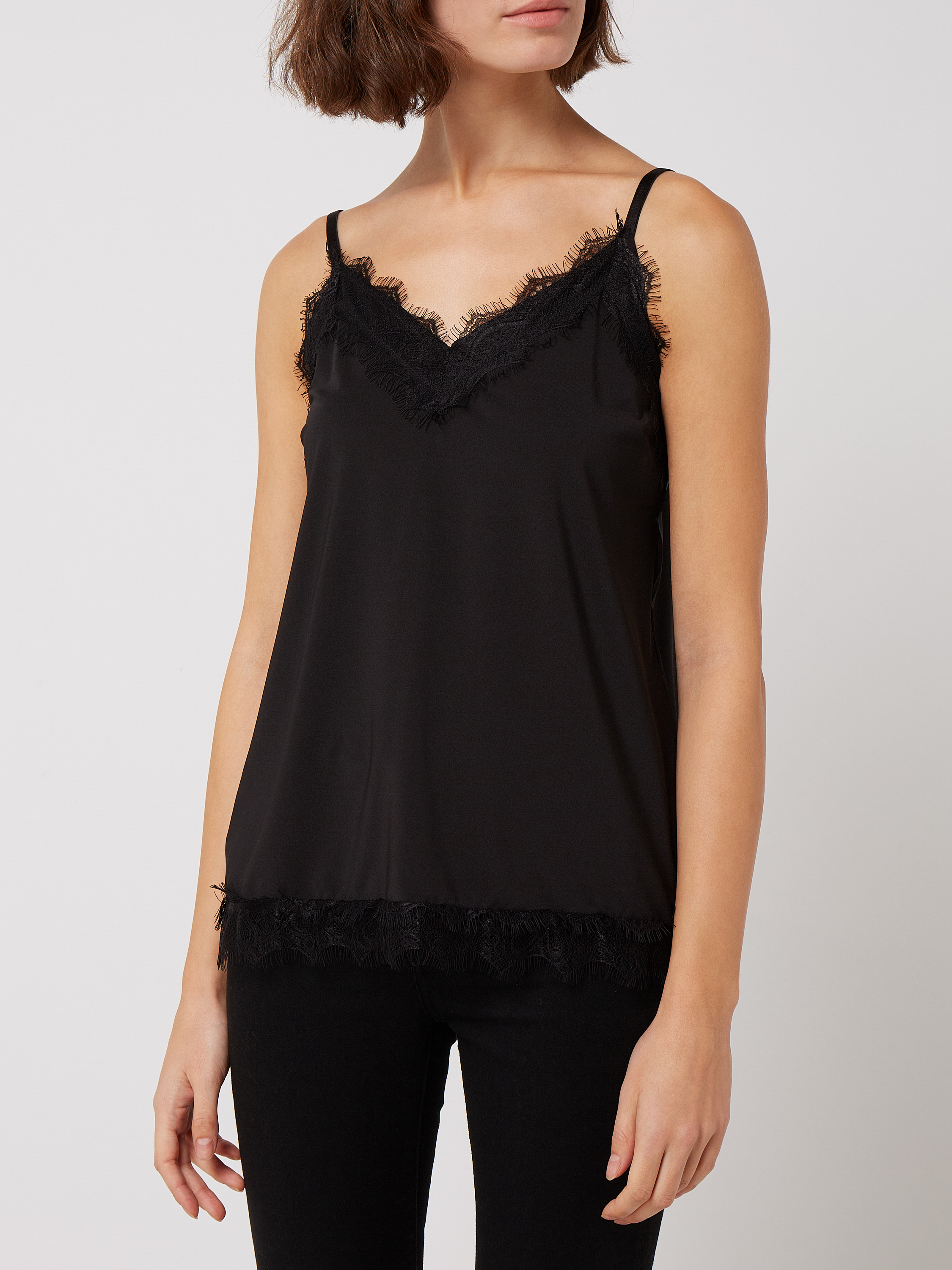 Top met bandjes en franjes, model 'BICCO' in zwart
