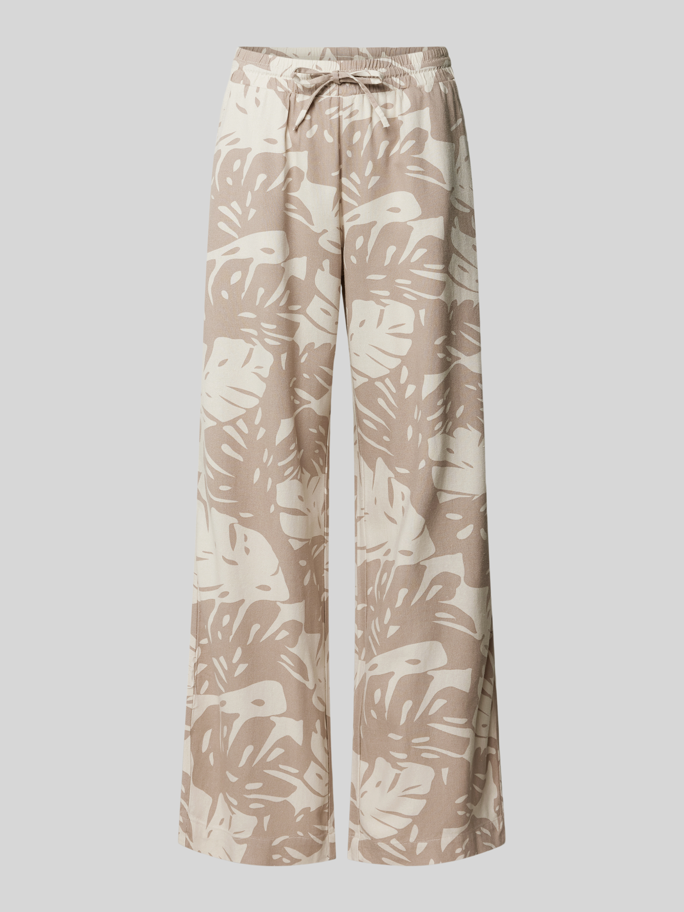 Wide leg stoffen broek met tunnelkoord, model 'Lavisco' in taupe