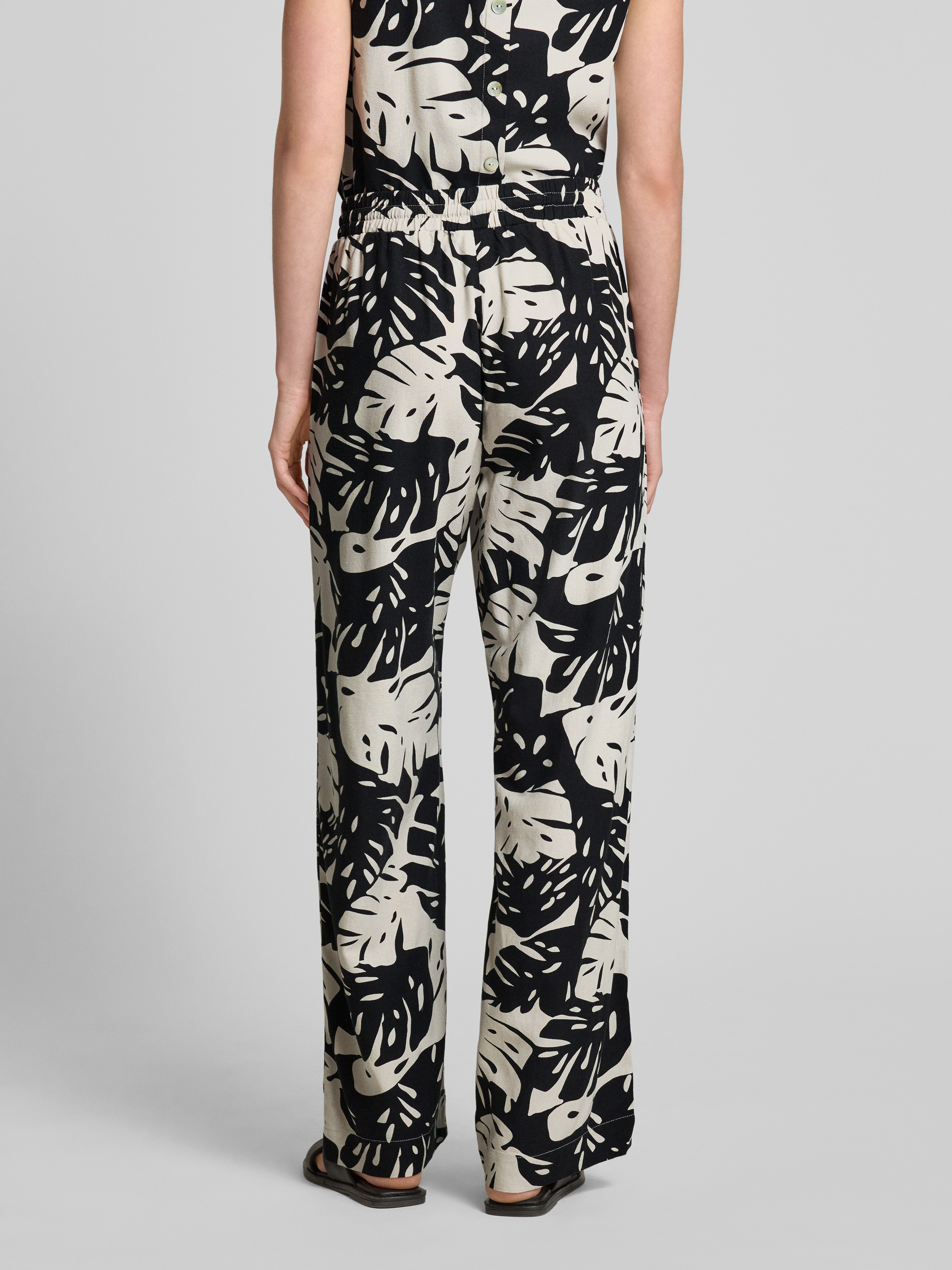 Wide leg stoffen broek met tunnelkoord, model 'Lavisco' in zwart