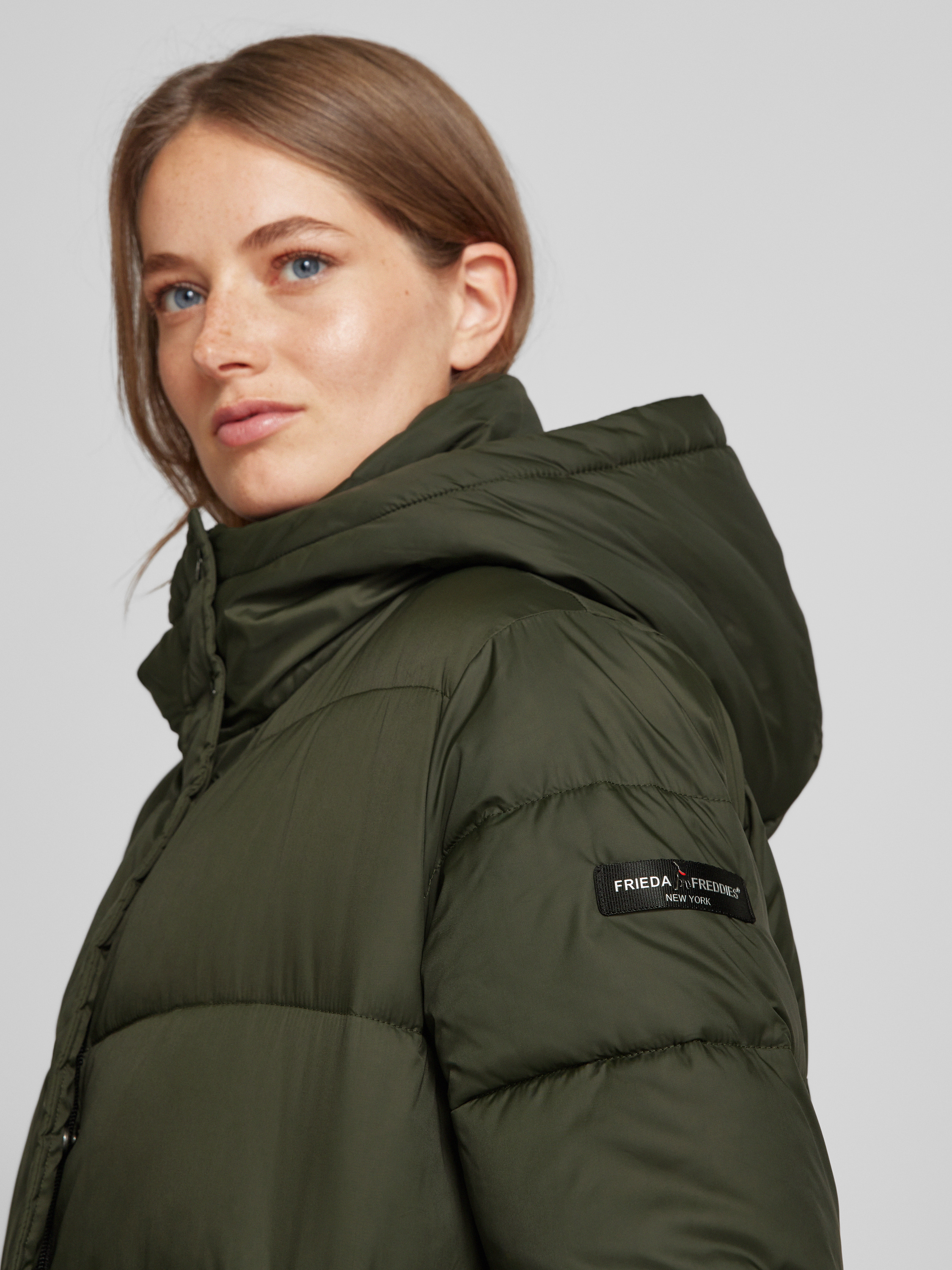 Frieda & FreddiesGewatteerde lange jas met ritszakken, model 'CLEVELAND' in olijfgroen