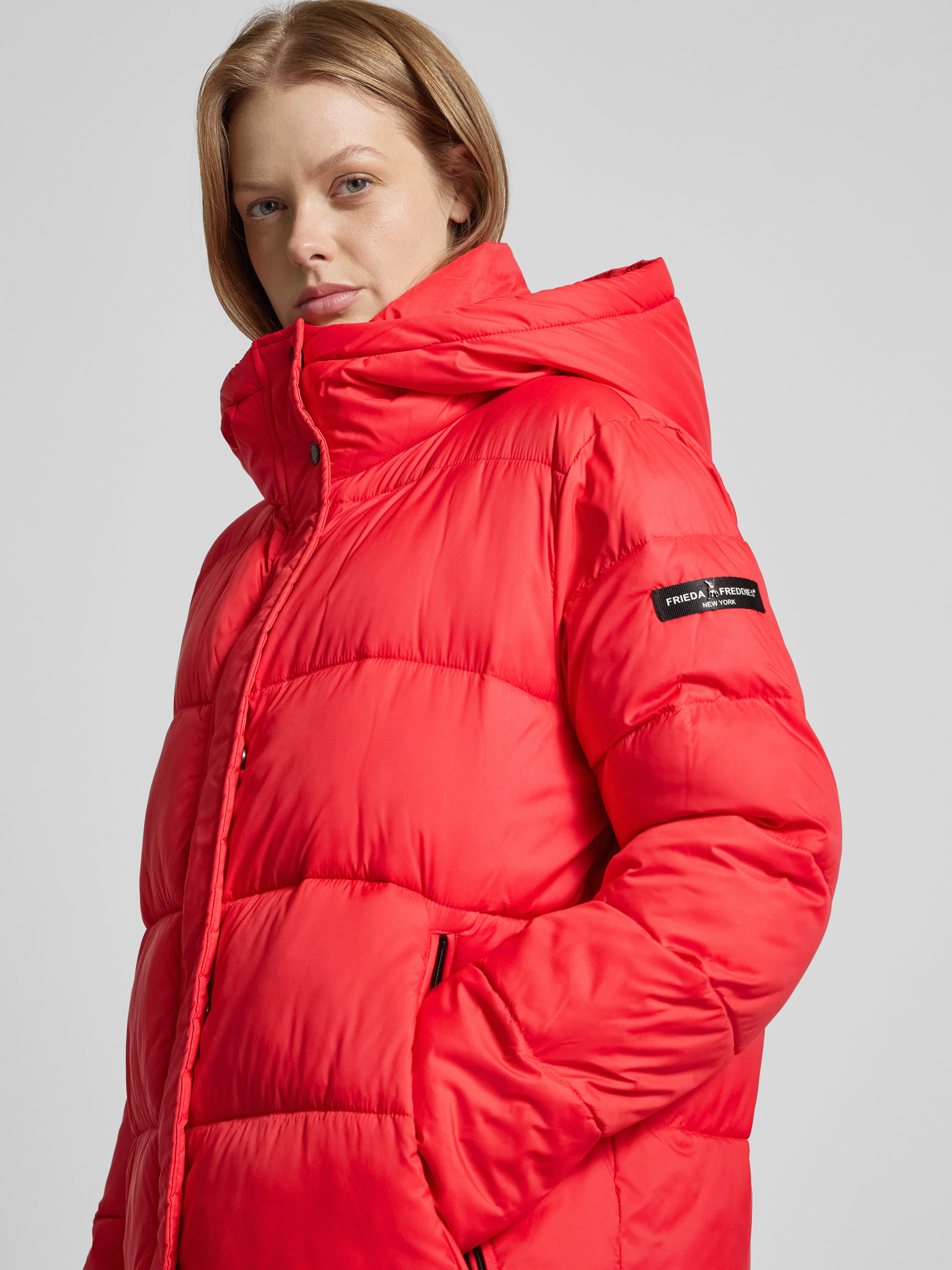 • Frieda & Freddies Gewatteerde lange jas met ritszakken, model 'CLEVELAND' Rood