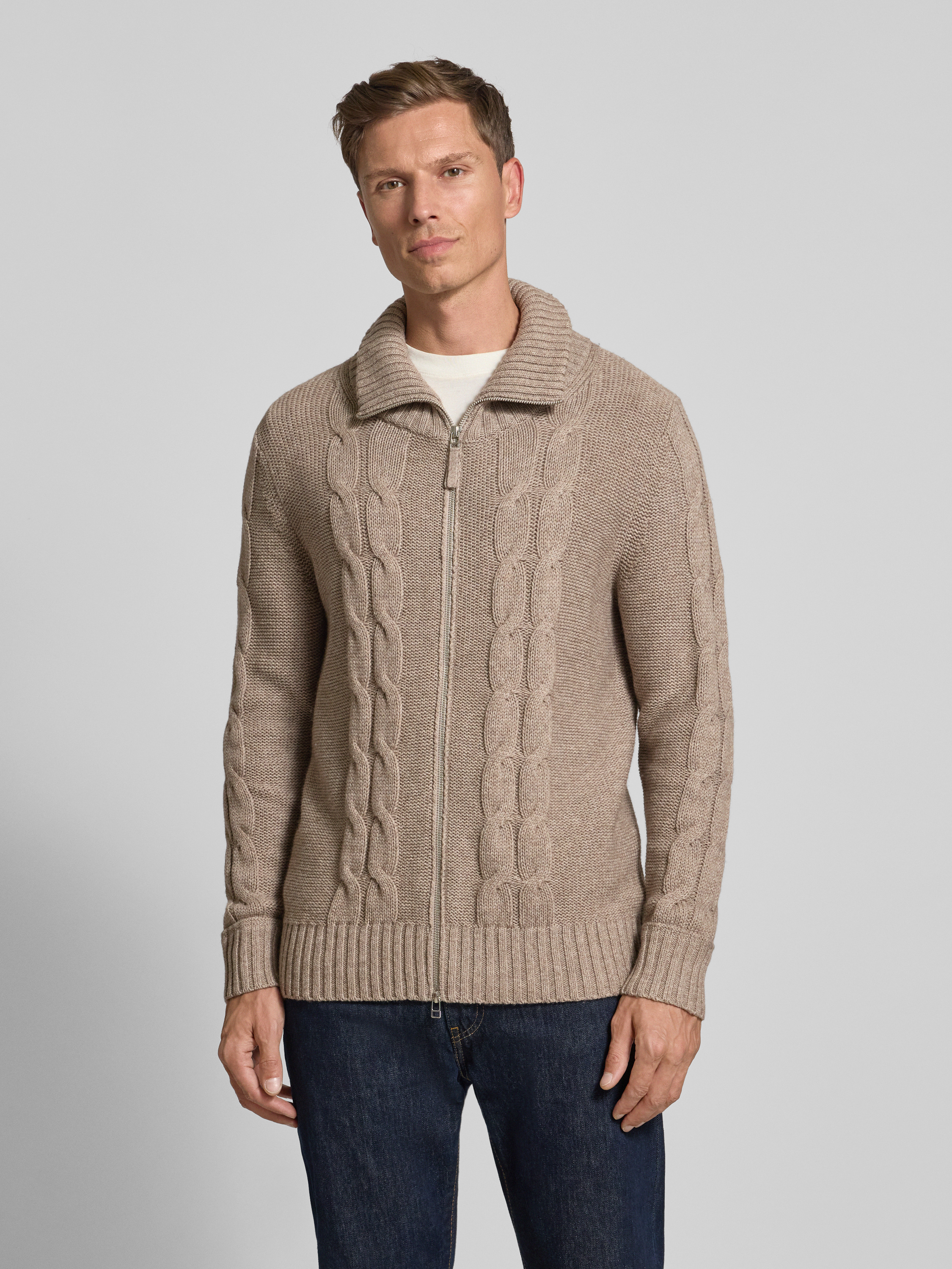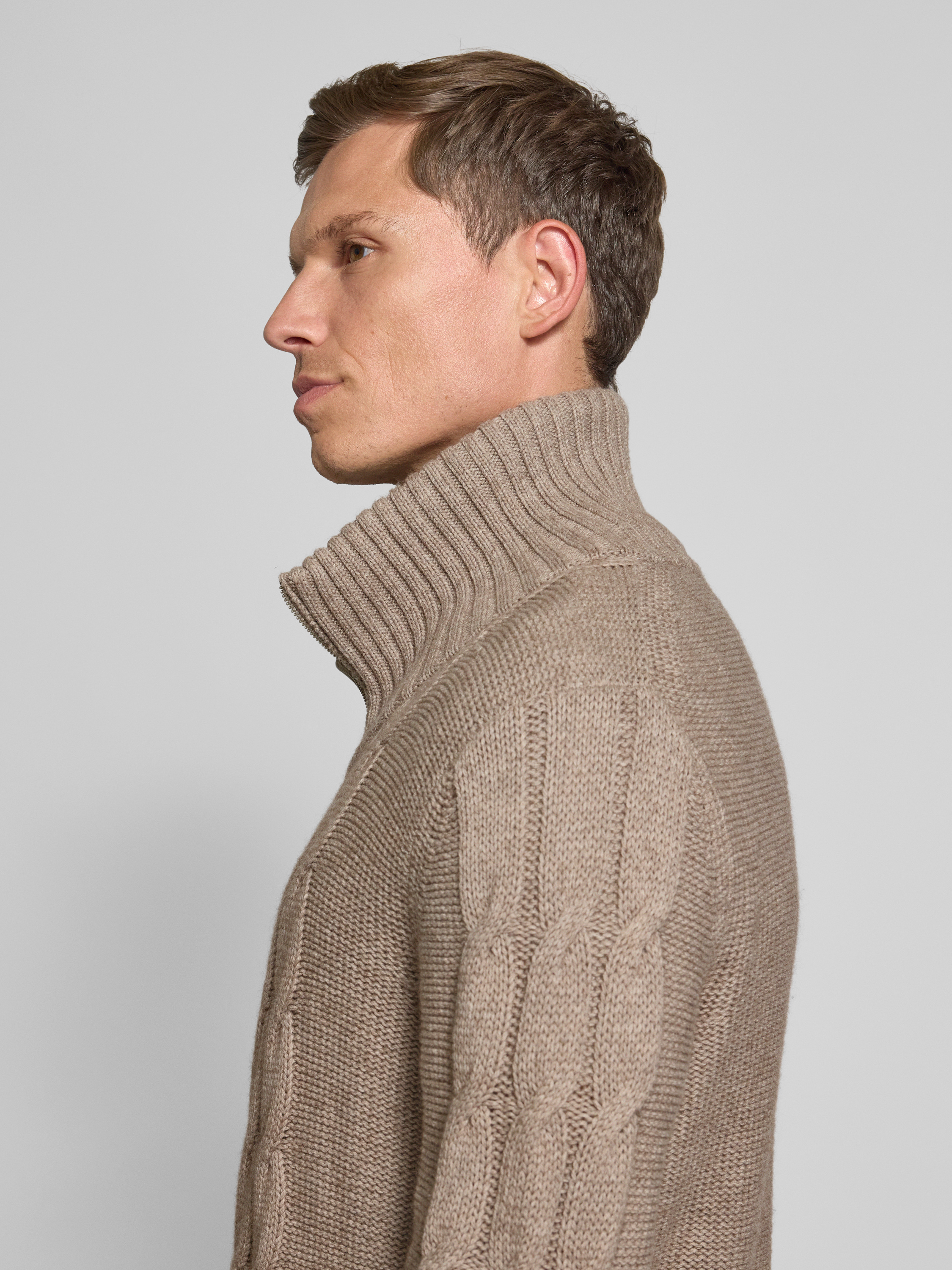 FTC-CashmereGebreid jack van mix van katoen en kasjmier in beige
