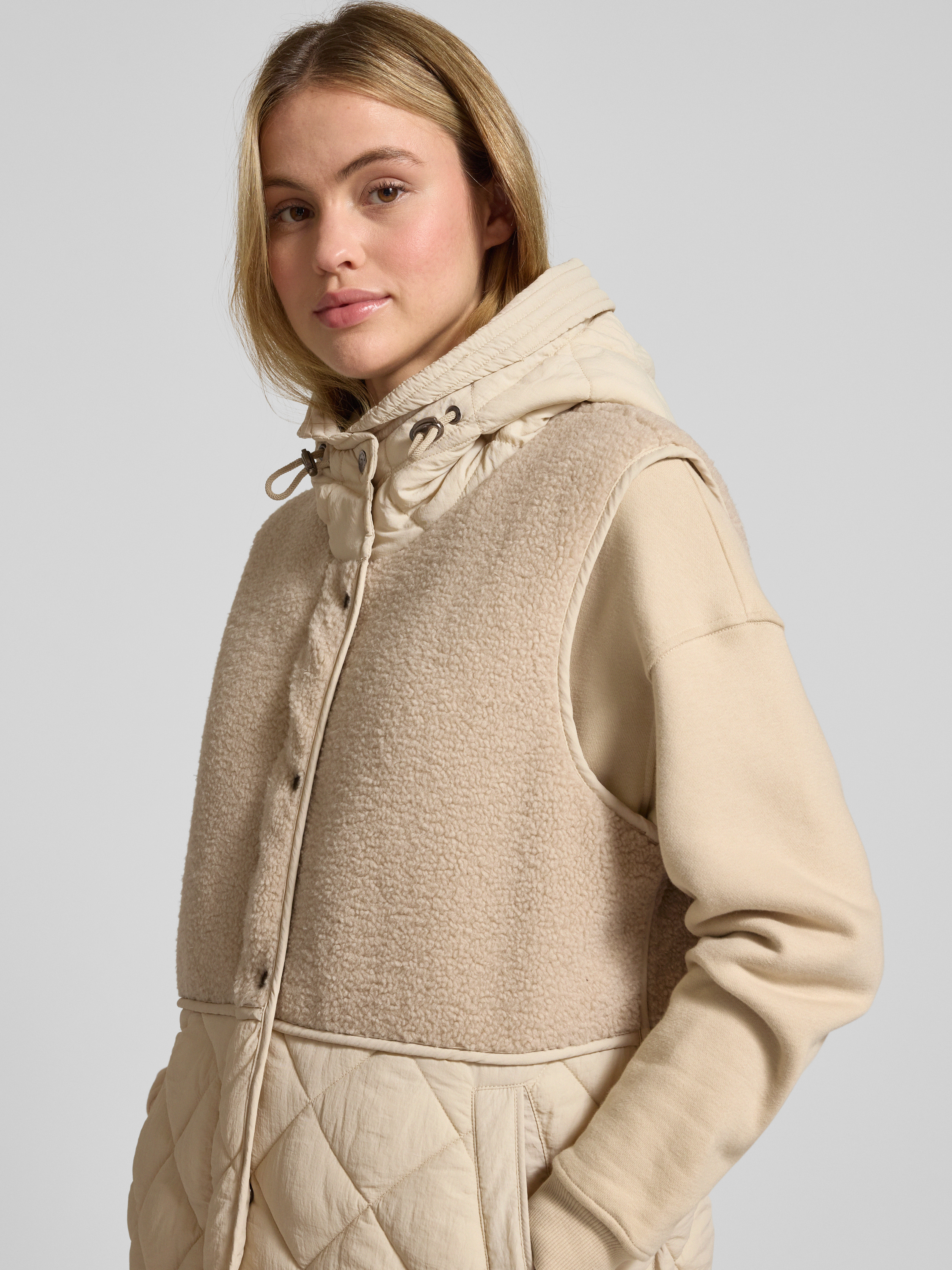 Fuchs SchmittFleecegilet met doorgestikte naden en steekzakken in ecru