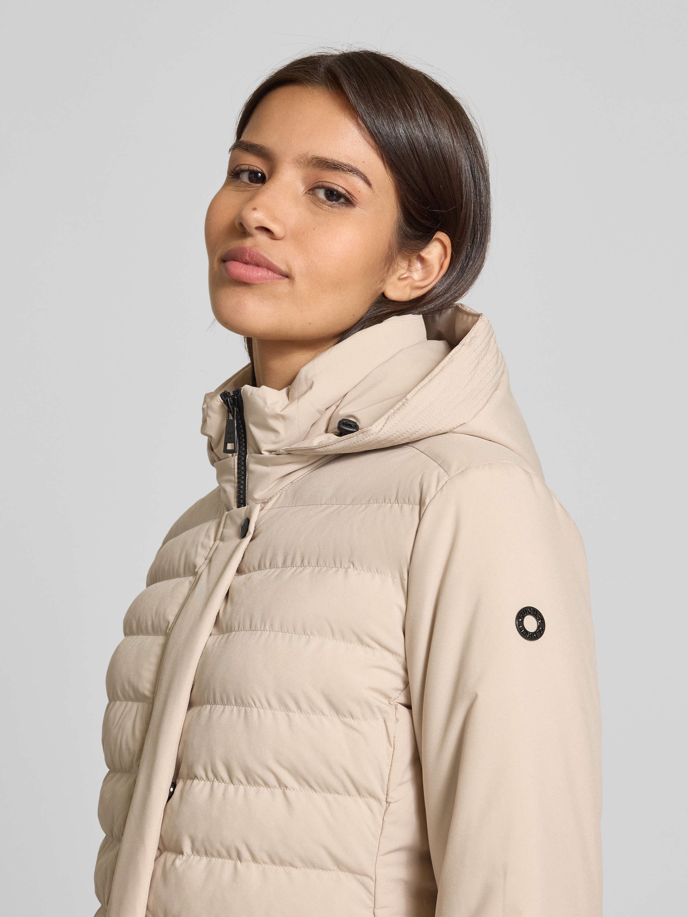 Fuchs SchmittGewatteerde lange jas met gevoerde opstaande kraag in zand