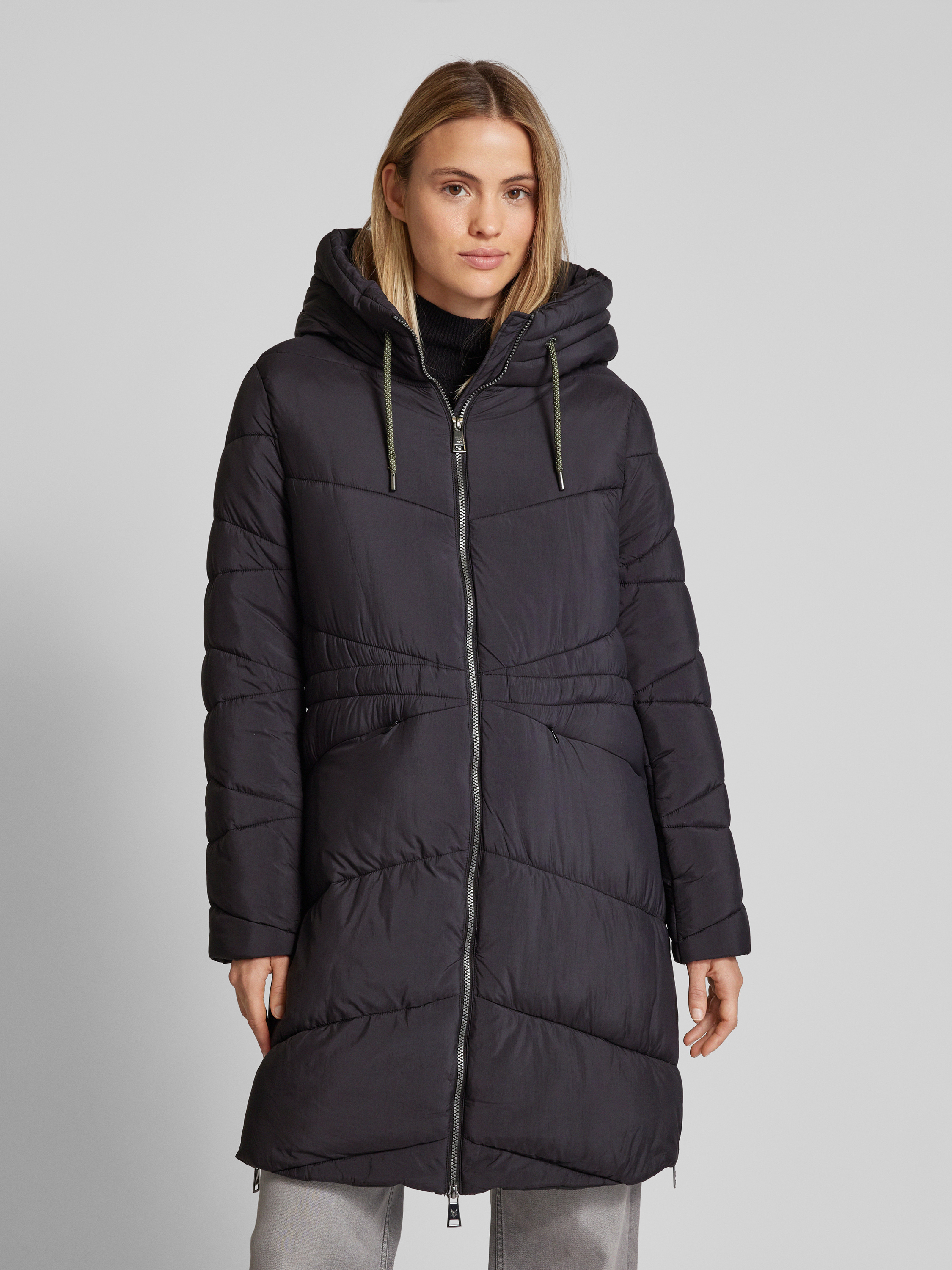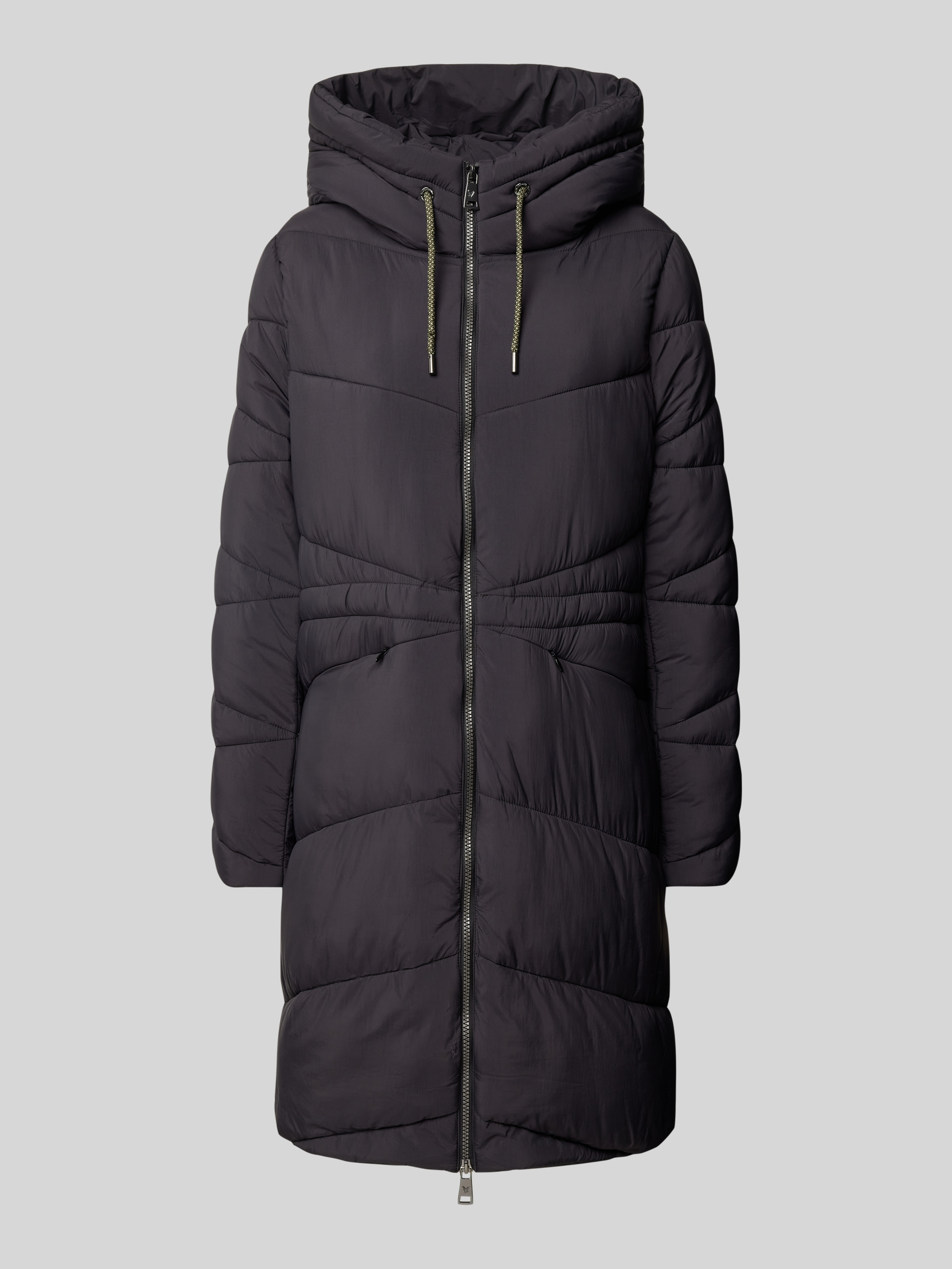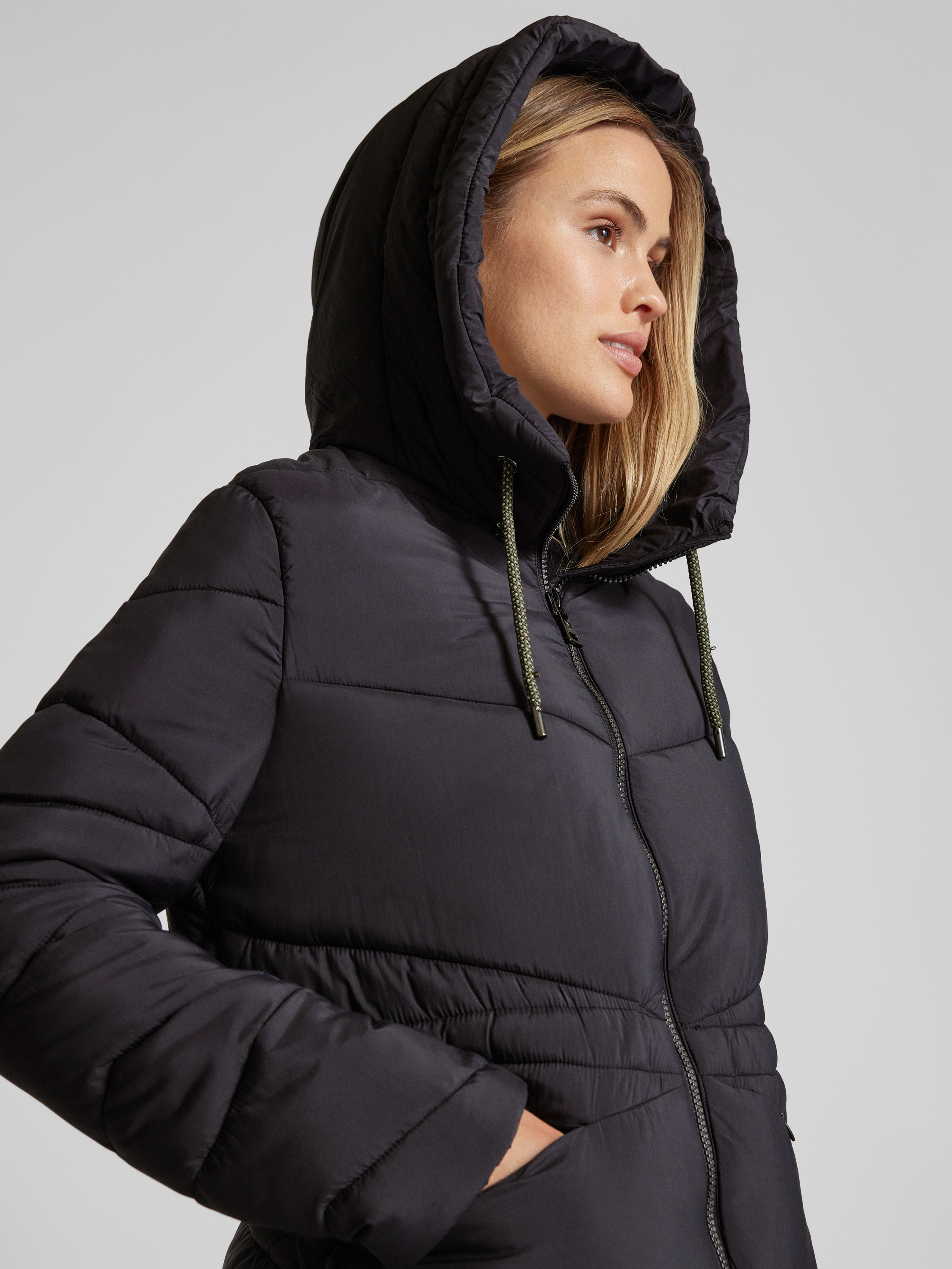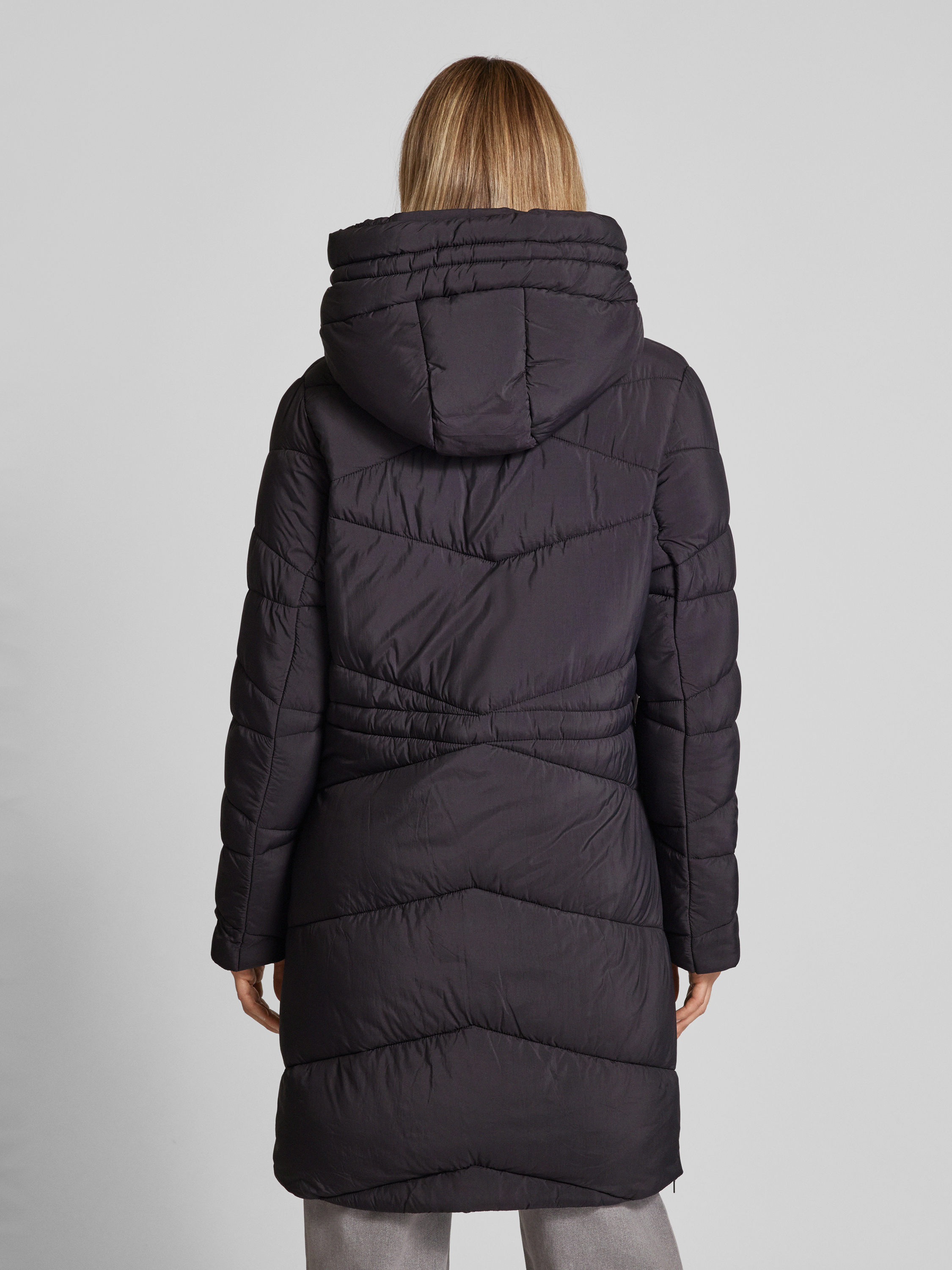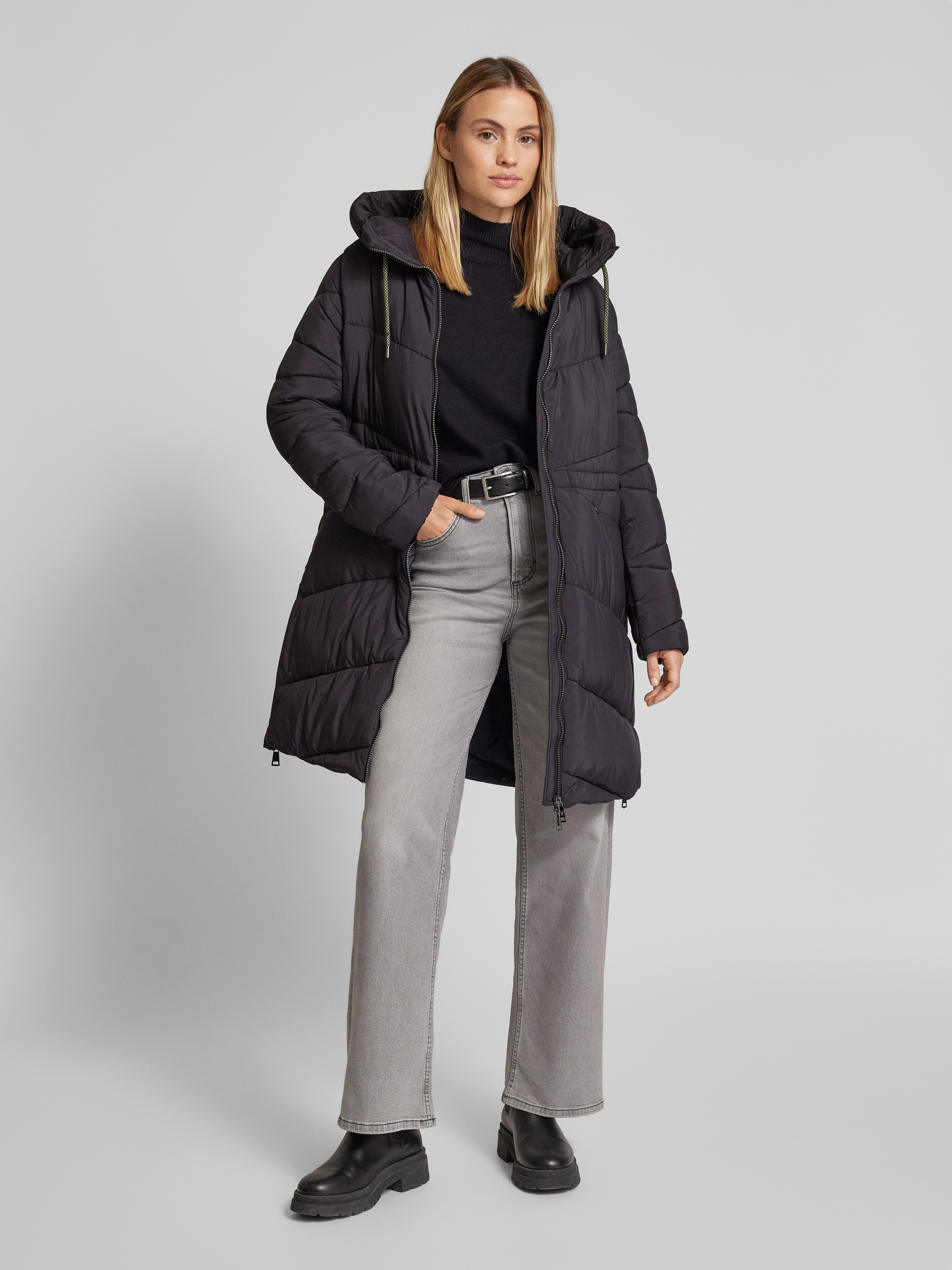 Lange gewatteerde jas met tweewegritssluiting in zwart