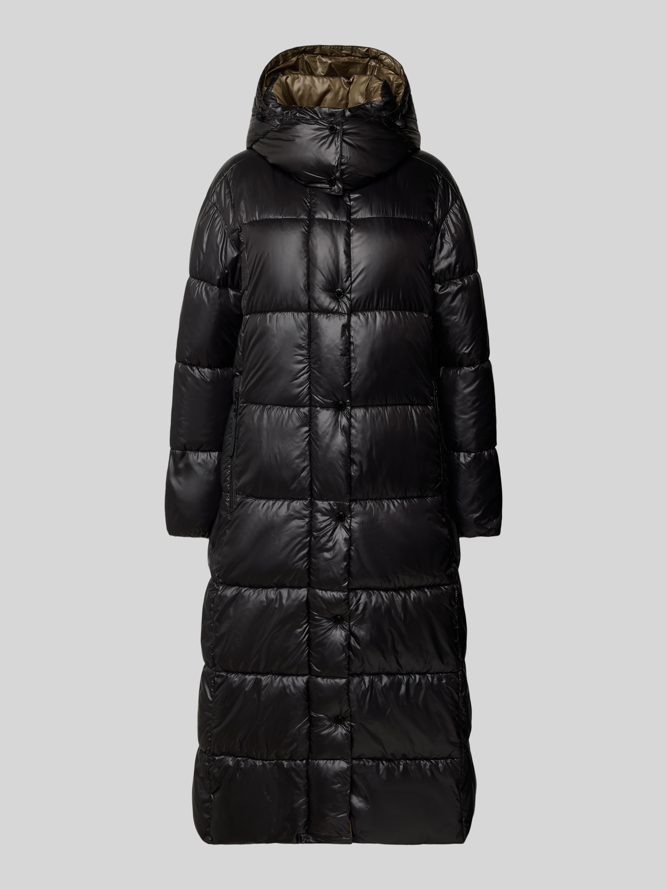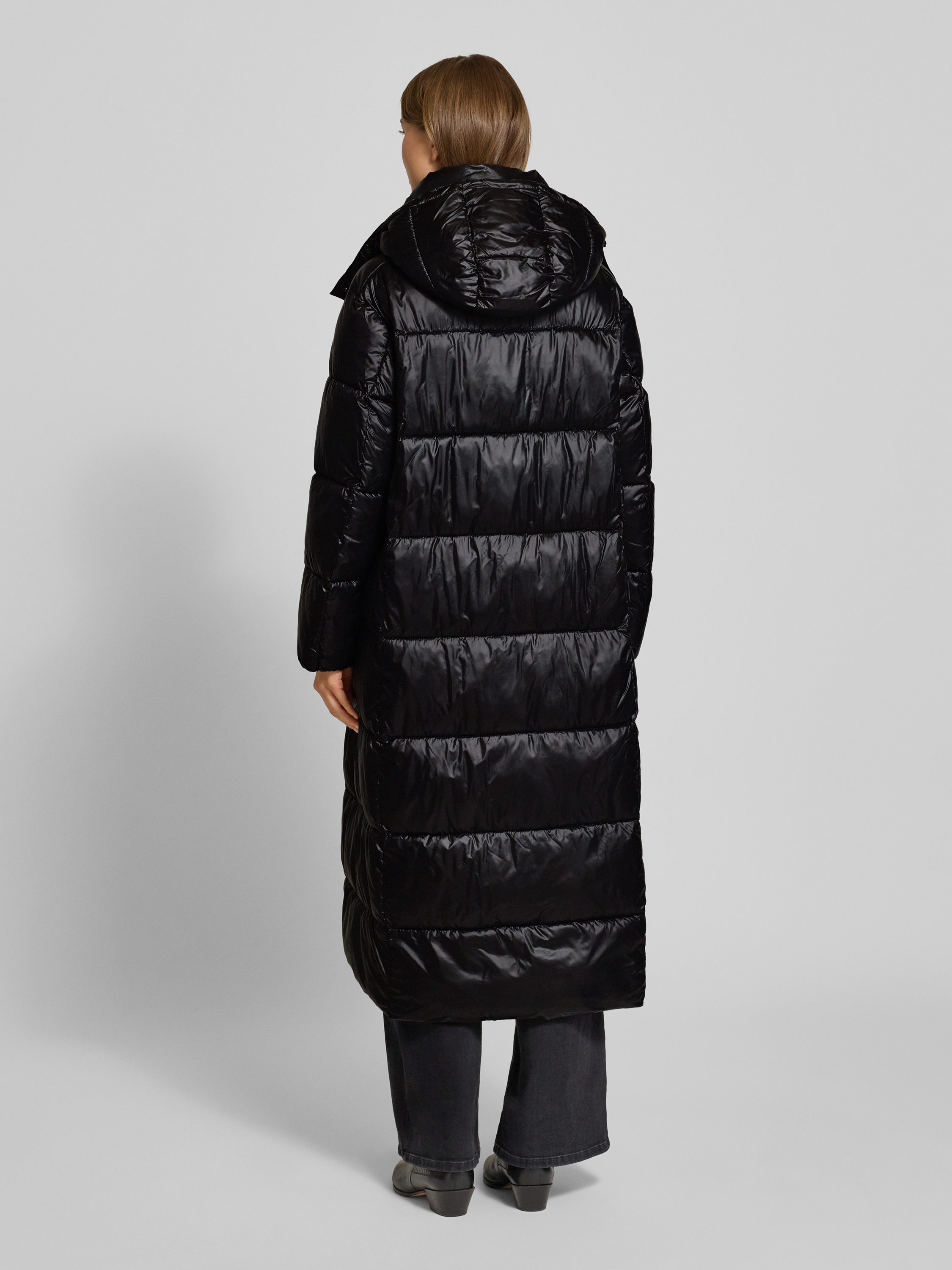 Regular fit gewatteerde lange jas met capuchon in zwart