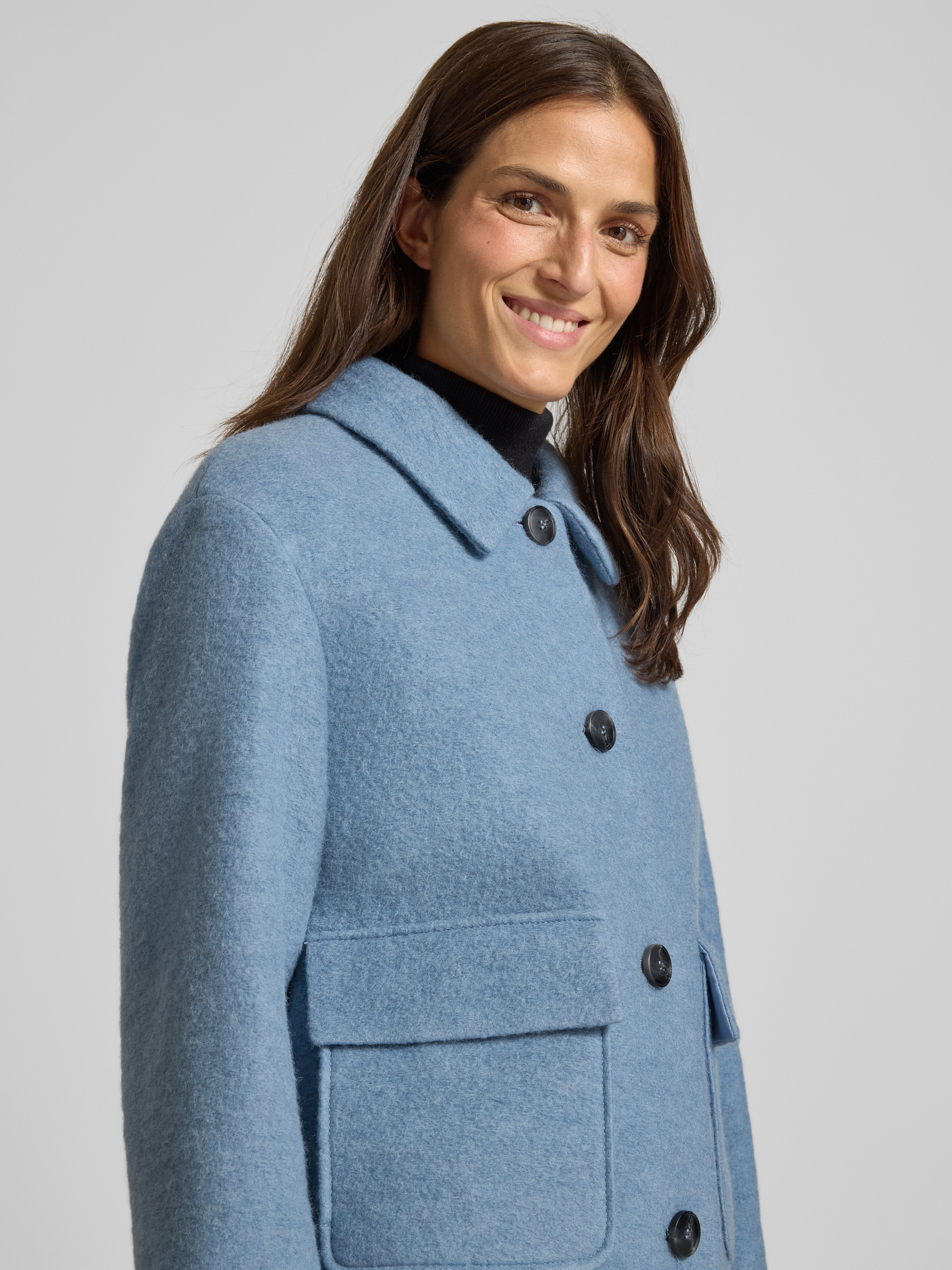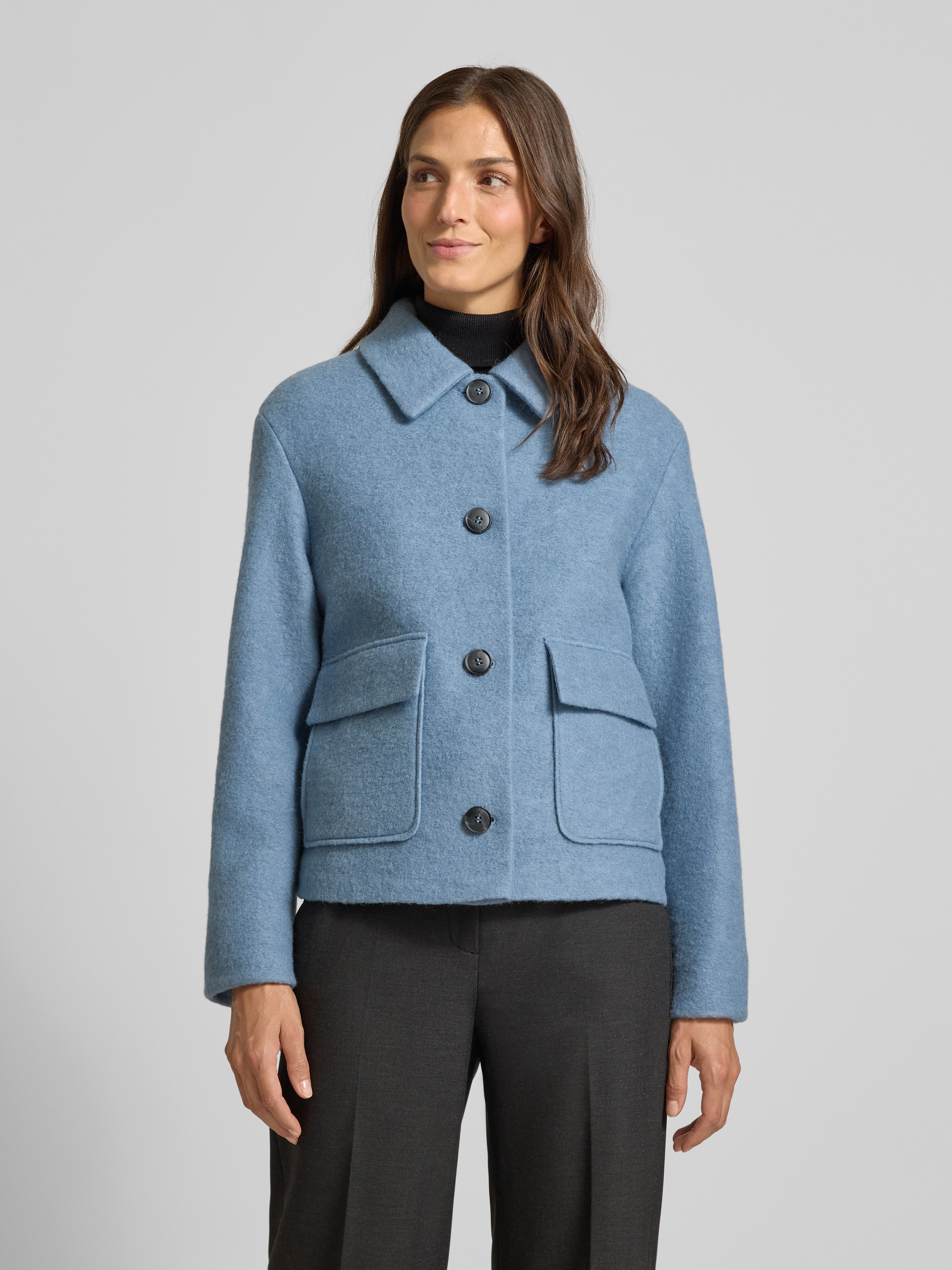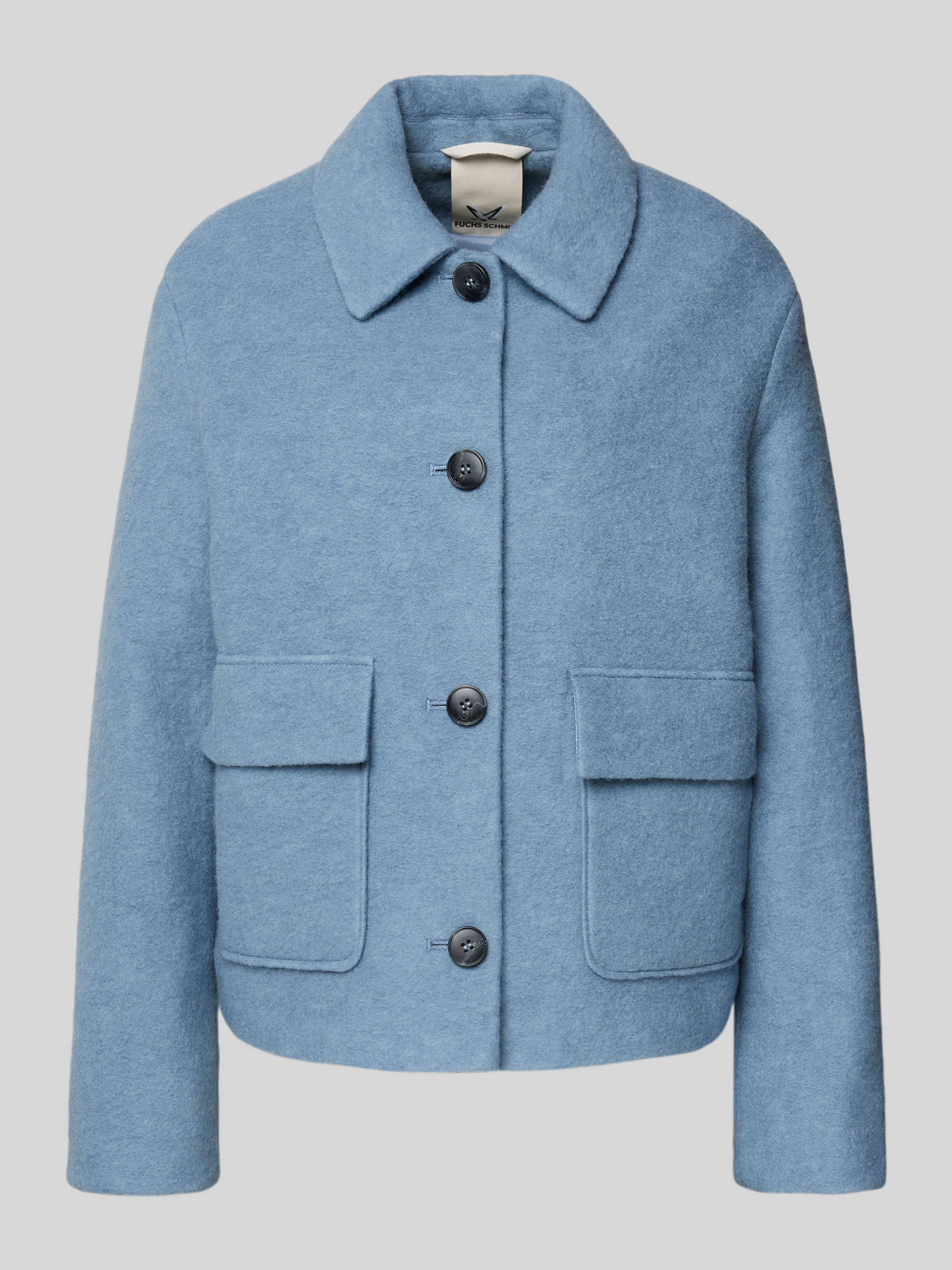 Fuchs SchmittWollen jack met platte kraag in lichtblauw