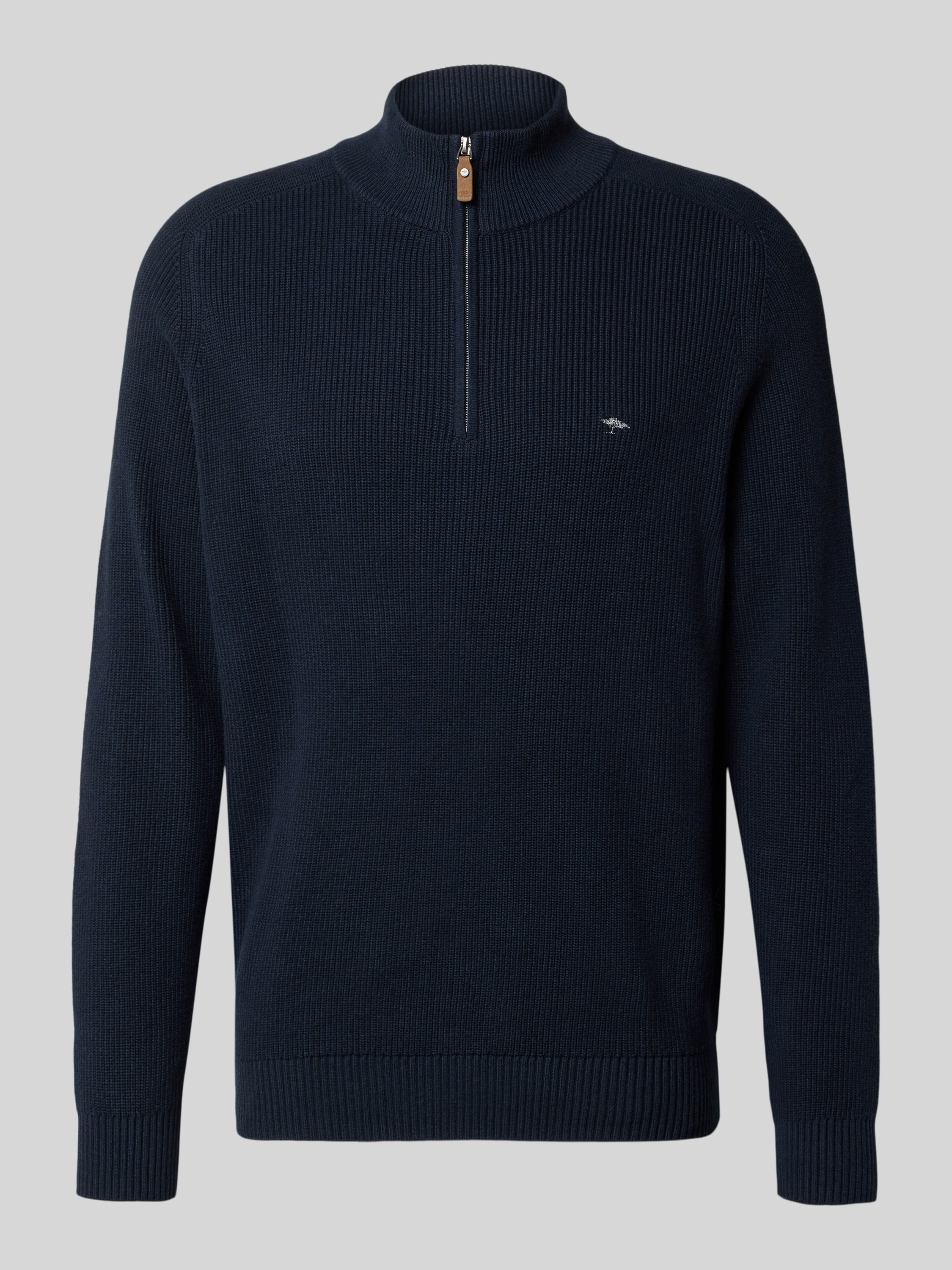 Fynch-HattonGebreide pullover met schipperskraag en labelstitching in marineblauw