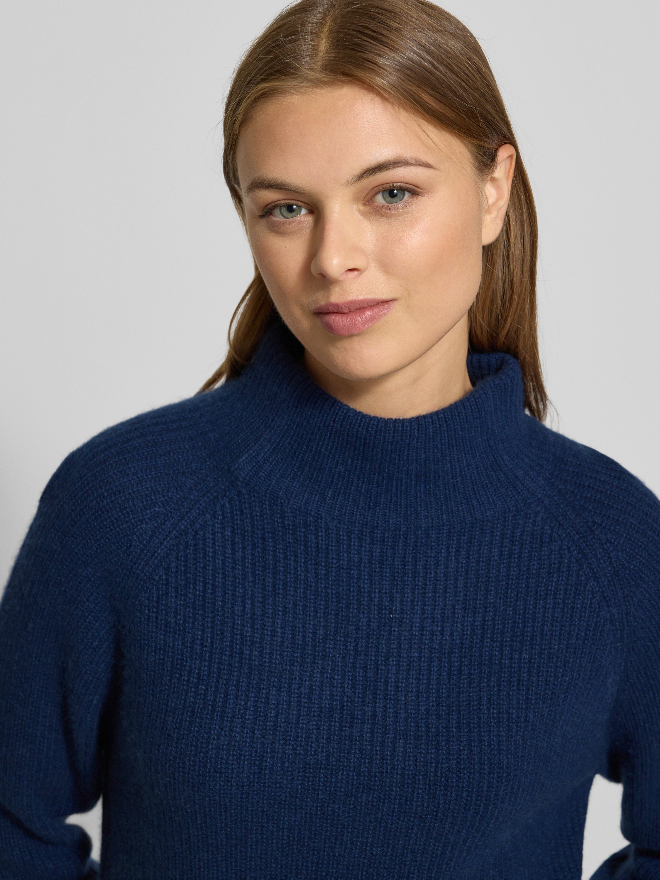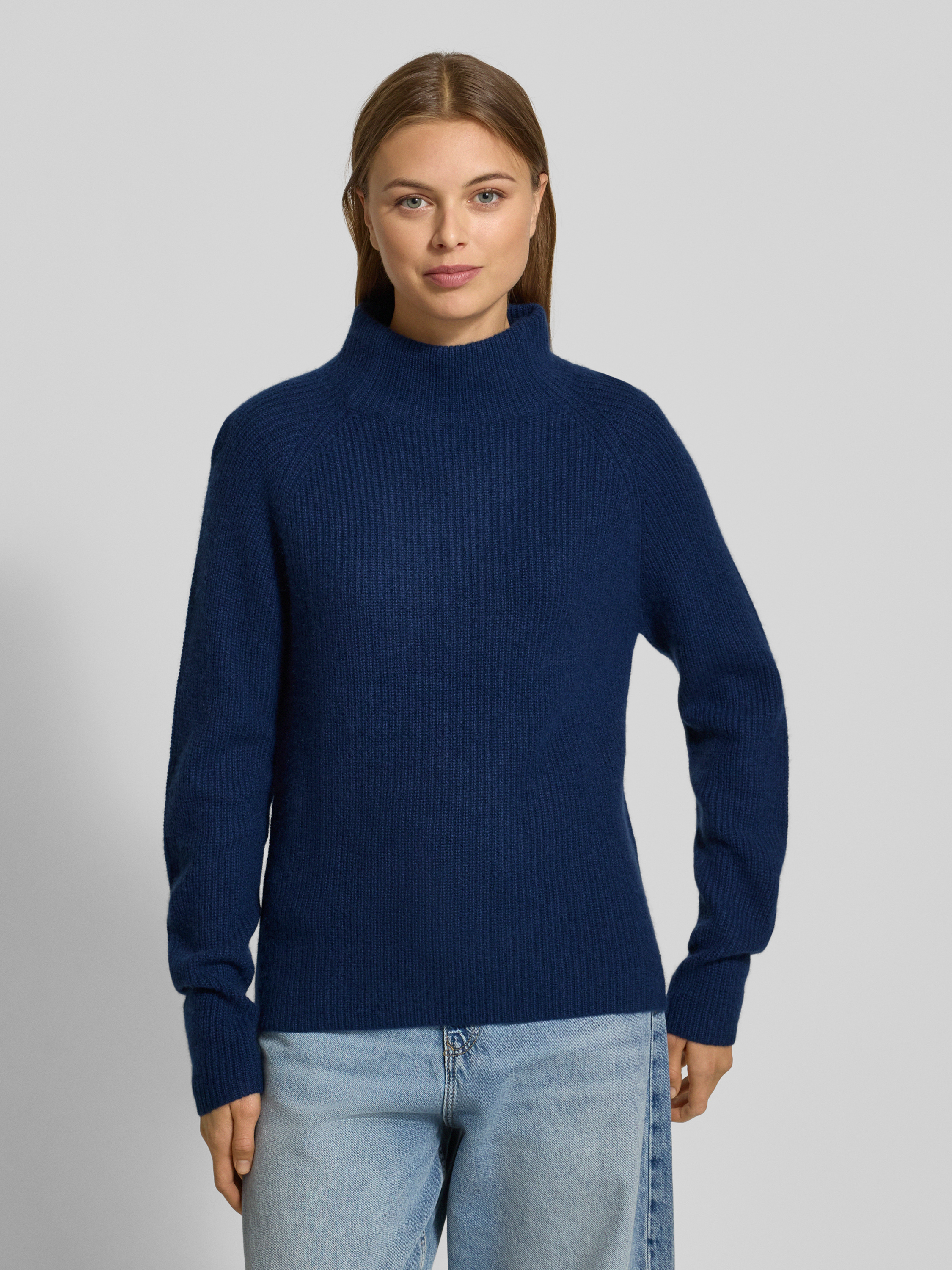 Fynch-HattonGebreide pullover van kasjmier met opstaande kraag in marineblauw