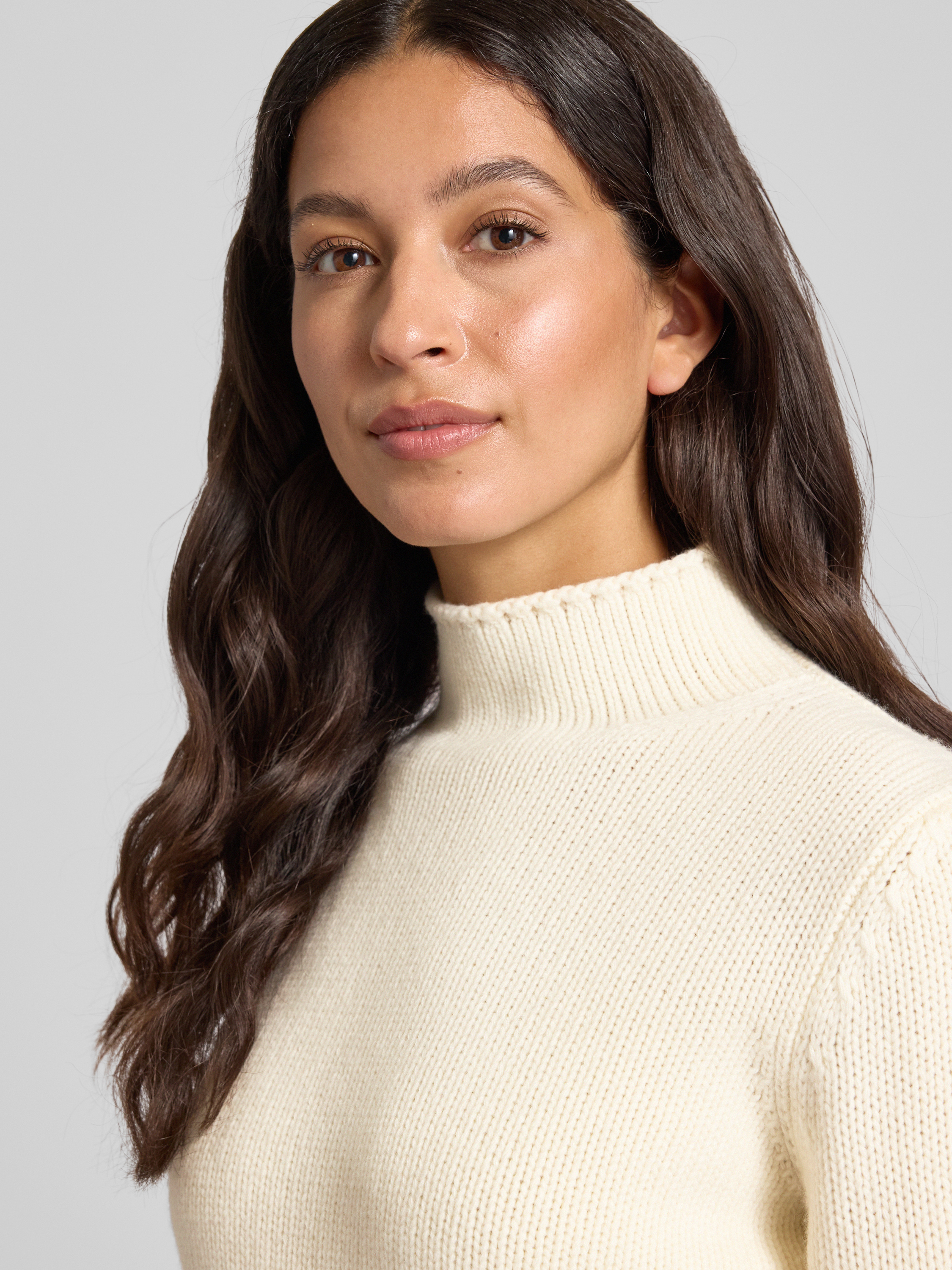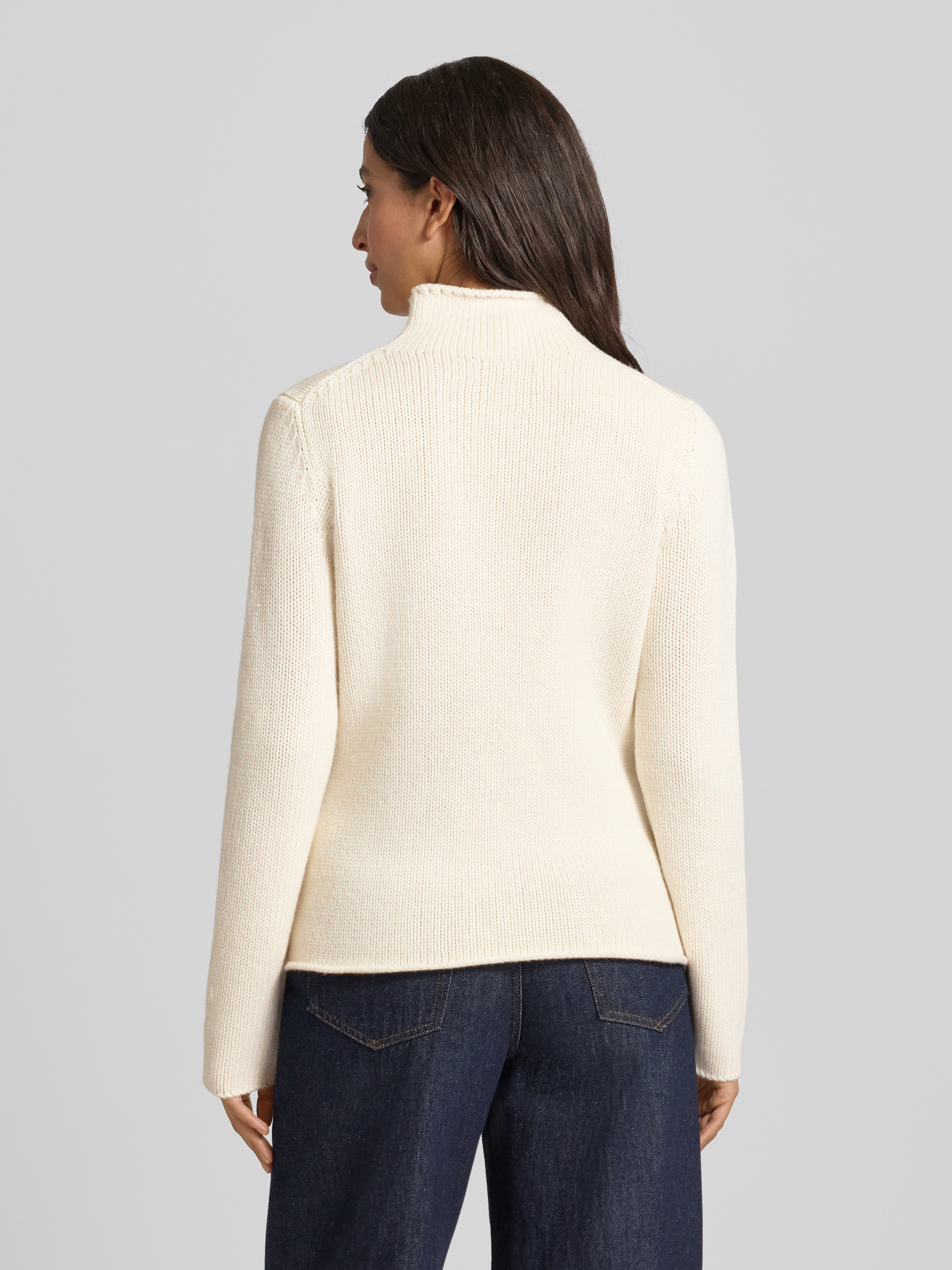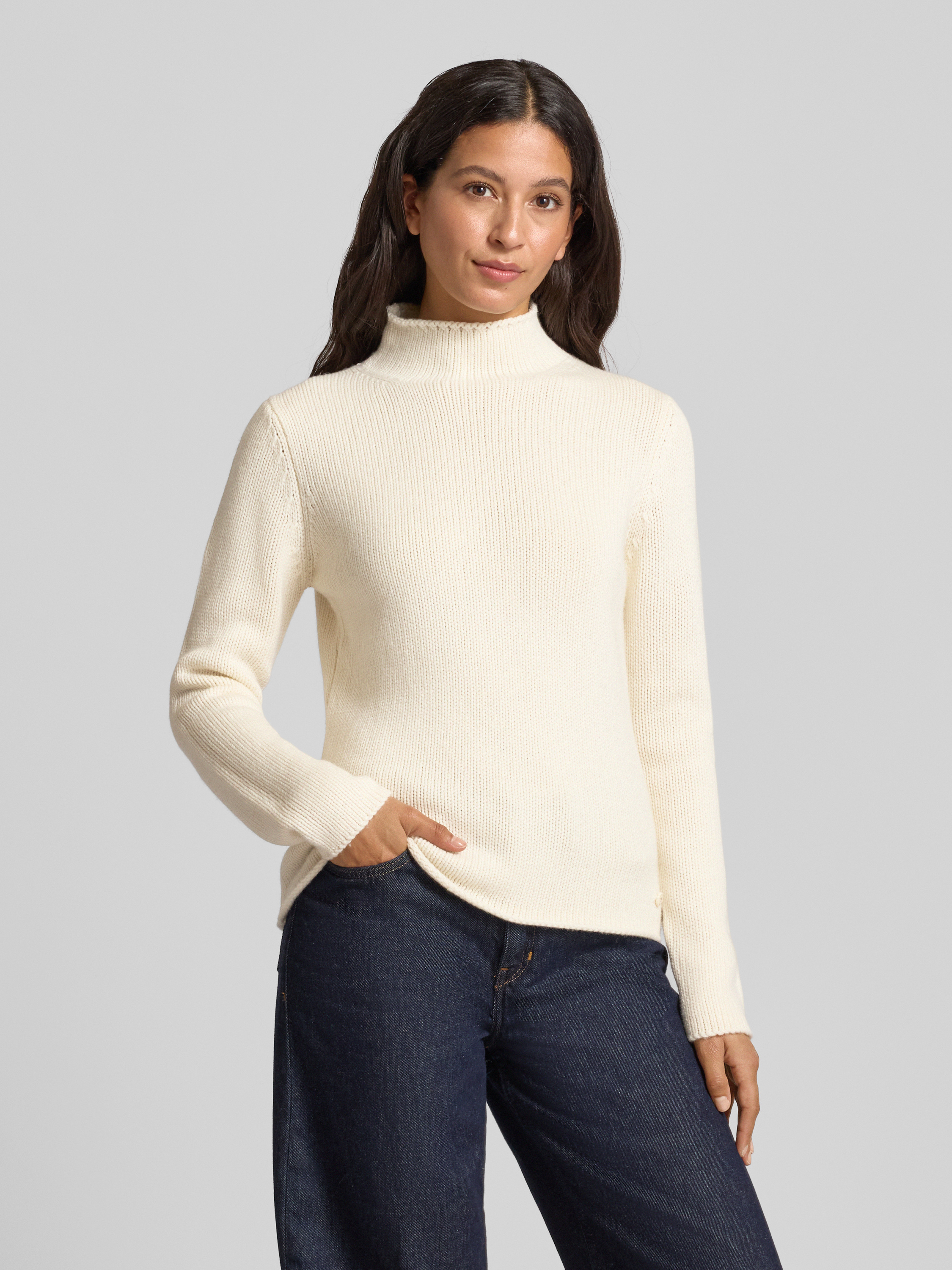 Fynch-HattonGebreide pullover van lanawol met opstaande kraag in offwhite