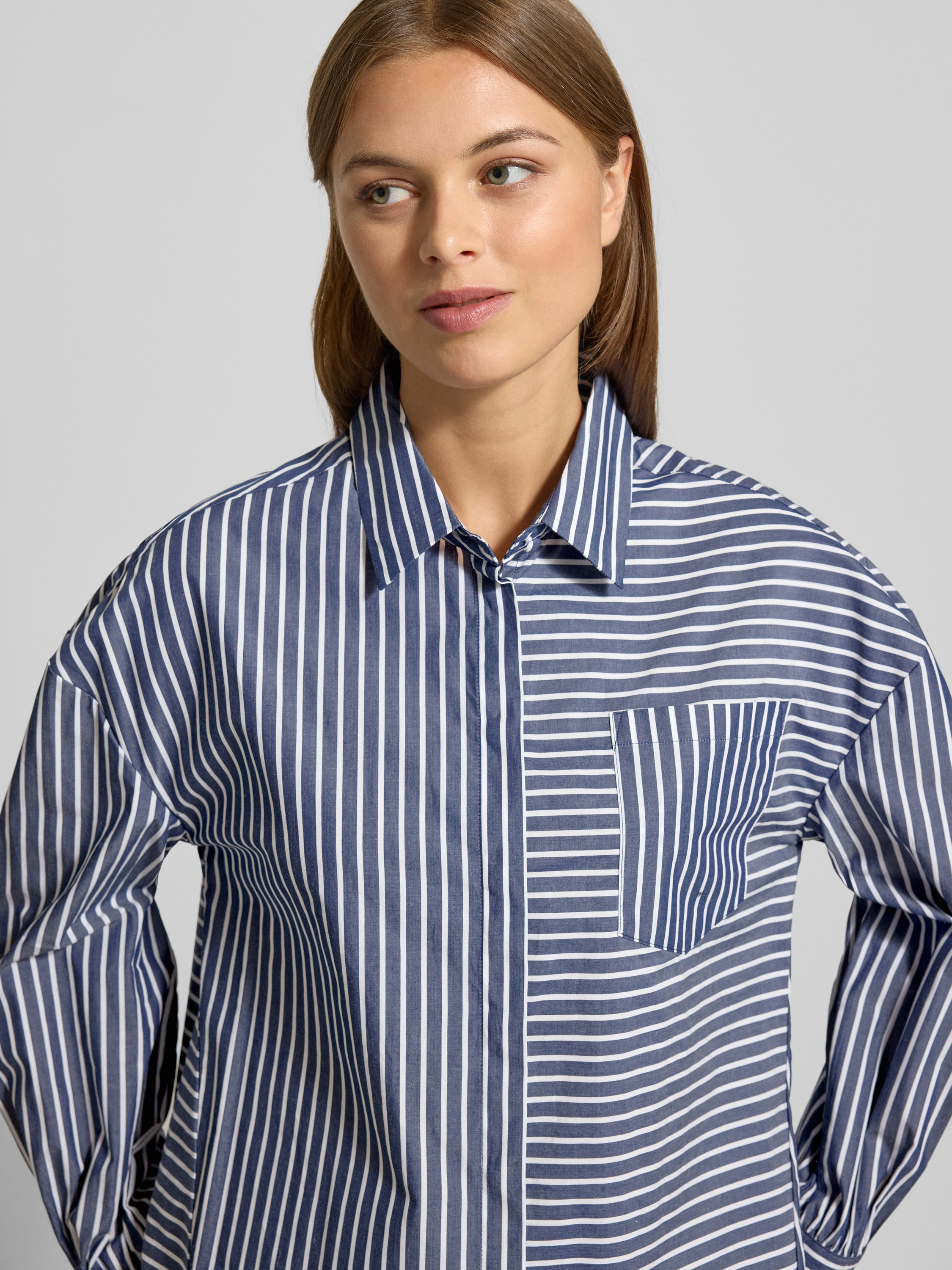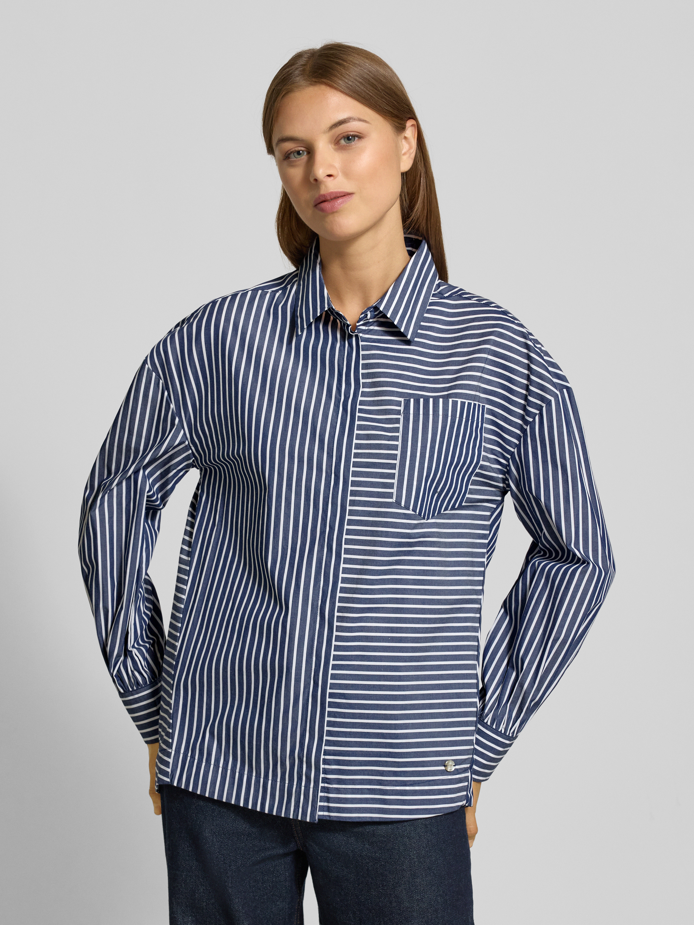 Overhemdblouse met blinde knoopsluiting in marineblauw