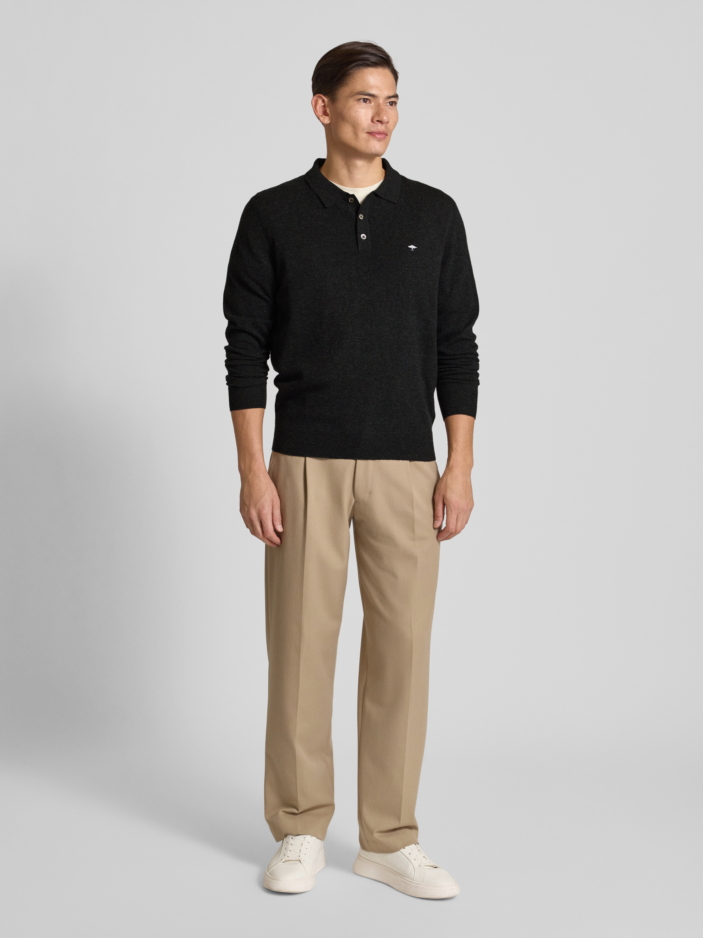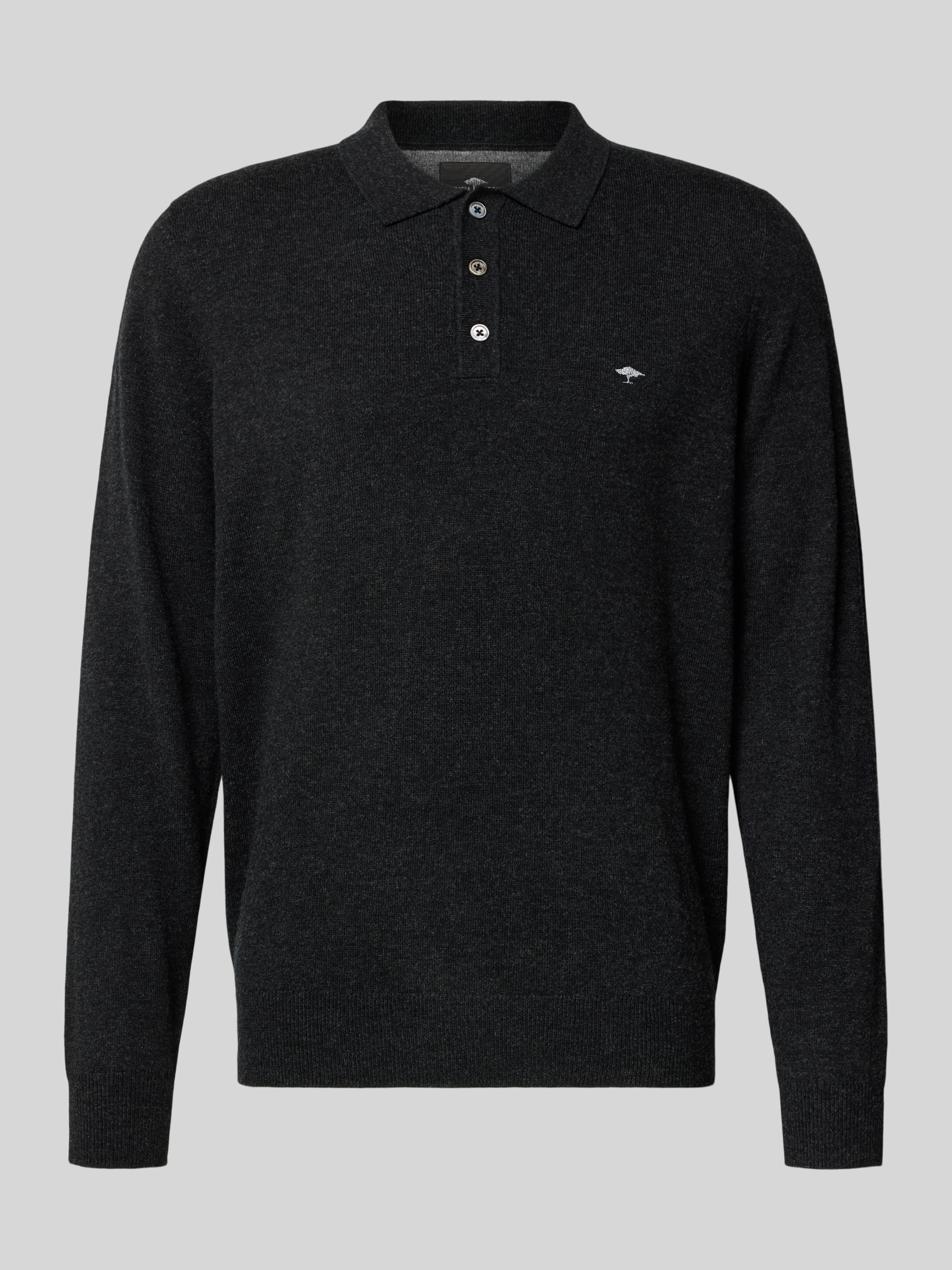 Fynch-HattonPoloshirt van een mix van merinowol en kasjmier met labelstitching in antraciet