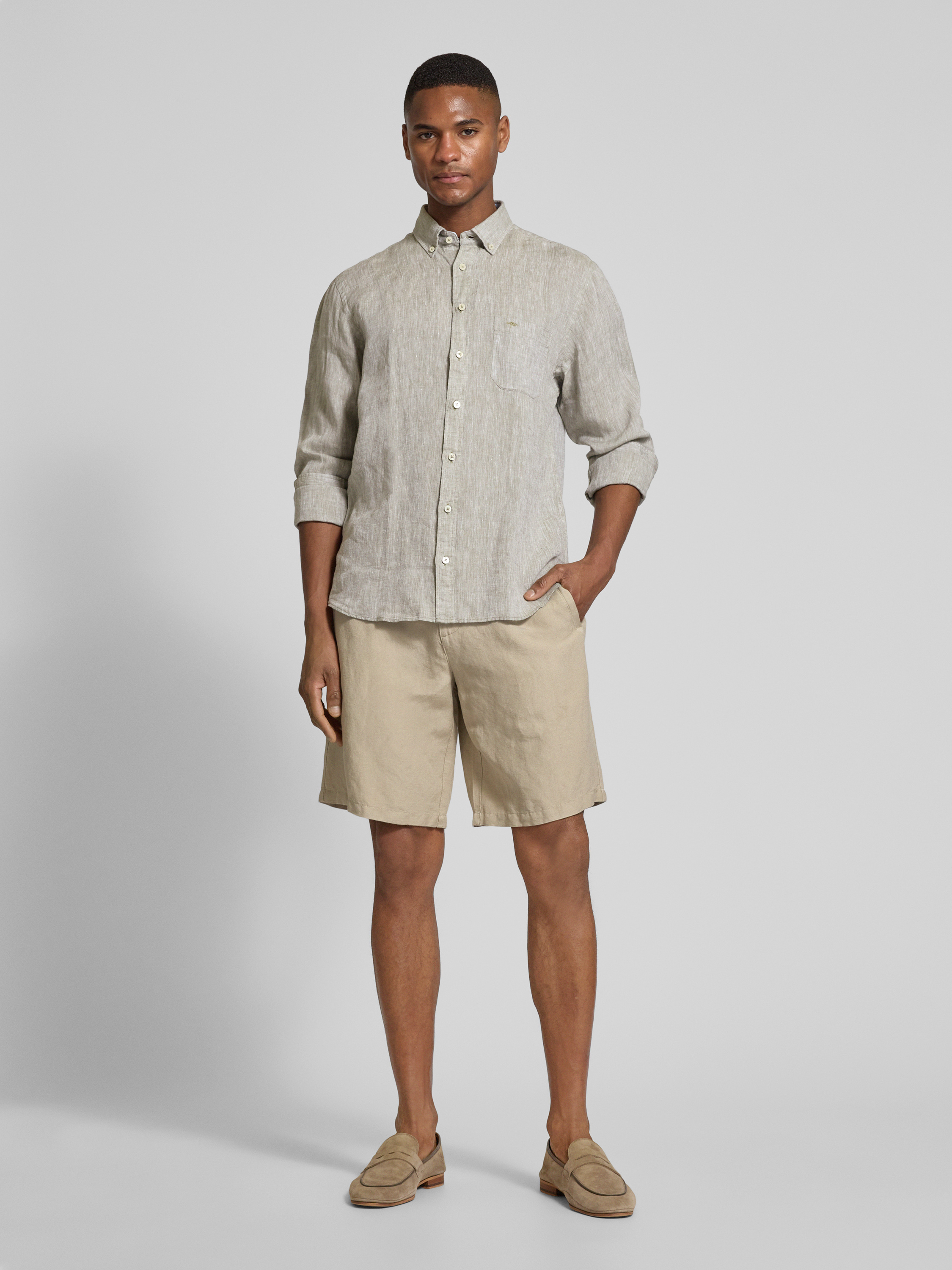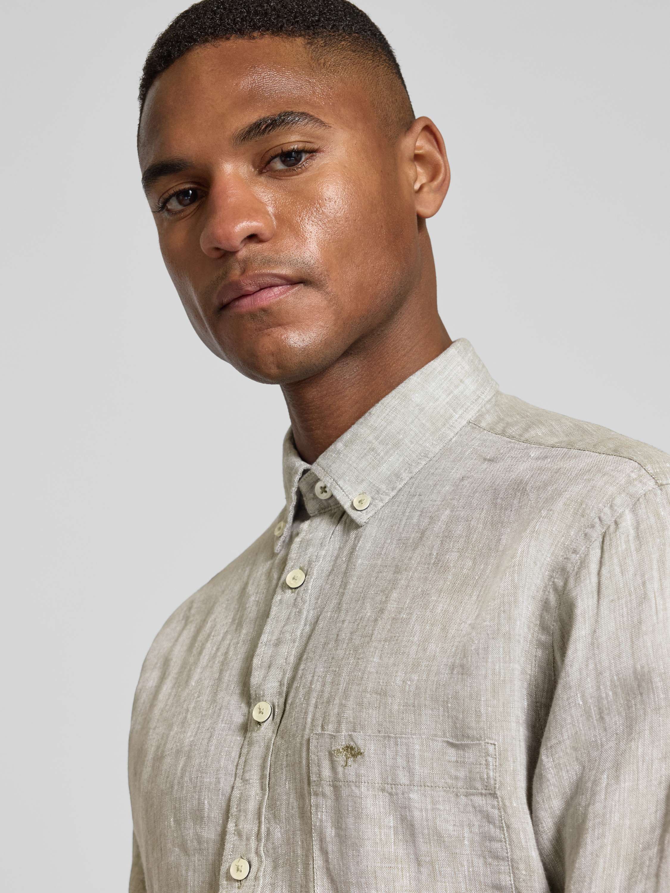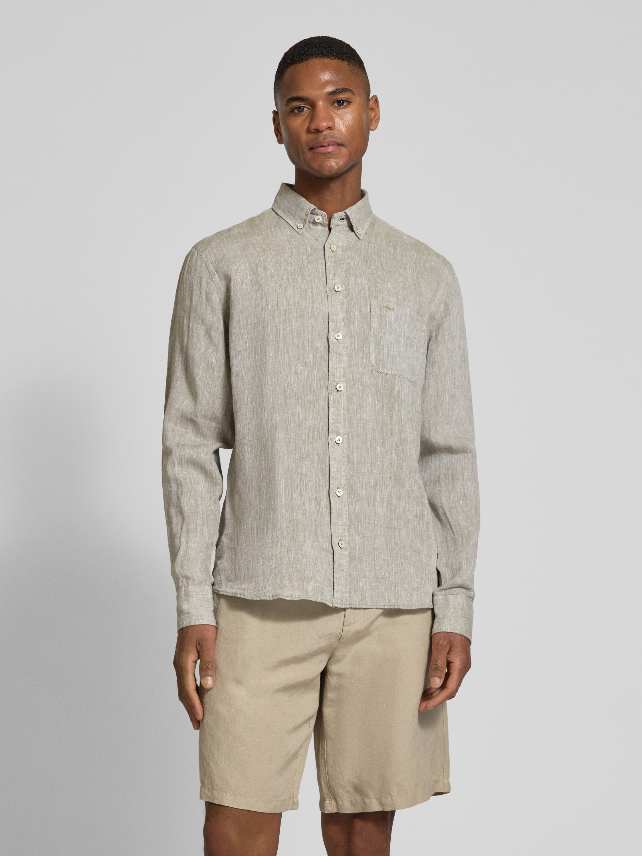 Regular fit linnen overhemd met button-downkraag in olijfgroen