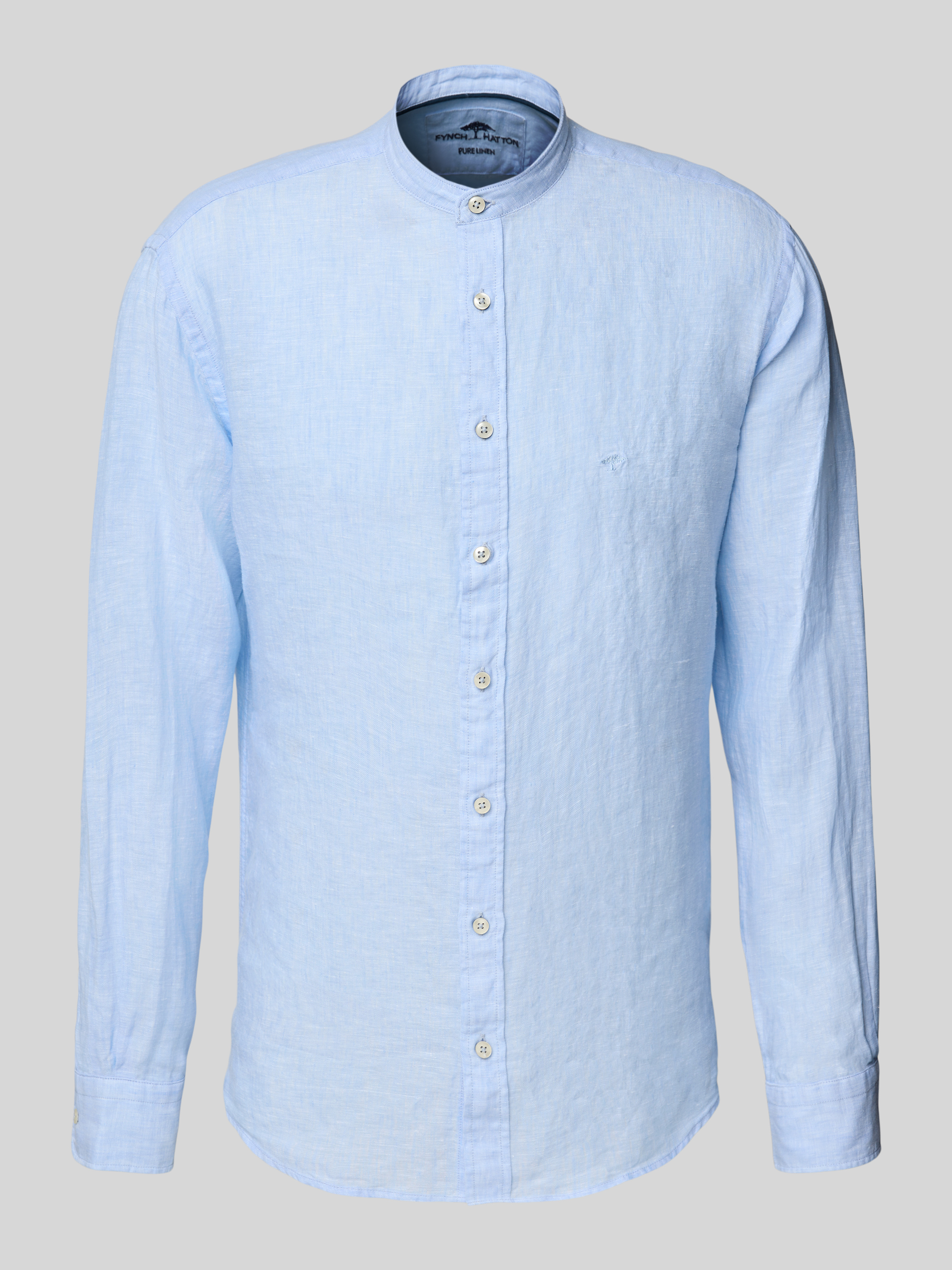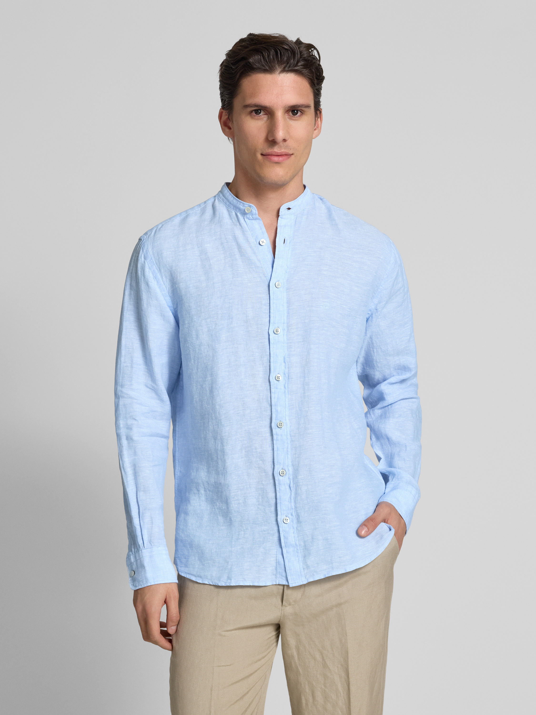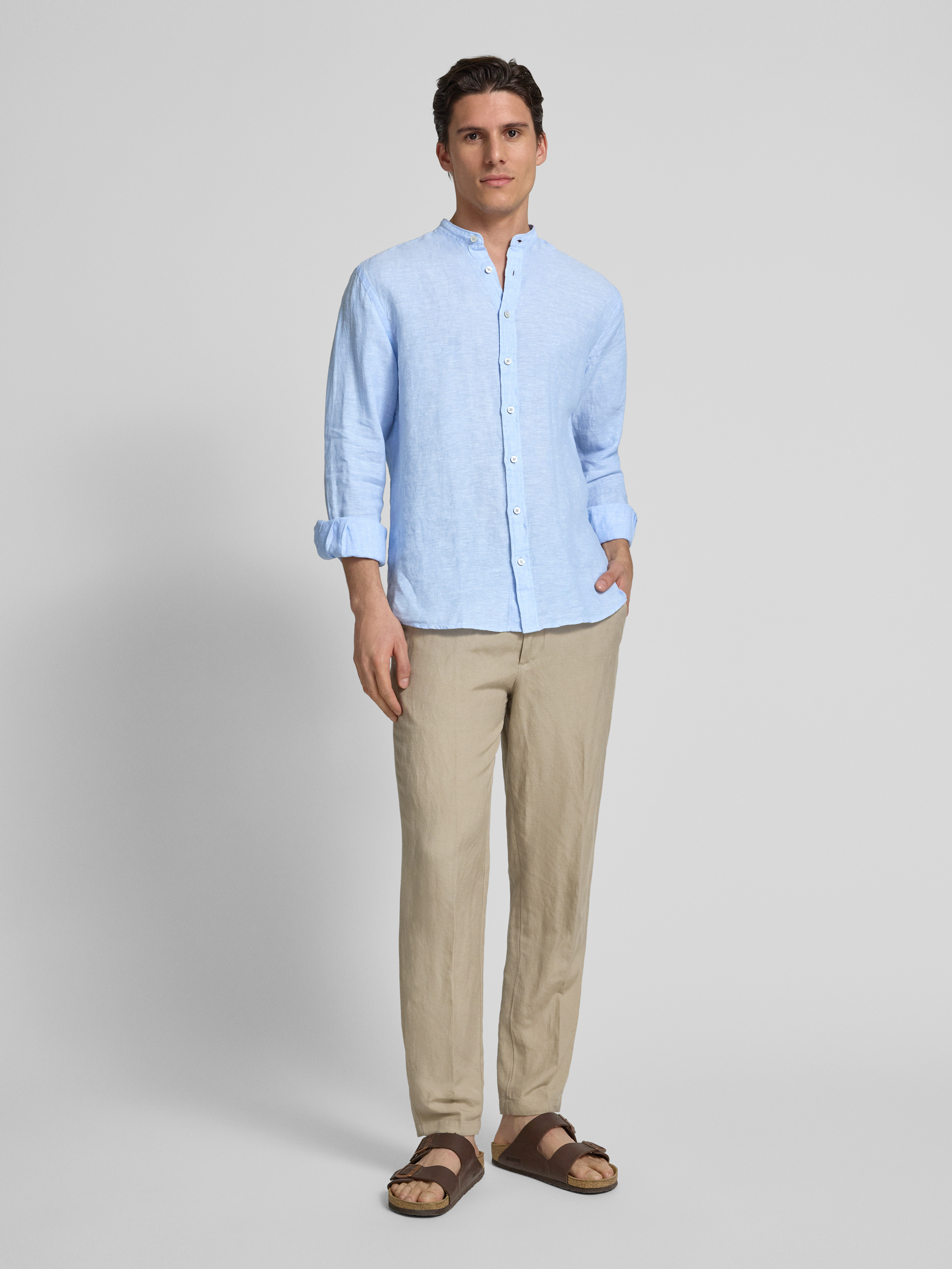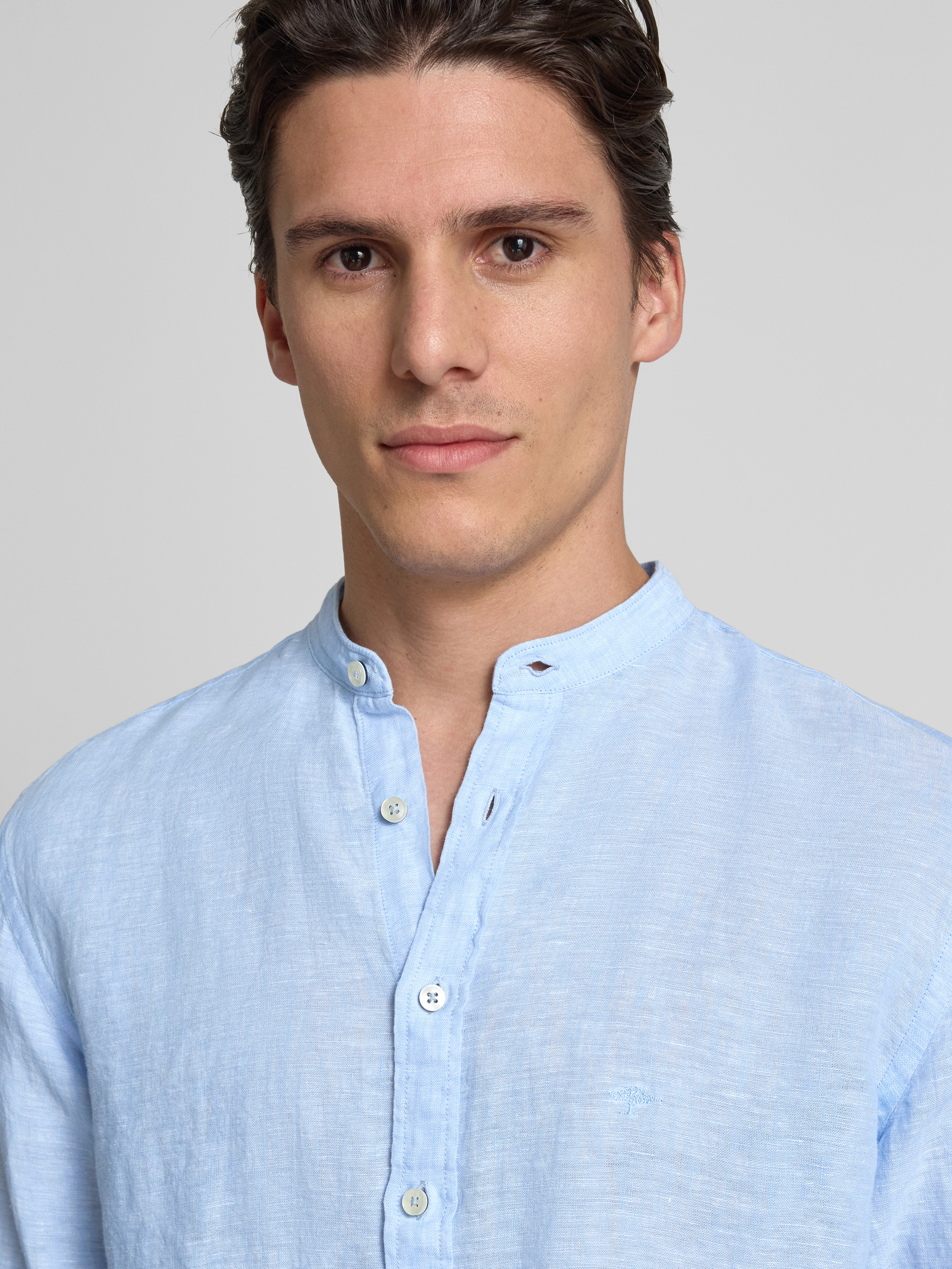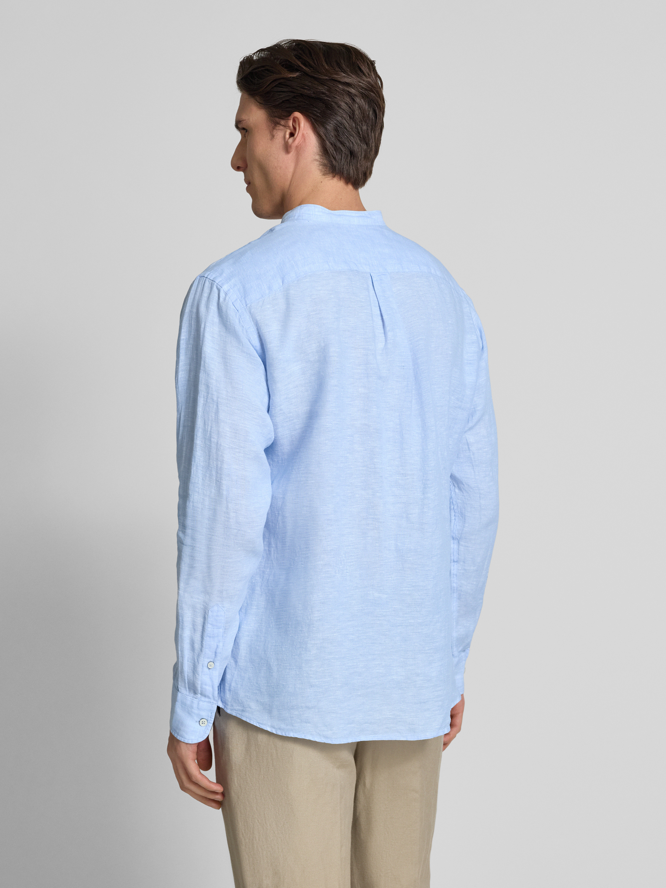 Regular fit linnen overhemd met opstaande kraag in lichtblauw