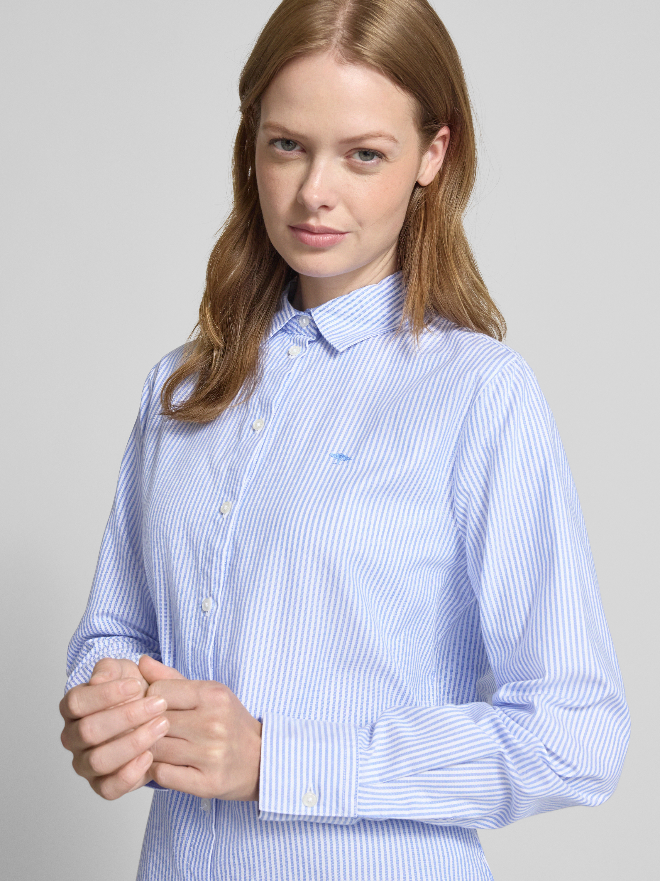 Regular fit overhemdblouse met logostitching in koningsblauw