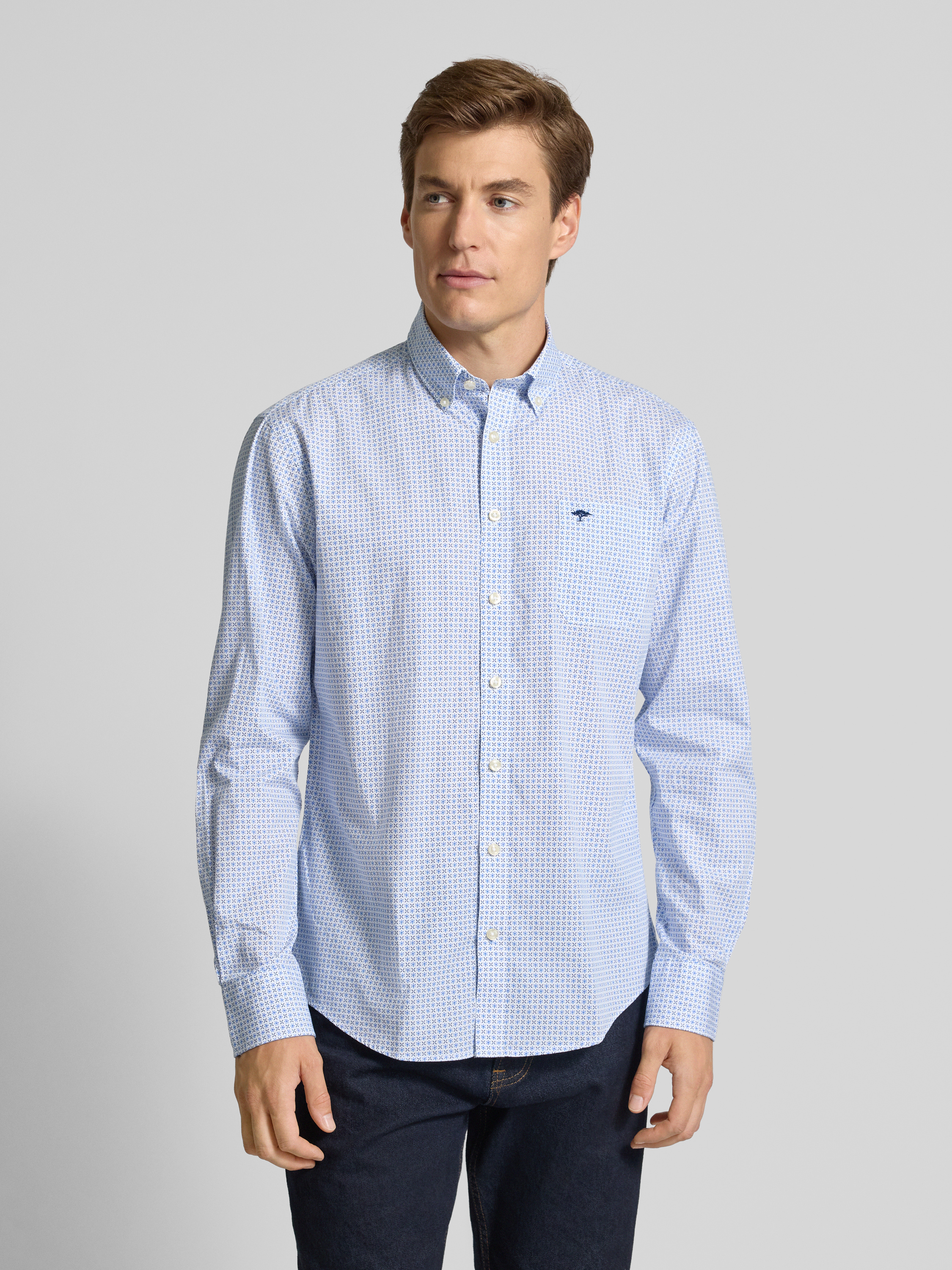 Regular fit vrijetijdsoverhemd met logostitching, model 'Poplin' in lichtblauw