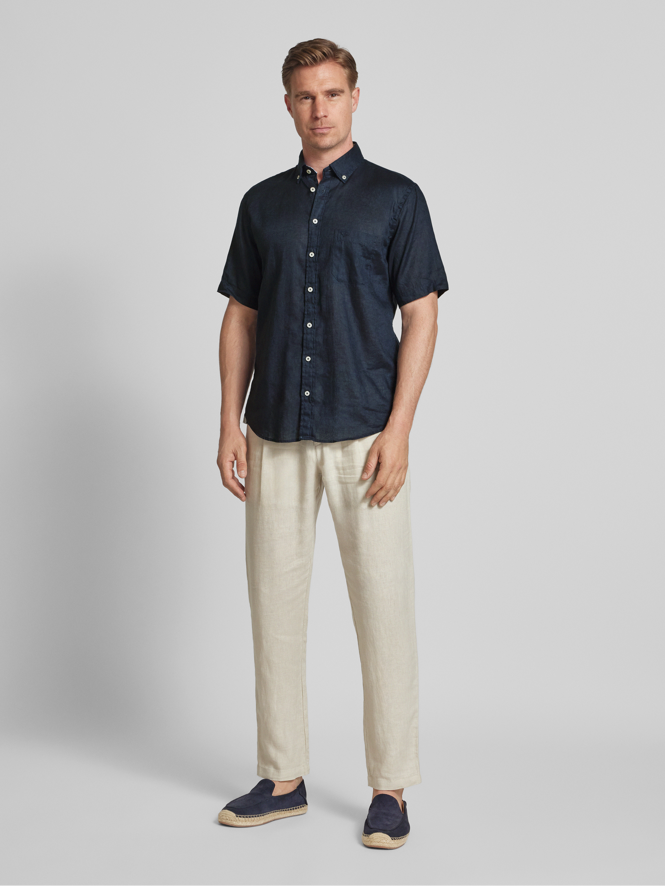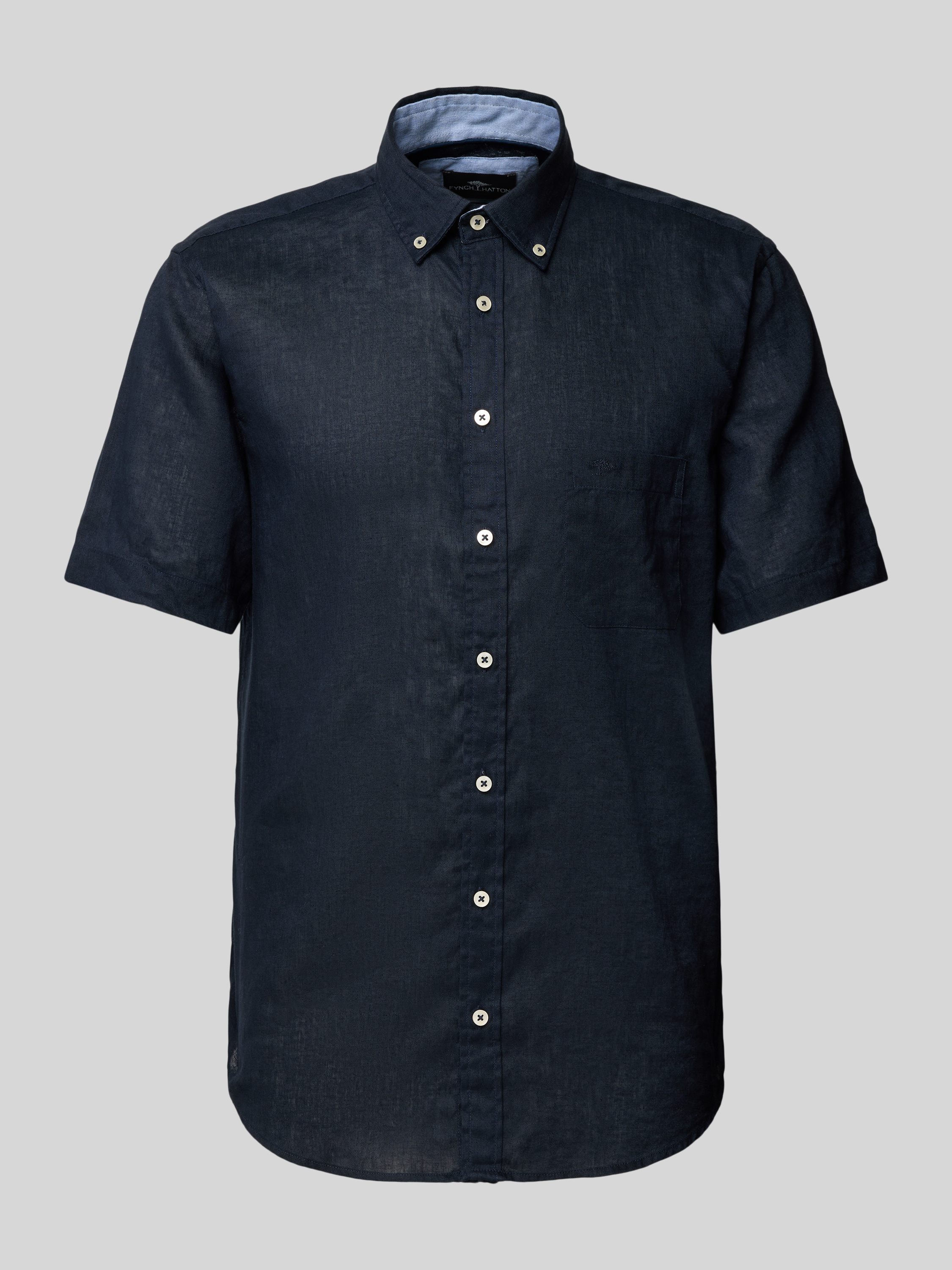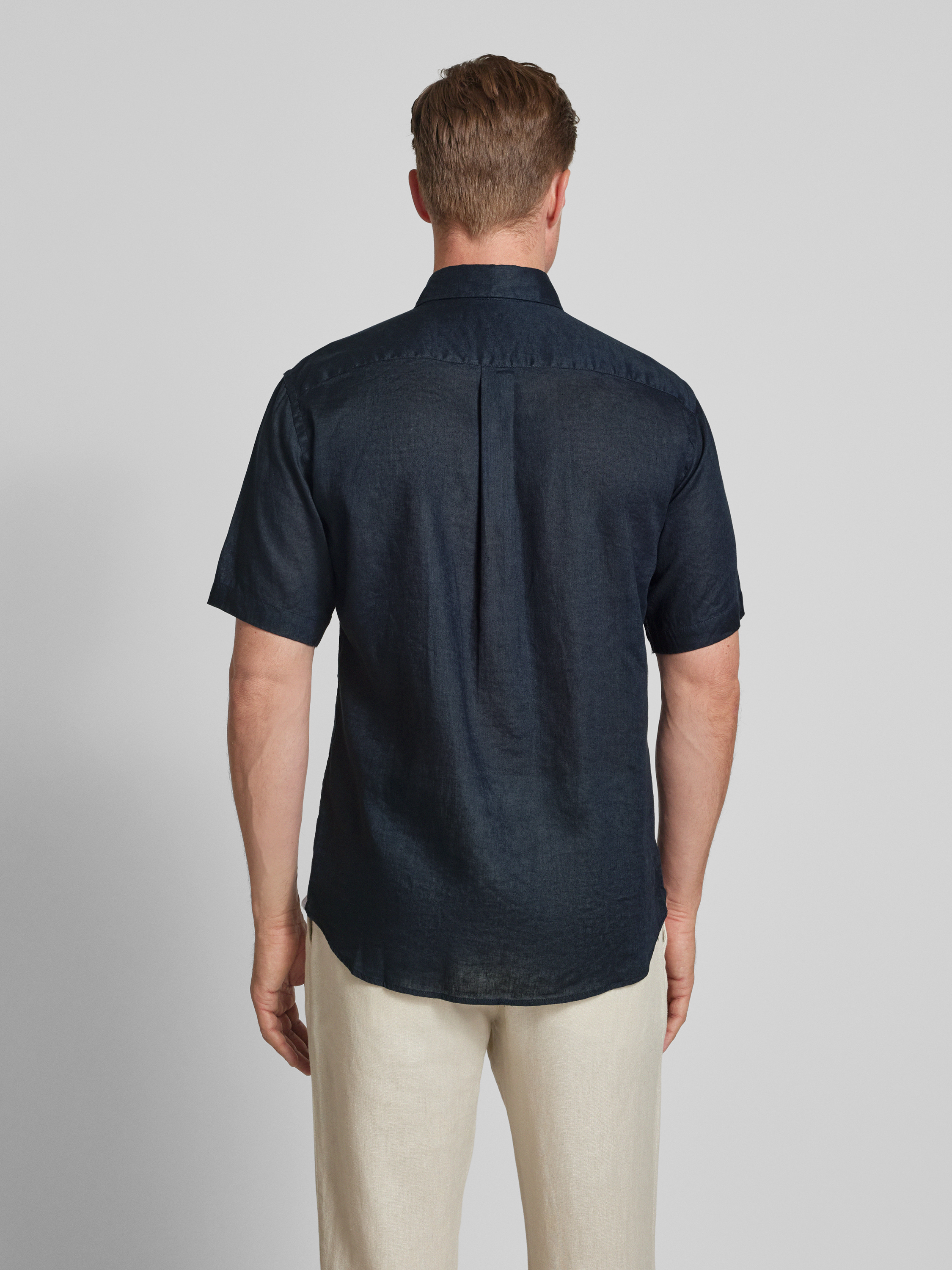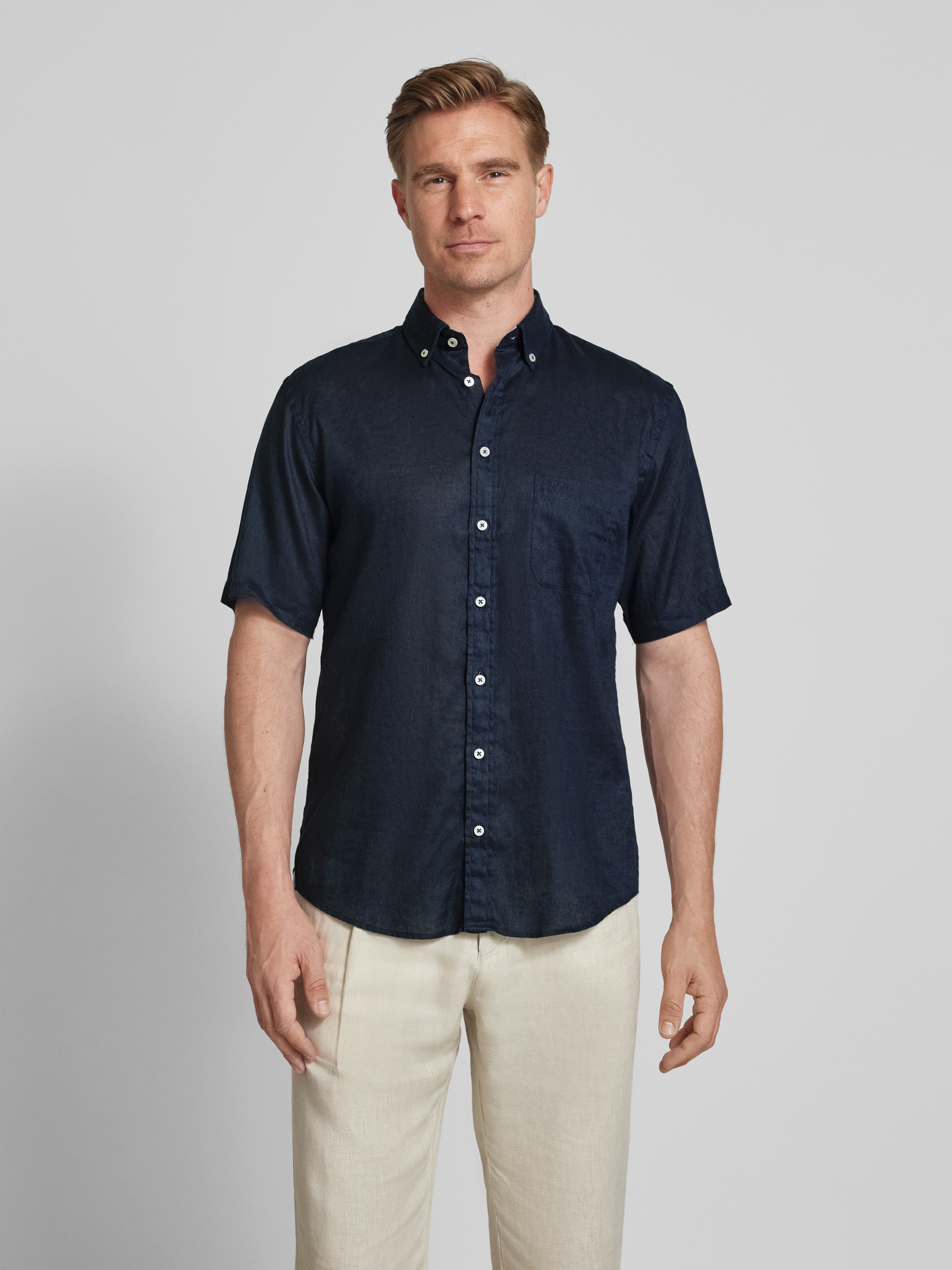 Regular fit vrijetijdsoverhemd van een mix van linnen en katoen in marineblauw