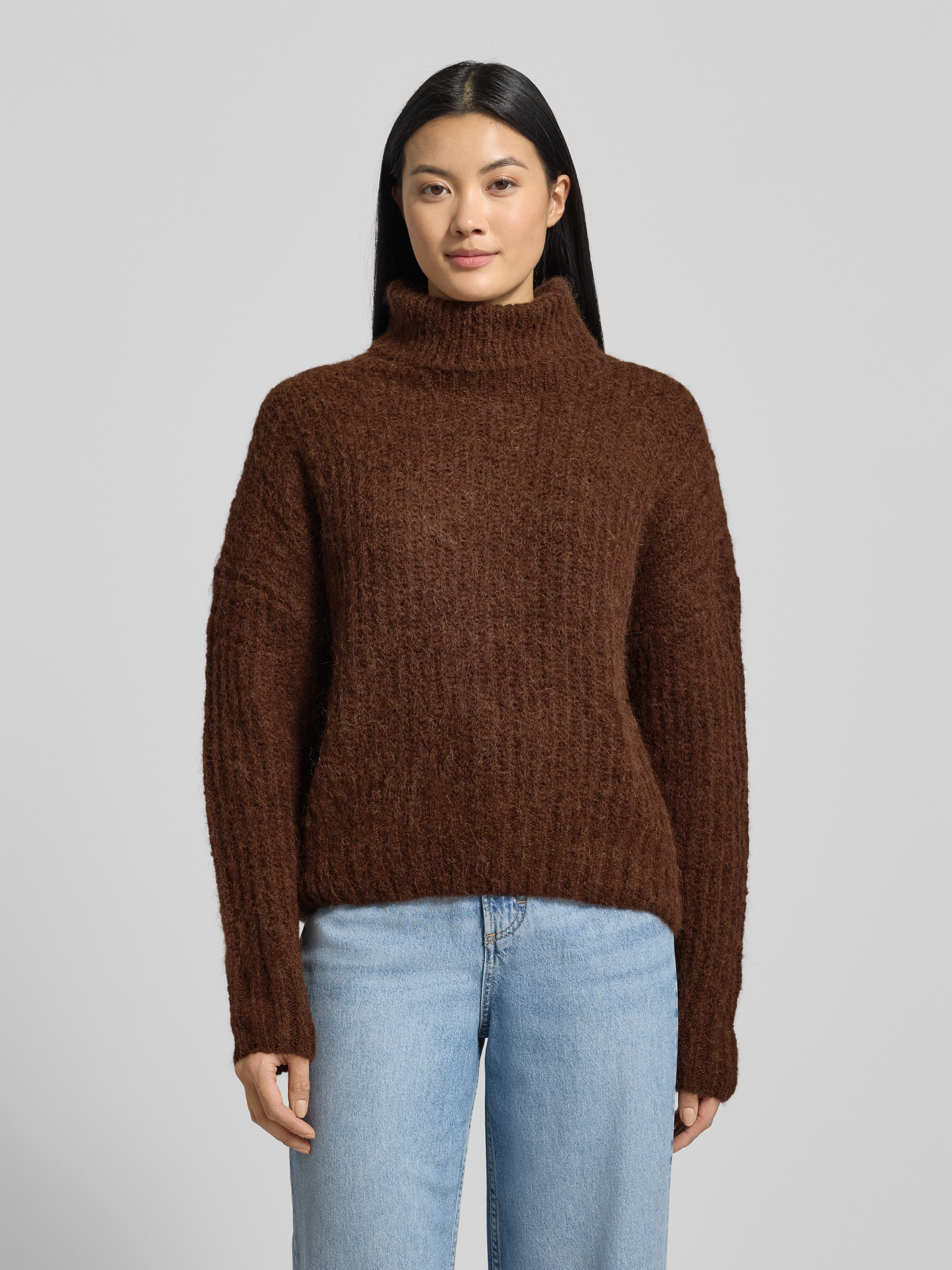 Fynch-HattonRelaxed fit pullover van alpacamix in gebreide look in donkerbruin