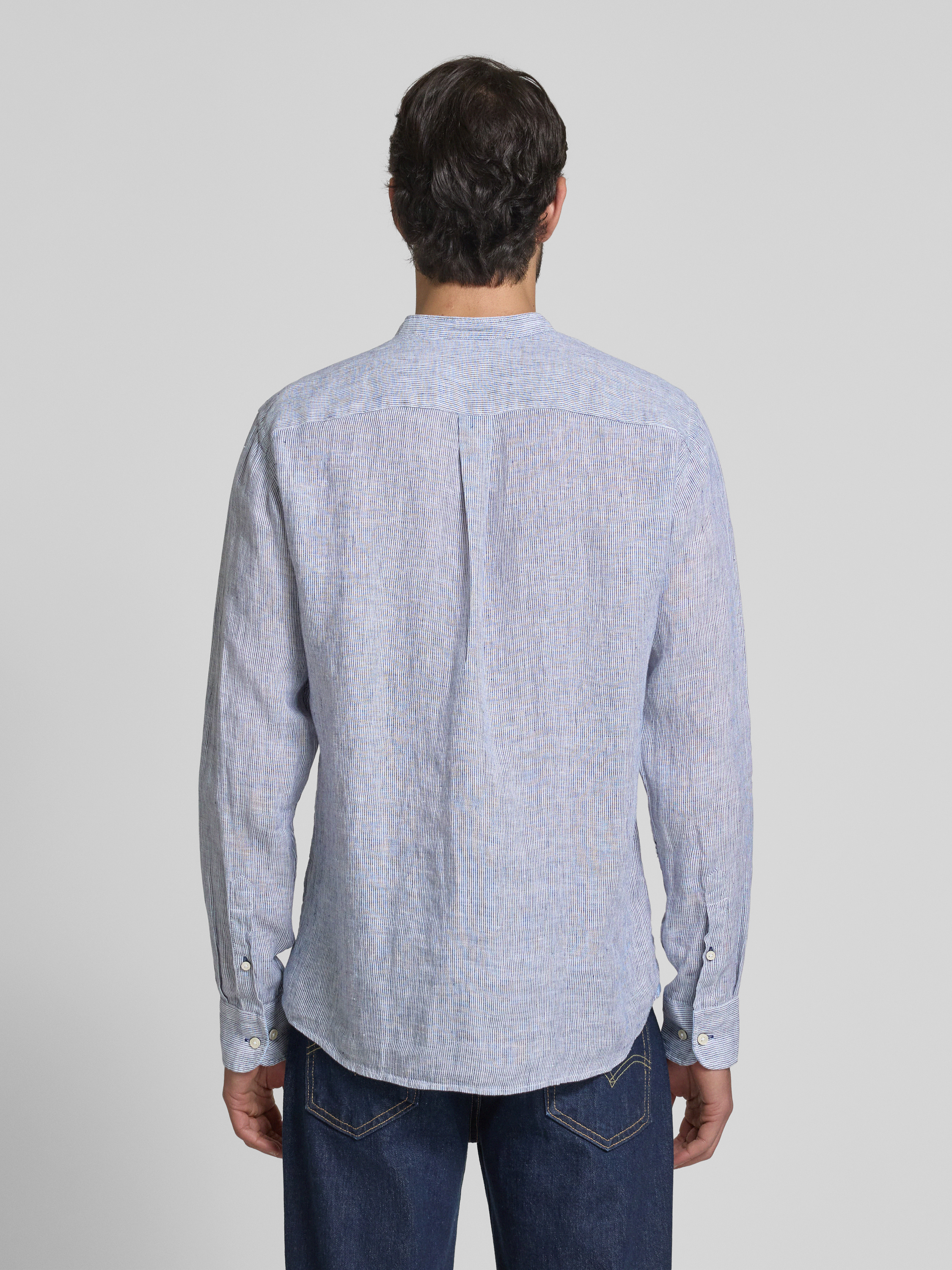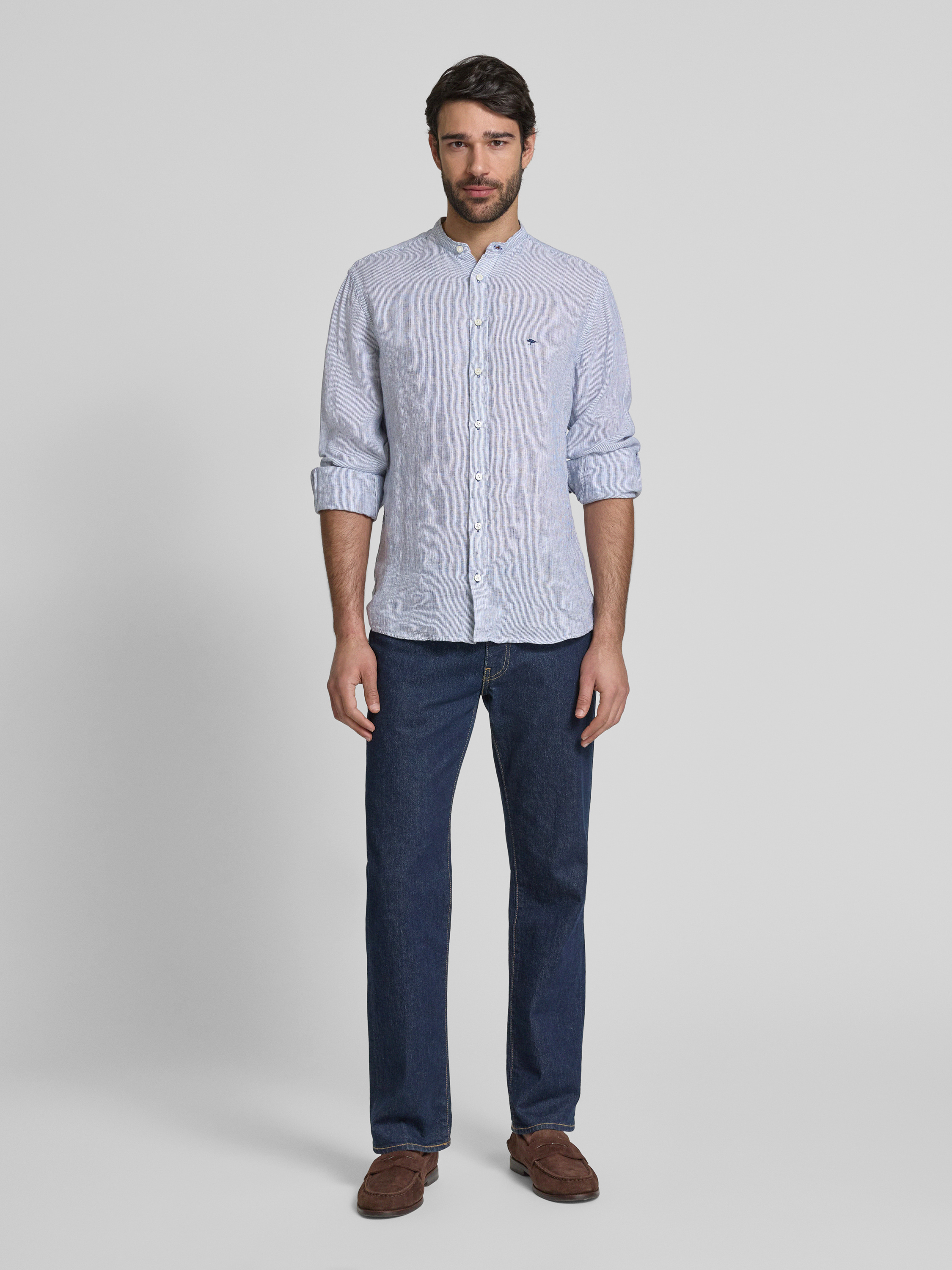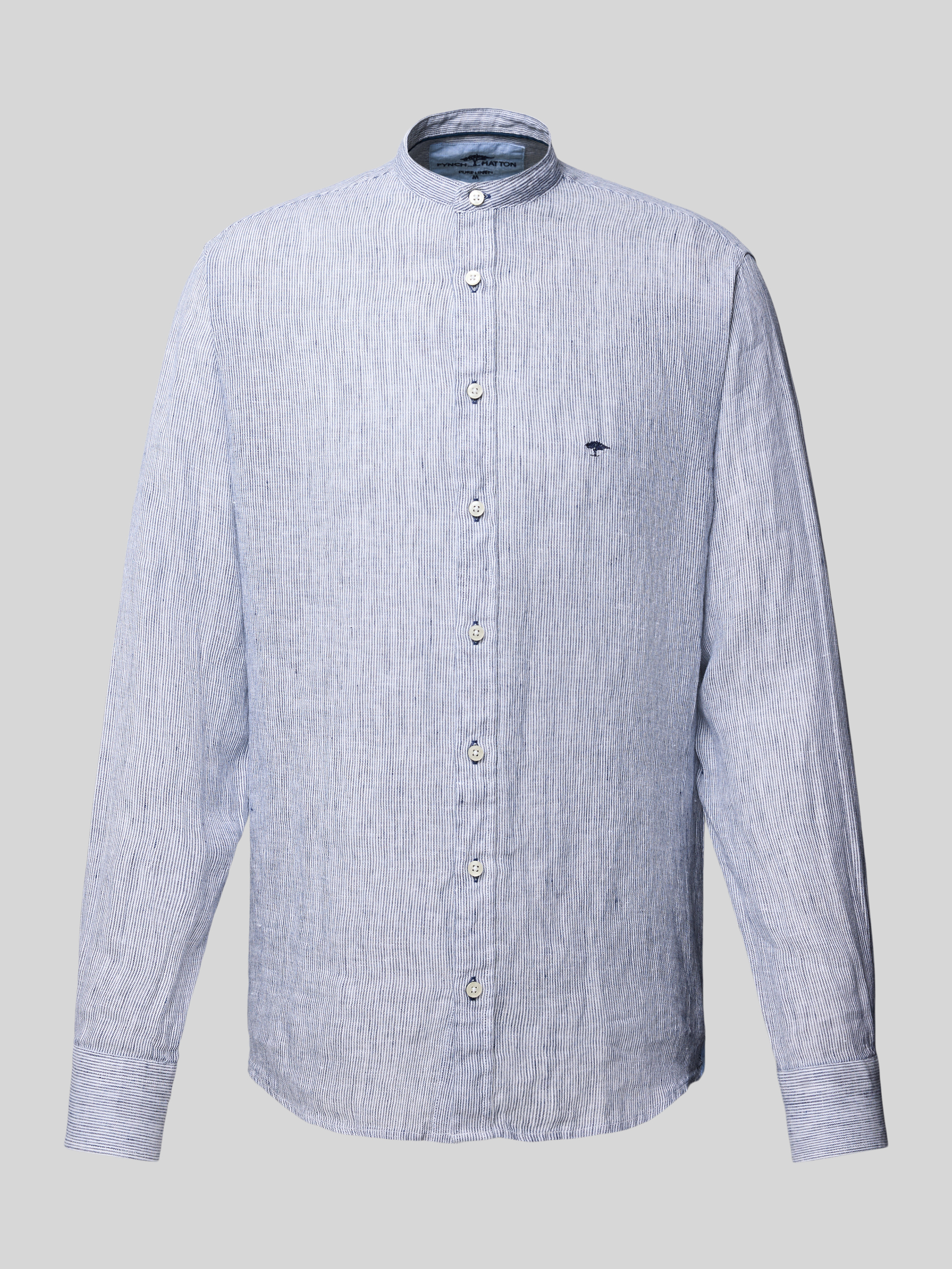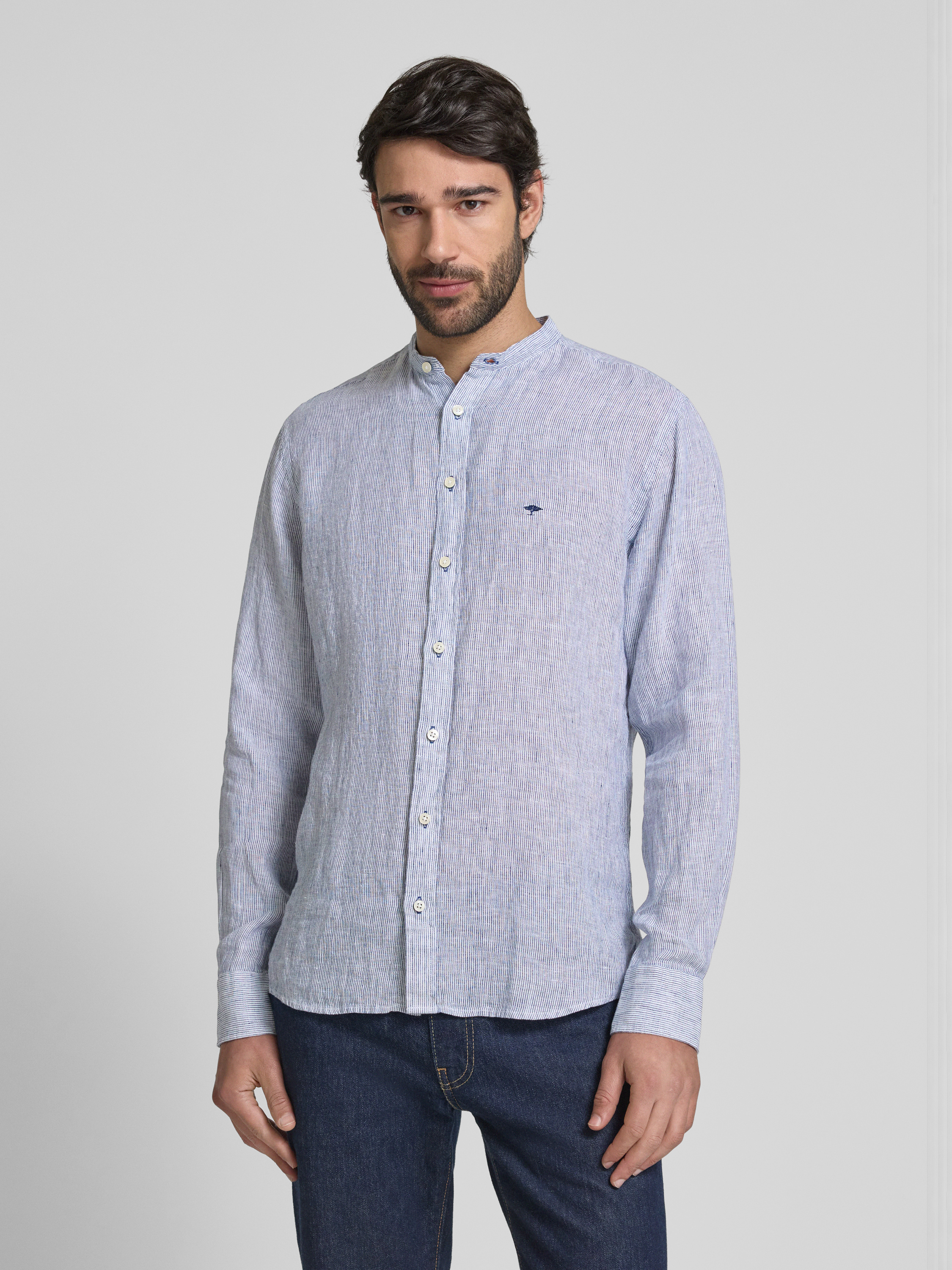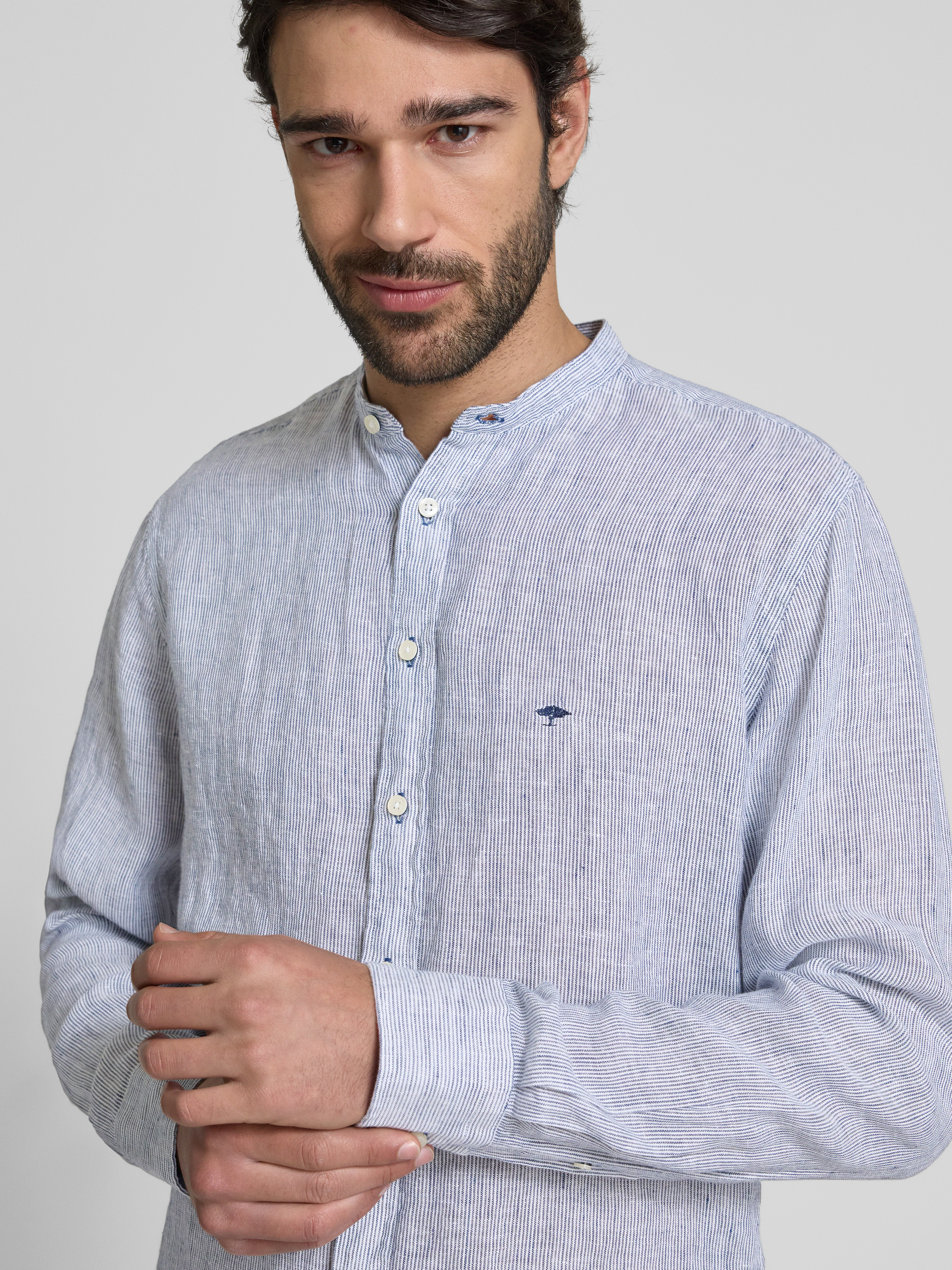 Slim fit linnen overhemd met opstaande kraag in marineblauw