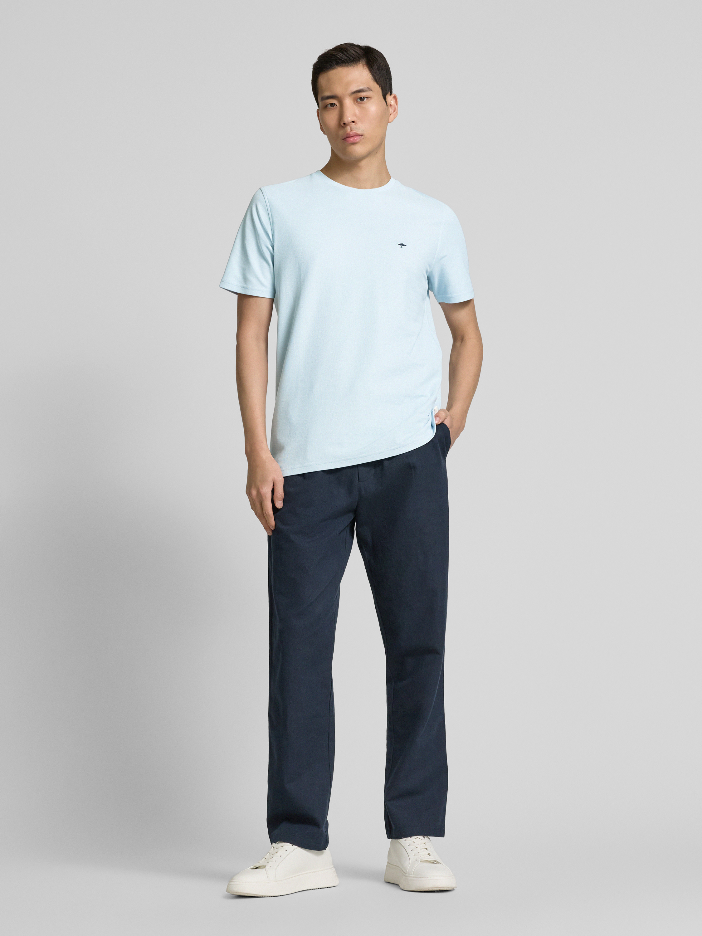 Fynch-HattonT-shirt met logostitching in lichtblauw